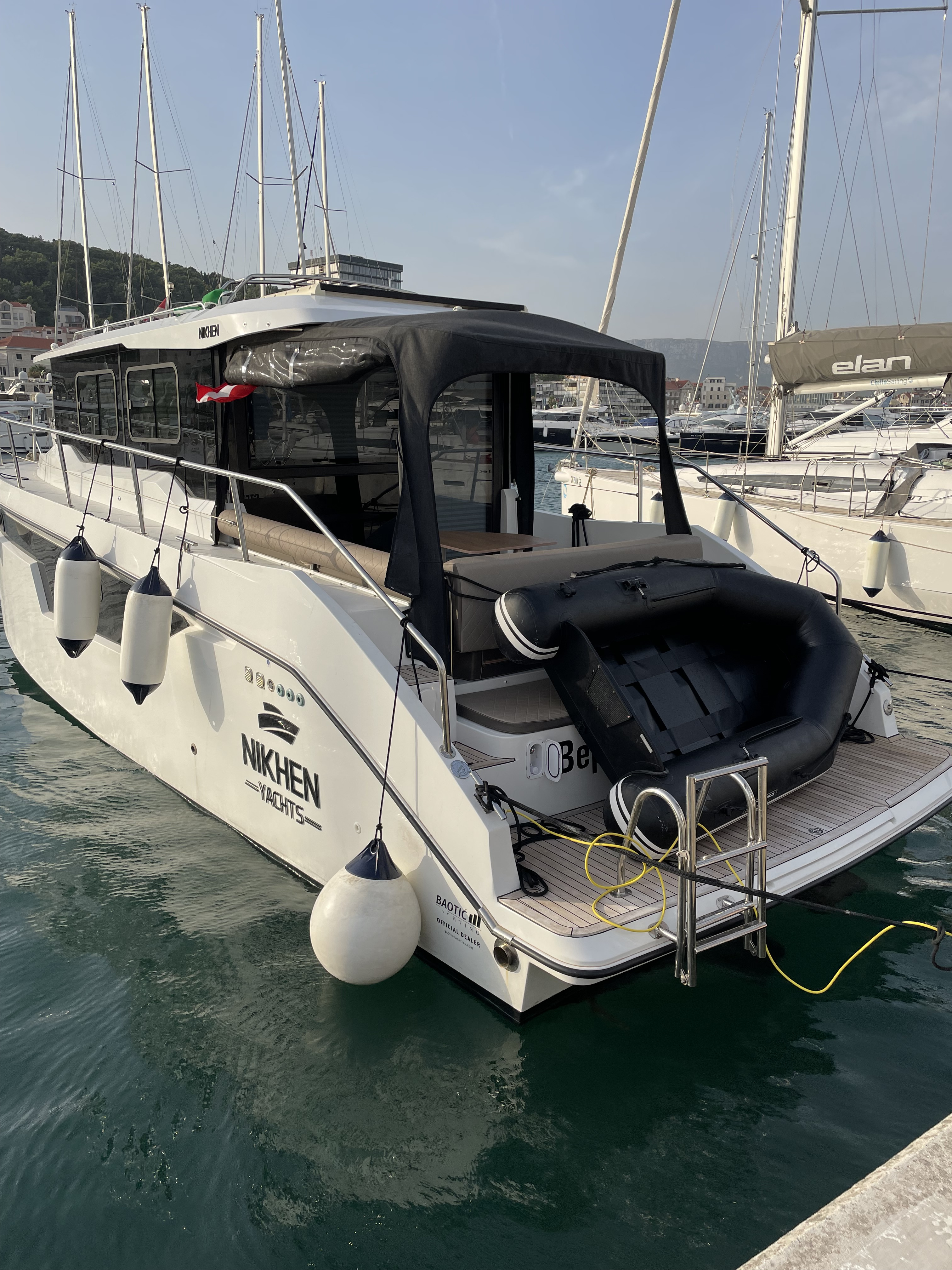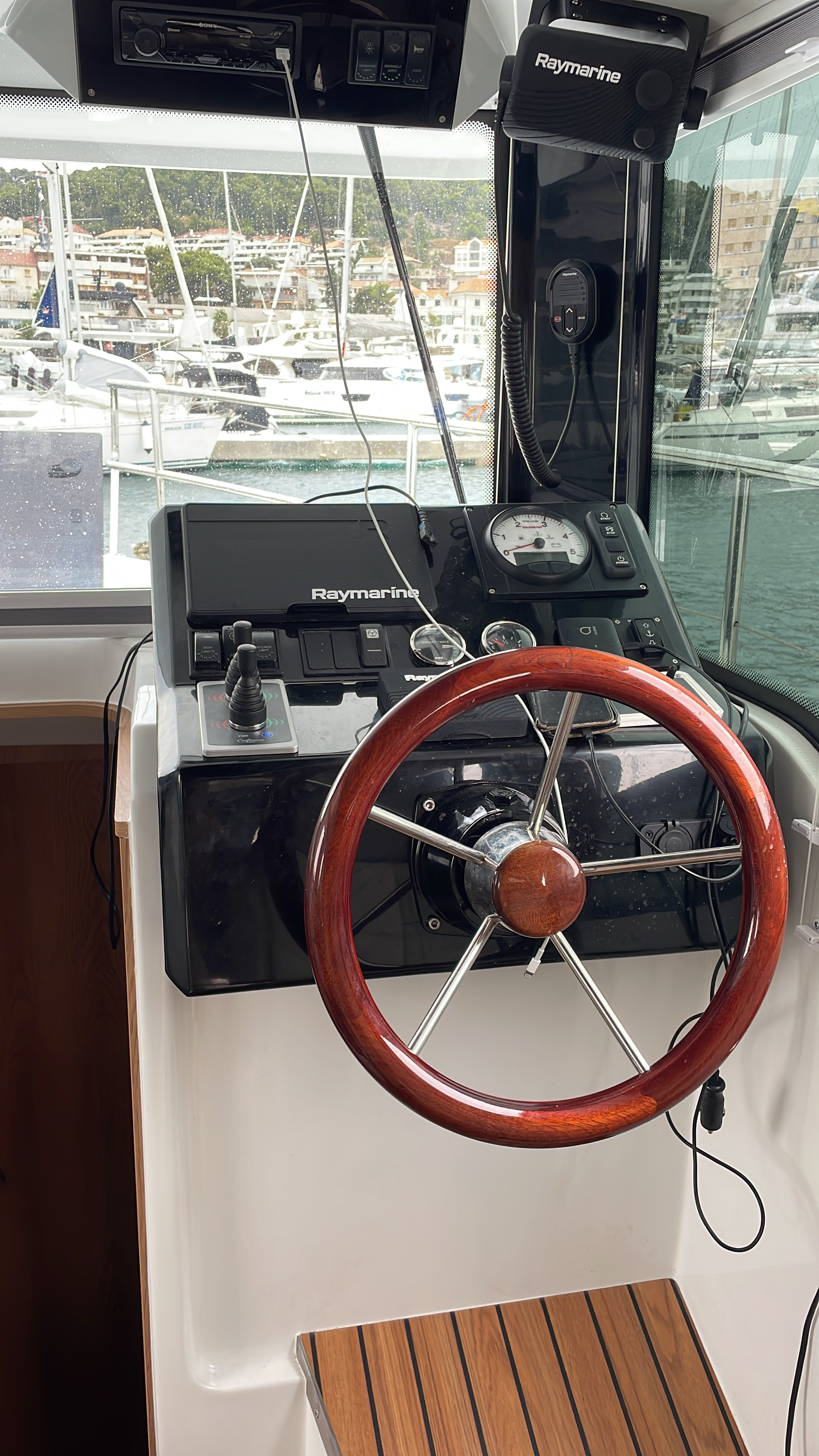 | Outside | Anker mit Kette, Biminitop, Cockpitdusche, elektr. Ankerwinsch, Gangway, Solaranlage, Teak im Cockpit |