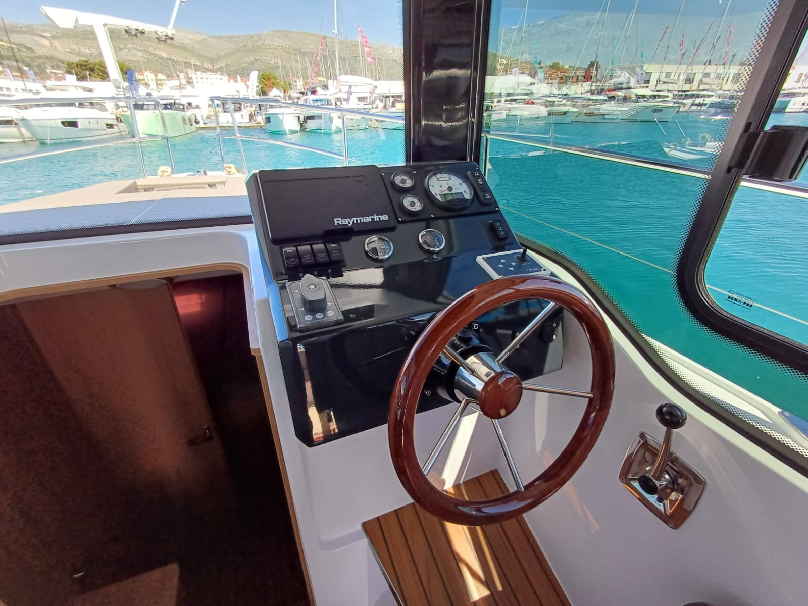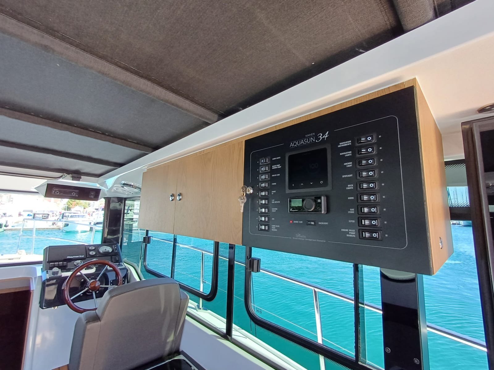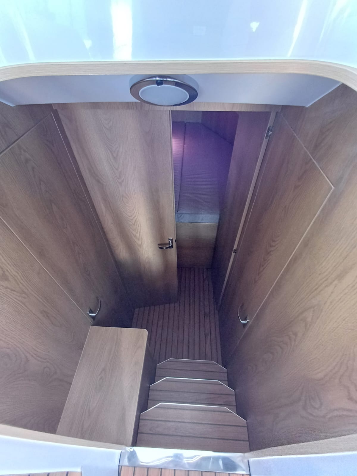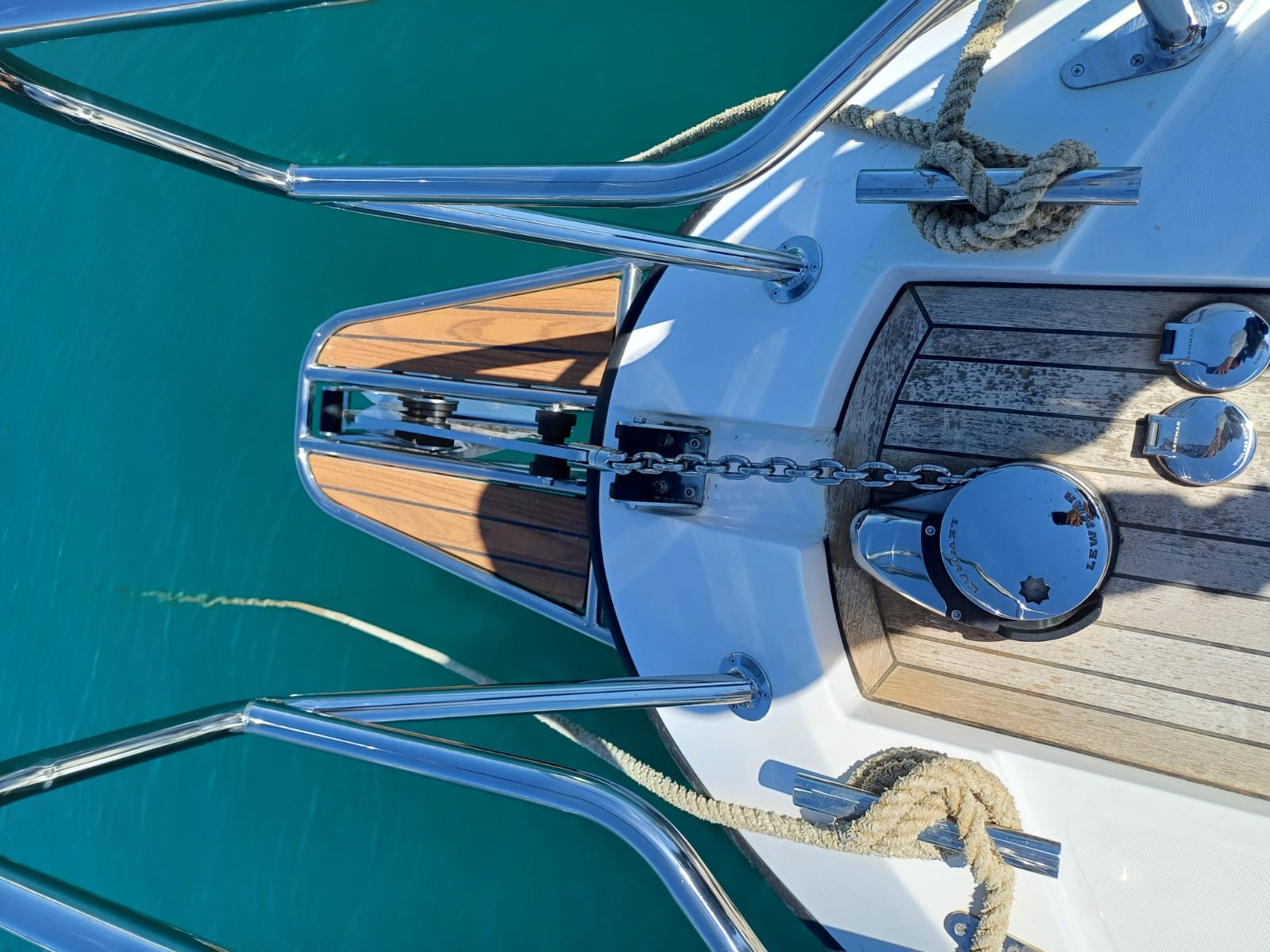 | Outside | Anker mit Kette, Biminitop, Cockpitdusche, elektr. Ankerwinsch, Gangway, Teak im Cockpit |