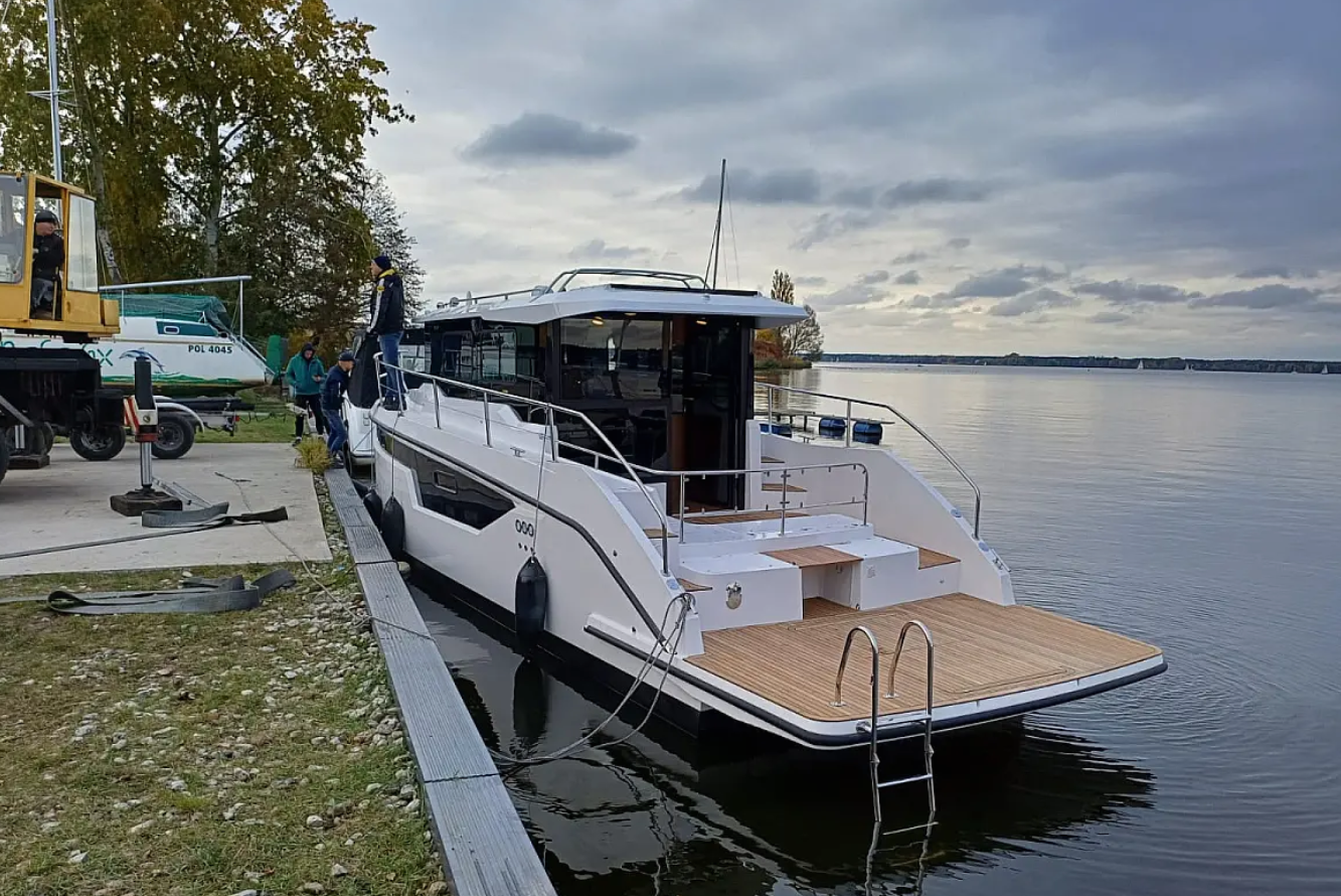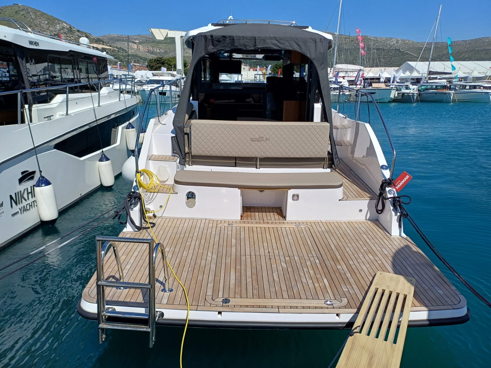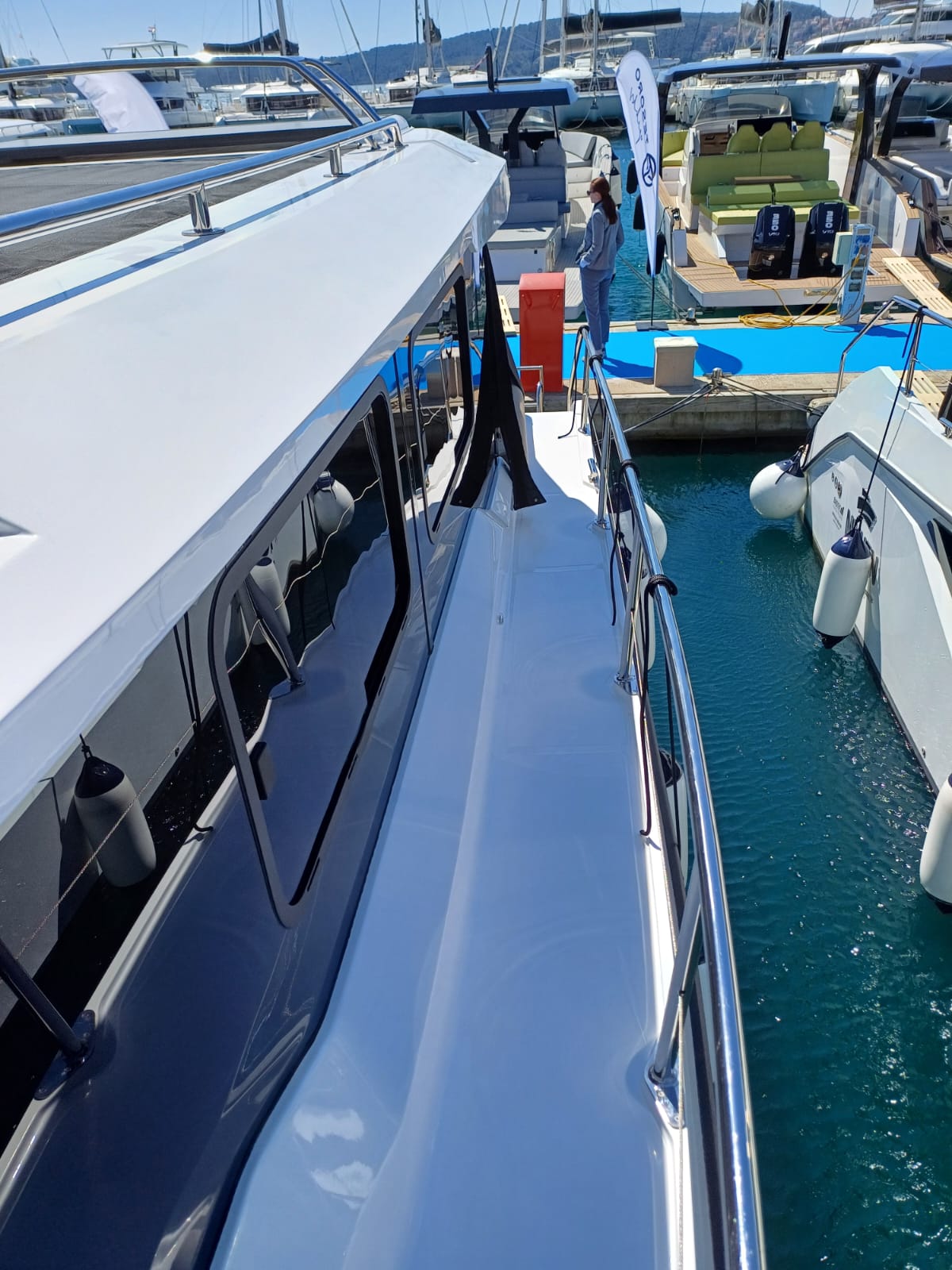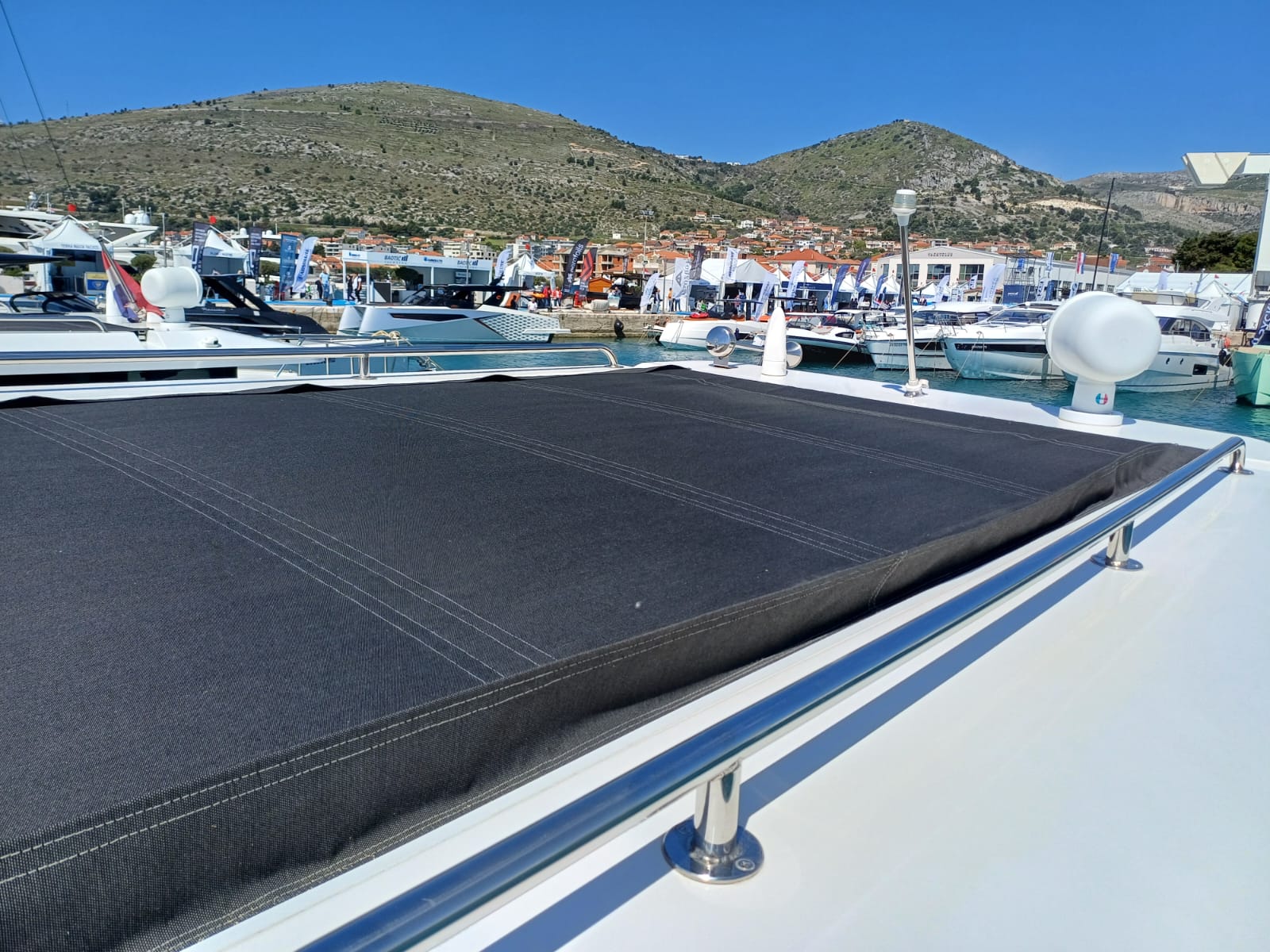 | Outside | Anker mit Kette, Biminitop, Cockpitdusche, elektr. Ankerwinsch, Gangway, Teak im Cockpit |