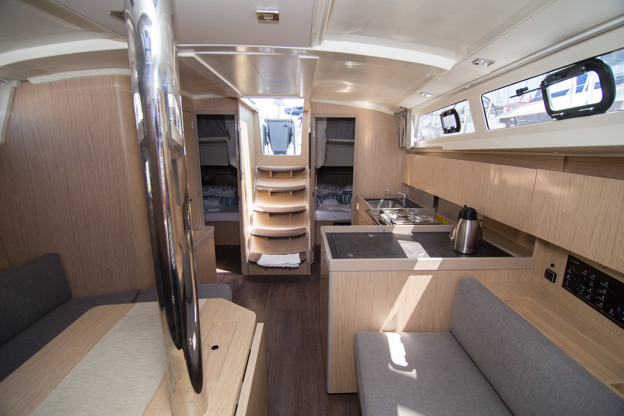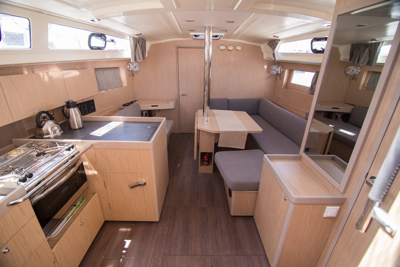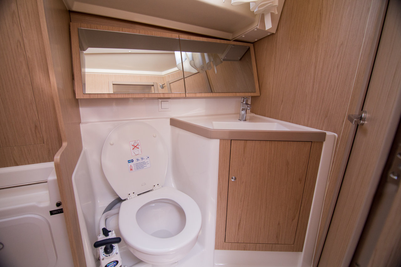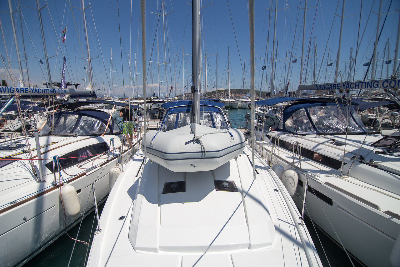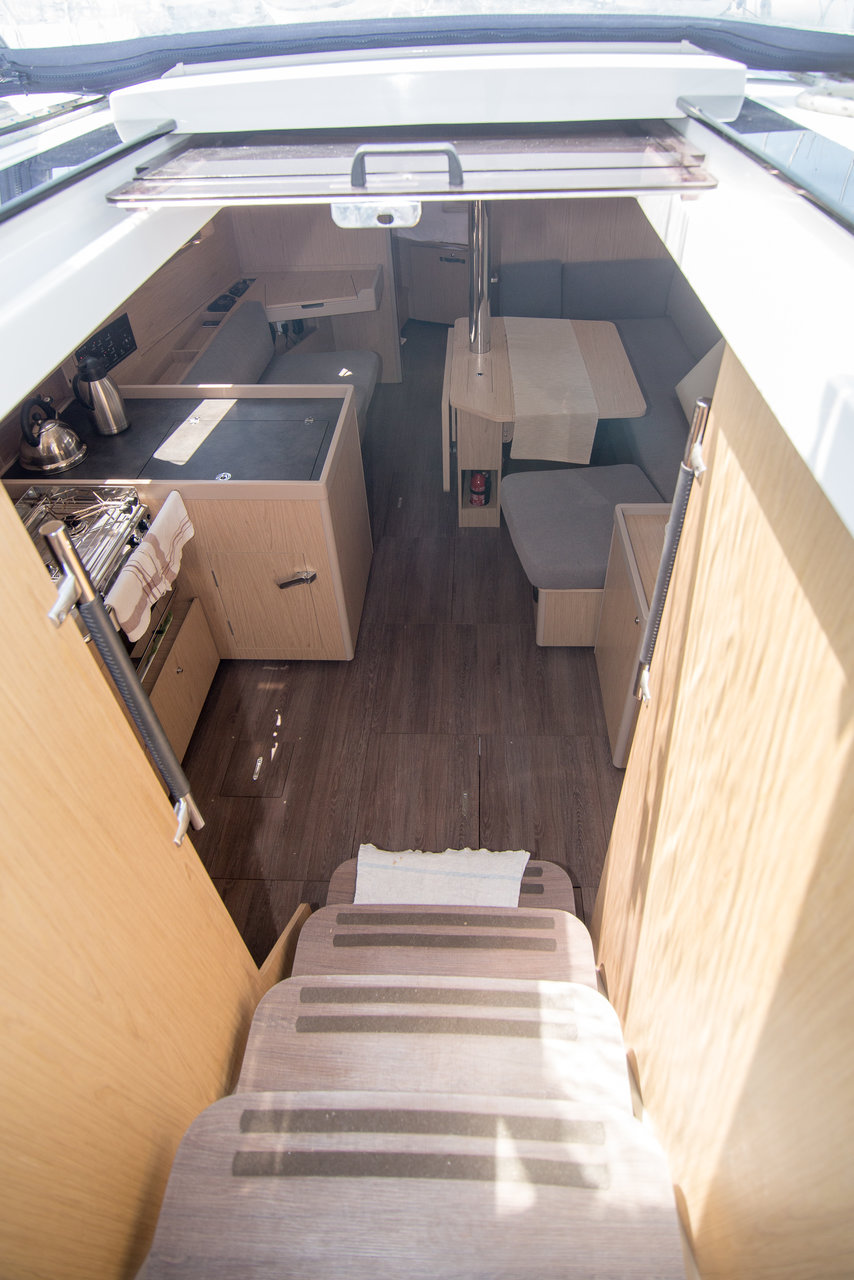 | Outside | 220 V-Landanschluss, Anker mit Kette, Badeleiter, Badeplattform, Biminitop, Cockpitdusche, Cockpitlautsprecher, Cockpitpolster, Cockpittisch, elektr. Ankerwinsch, Sprayhood, Teak im Cockpit, Winschen |