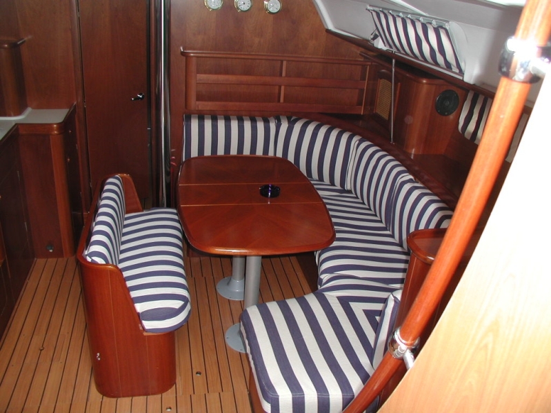 | Outside | 12 V-Anschluss, 220 V-Landanschluss, Biminitop, Bootshaken, Cockpitdusche, Cockpitlautsprecher, Cockpitpolster, Cockpittisch, Dieselkanister , elektr. Ankerwinsch, Fender, Festmacherleinen, Gangway, Kunststoff-Eimer (Pütz), Selbstholende Winschen, Solaranlage, Sprayhood, Wasserschlauch, Windex |