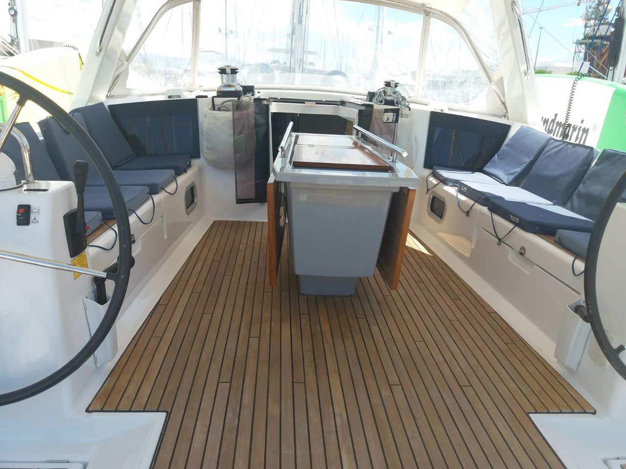 | Outside | 220 V-Landanschluss, Ankerkettenzähler, Badeplattform elektr., Biminitop, Bootshaken, Cockpitdusche, Cockpitlautsprecher, Cockpitpolster, Cockpittisch, Delta-Anker, elektr. Ankerwinsch, elektr. Winsch, Fender, Festmacherleinen, Gangway, Jambo Anker, Kugelfender, Solaranlage, Sprayhood, Teak im Cockpit, Wasserschlauch, Winschen |