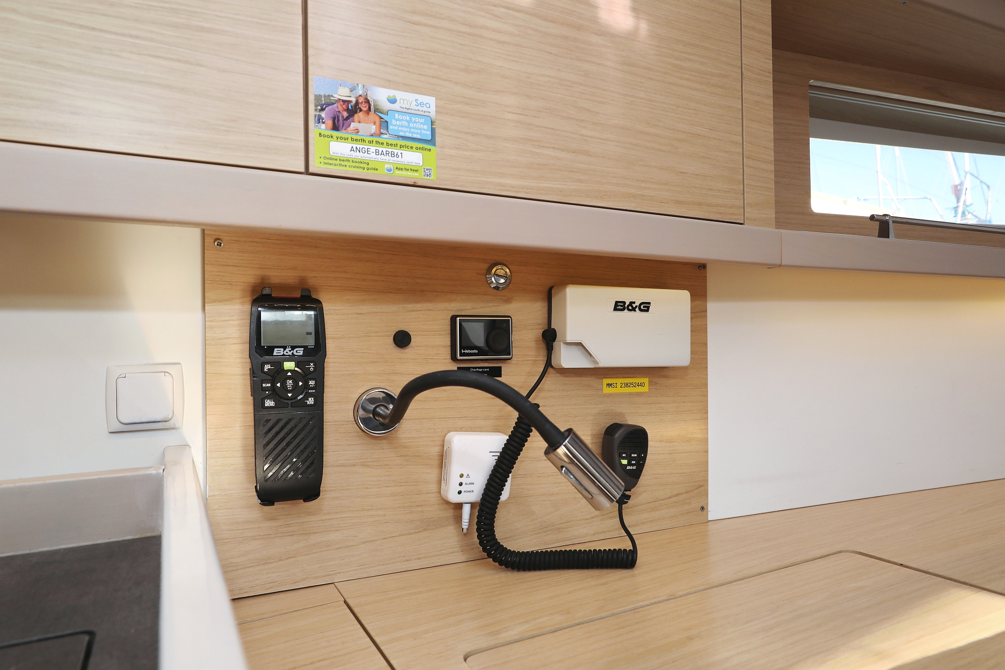 | Safety | Autopilot, Blitzboje, Bordapotheke, Bordwerkzeug, Bugstrahlruder, elektr. Bilgepumpe, Feststoffschwimmwesten, Feuerlöscher, Handbilgepumpe, Lifebelts, Nebelhorn, Notpinne, Notsignale, Radarreflektor, Rettungsinsel, Taschenlampe, UKW-Funk |