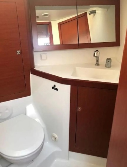 Der Unterhaltungszustand der Yacht hätte besser sein können. Kleinigkeiten wie der Tisch im Cockpit, Schubladen in der Küche, Halterung der Badeplattform bedürfen mehr Wartung. Keine Pütz an Bord.