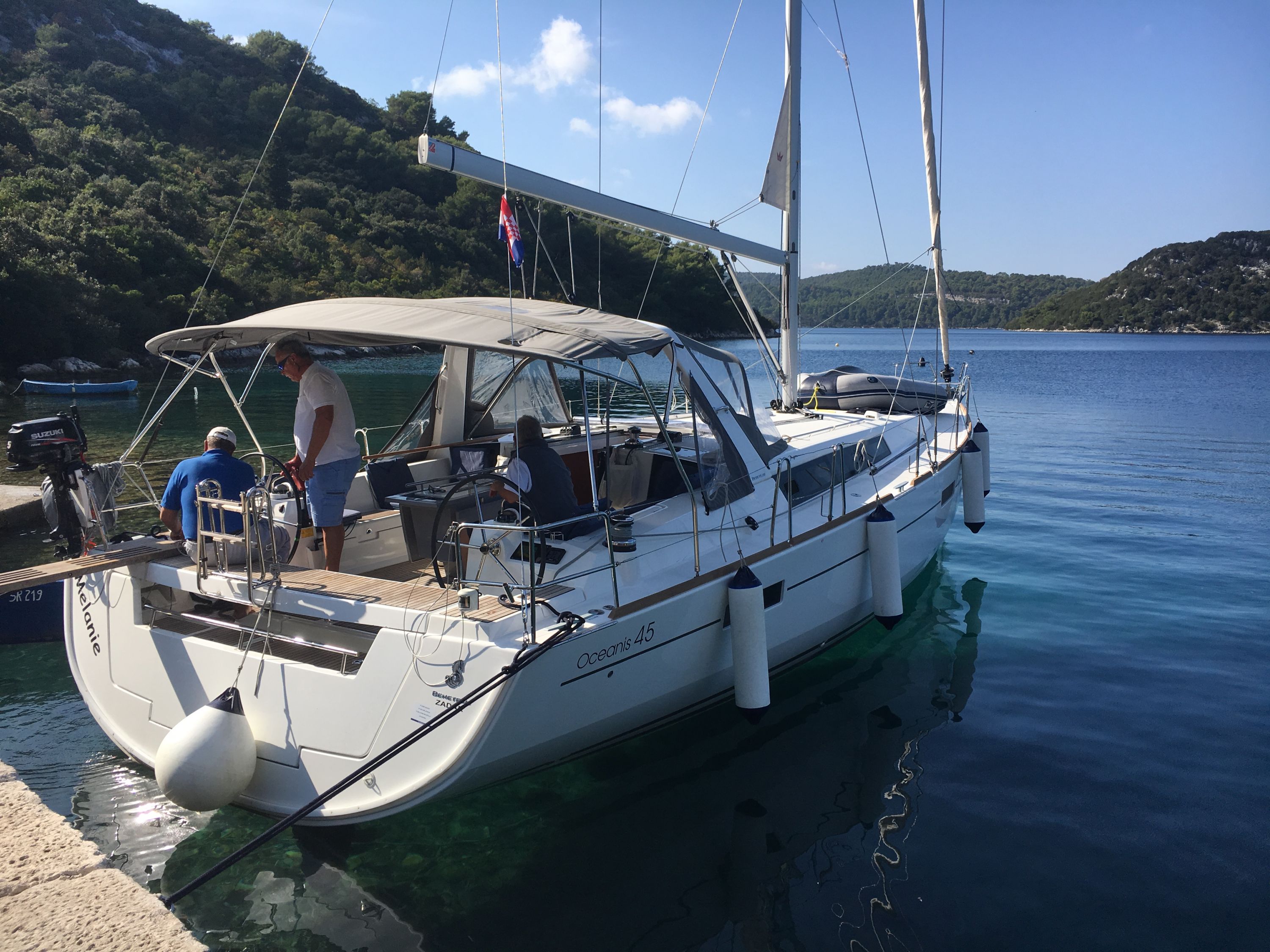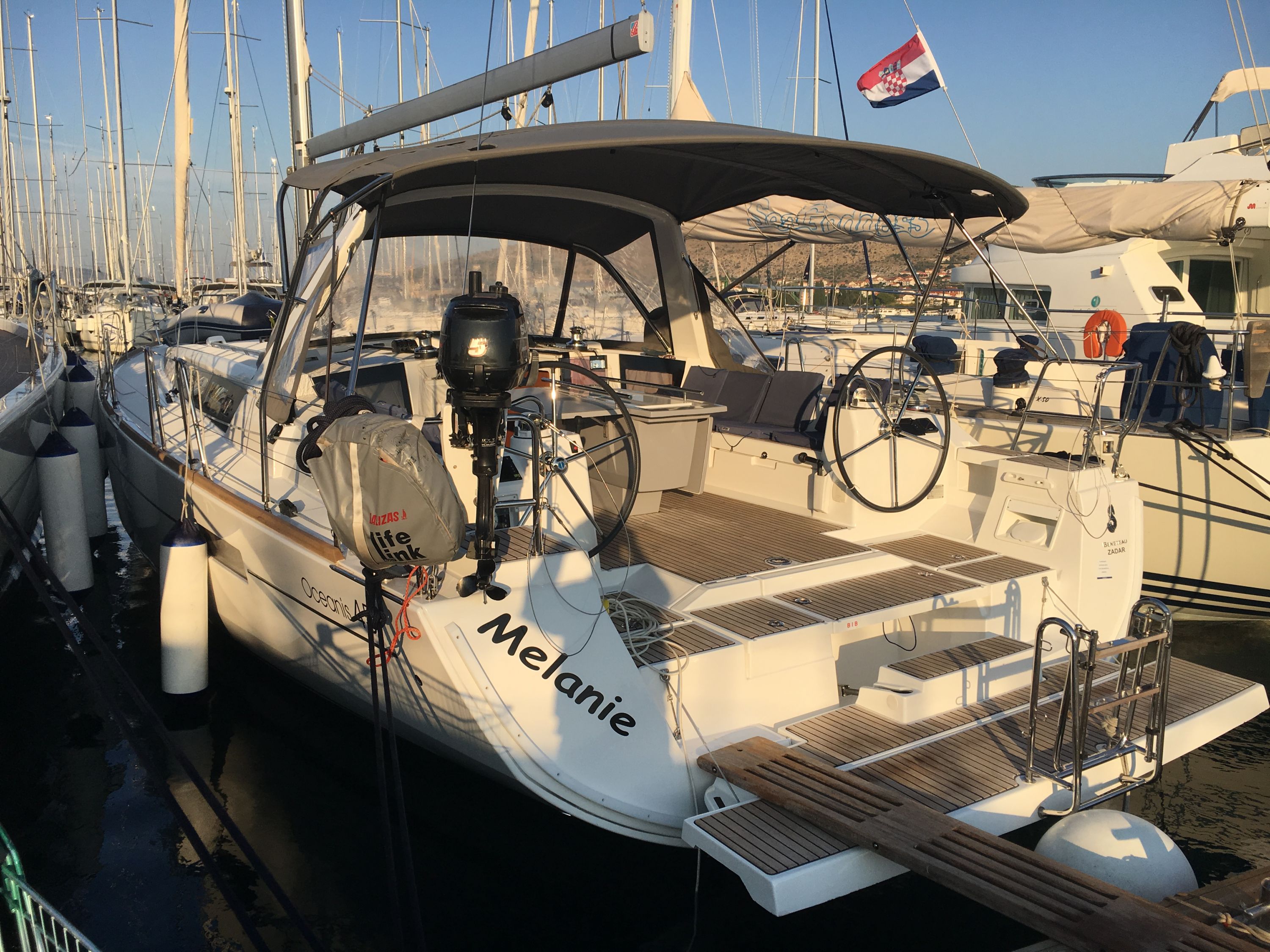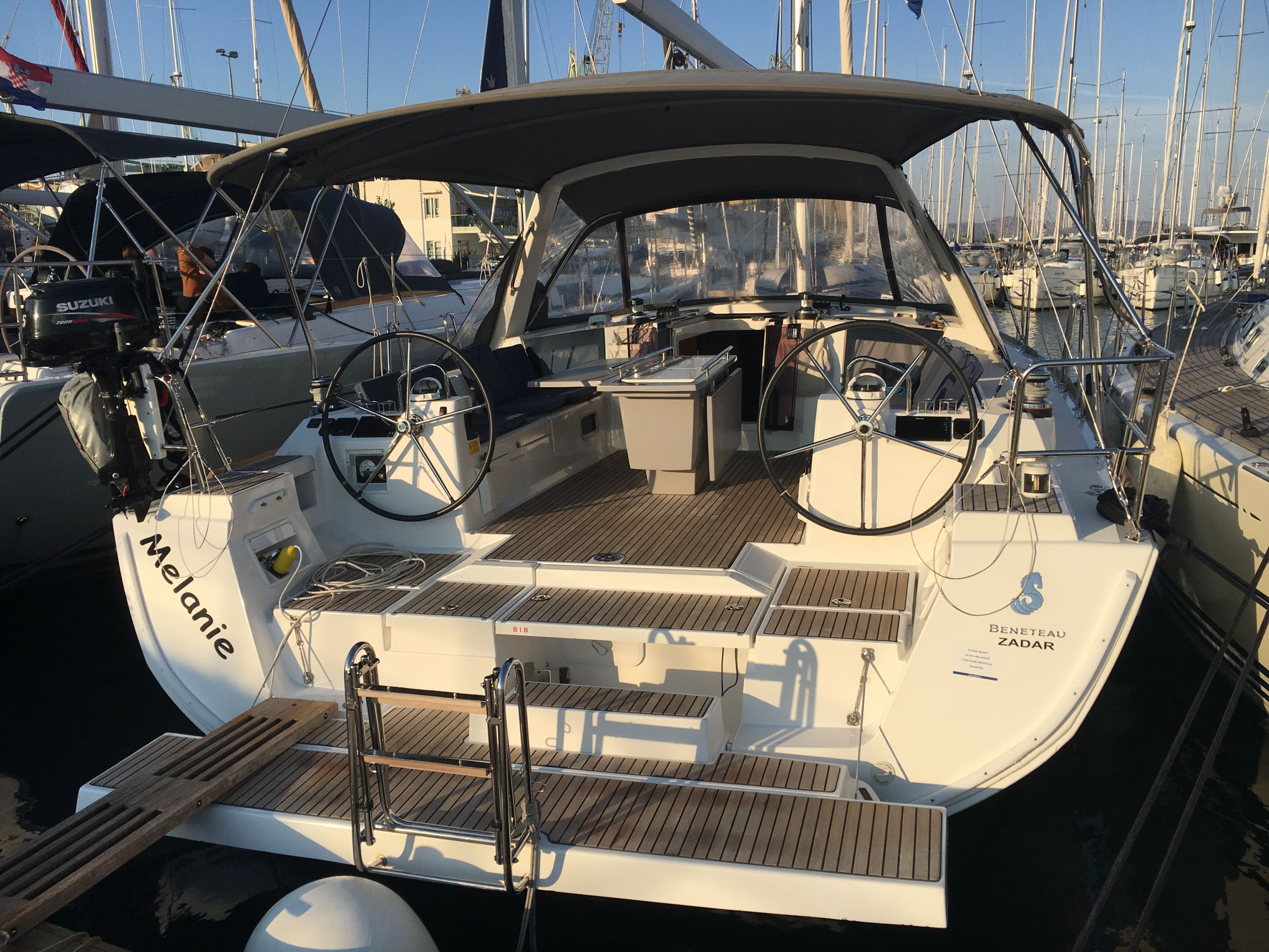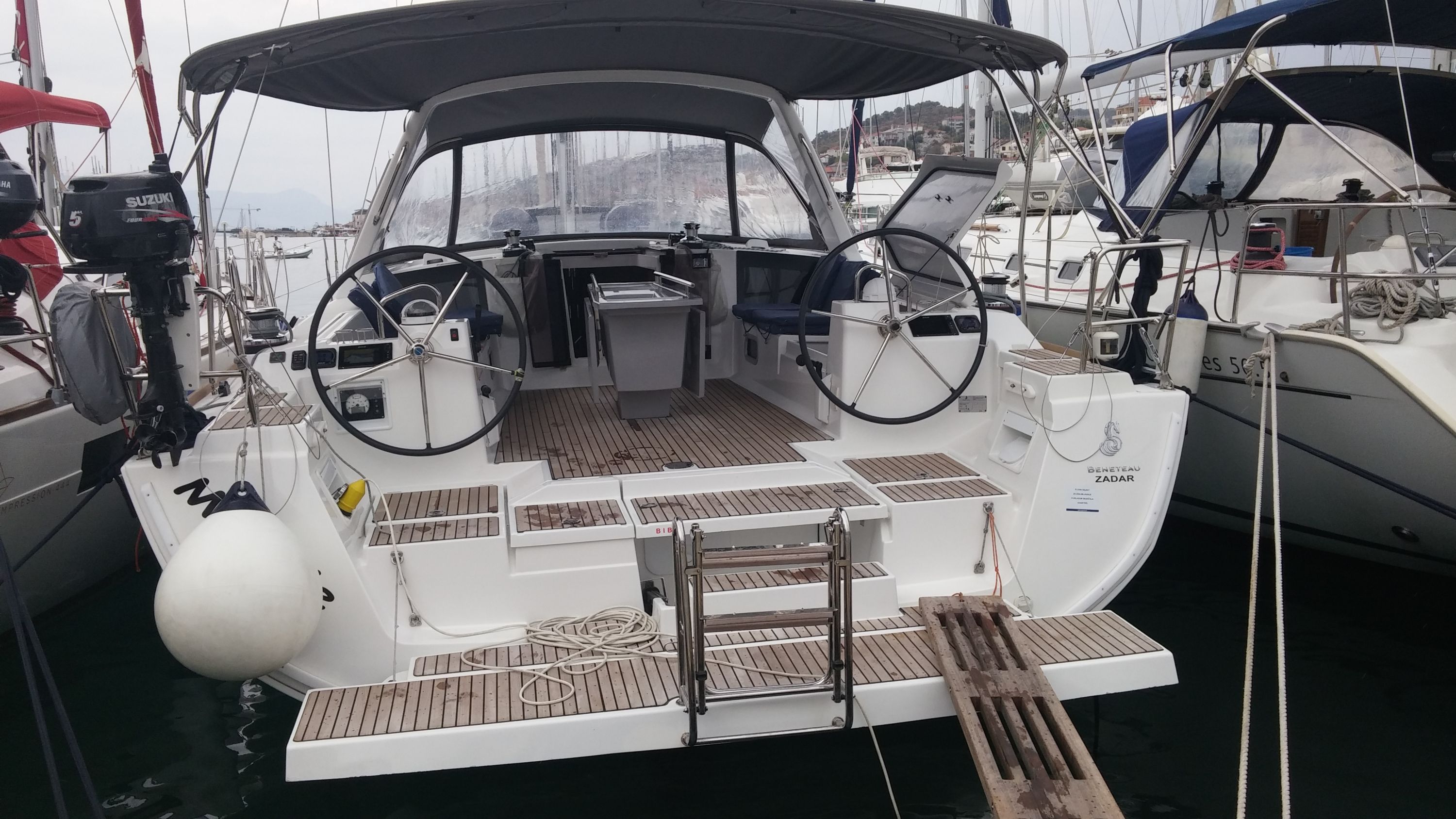 | Outside | 220 V-Landanschluss, Badeplattform, Biminitop, Bootshaken, Cockpitdusche, Cockpitlautsprecher, Cockpitpolster, Cockpittisch, Delta-Anker, elektr. Ankerwinsch, Fender, Festmacherleinen, Gangway, Kugelfender, Solaranlage, Sprayhood, Teak im Cockpit, Wasserschlauch, Winschen |