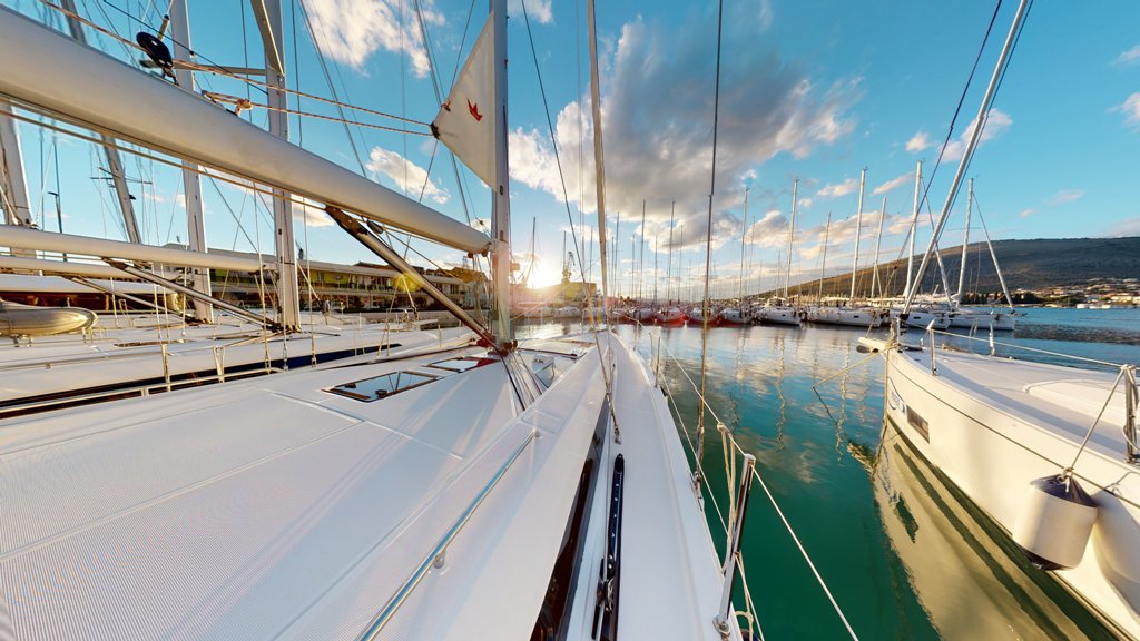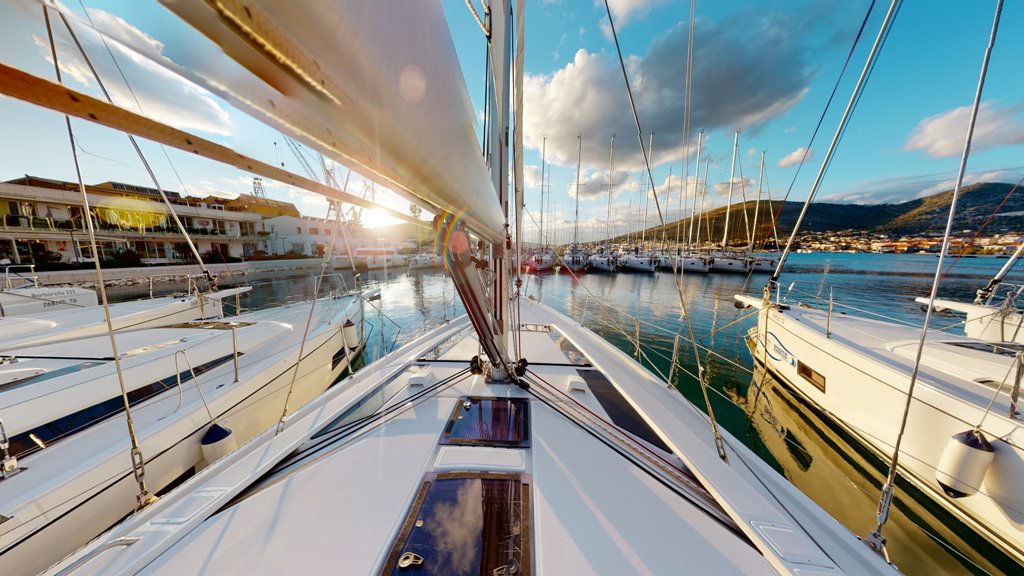 | Outside | 220 V-Landanschluss, Anker mit Kette, Badeplattform, Biminitop, Bootshaken, Cockpitdusche, Cockpitlautsprecher, Cockpitpolster, Cockpittisch, Delta-Anker, elektr. Ankerwinsch, Fender, Festmacherleinen, Gangway, Grill, Jambo Anker, Solaranlage, Sprayhood, Teak im Cockpit, Wasserschlauch, Winschen |