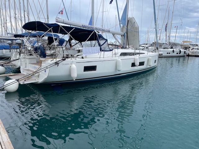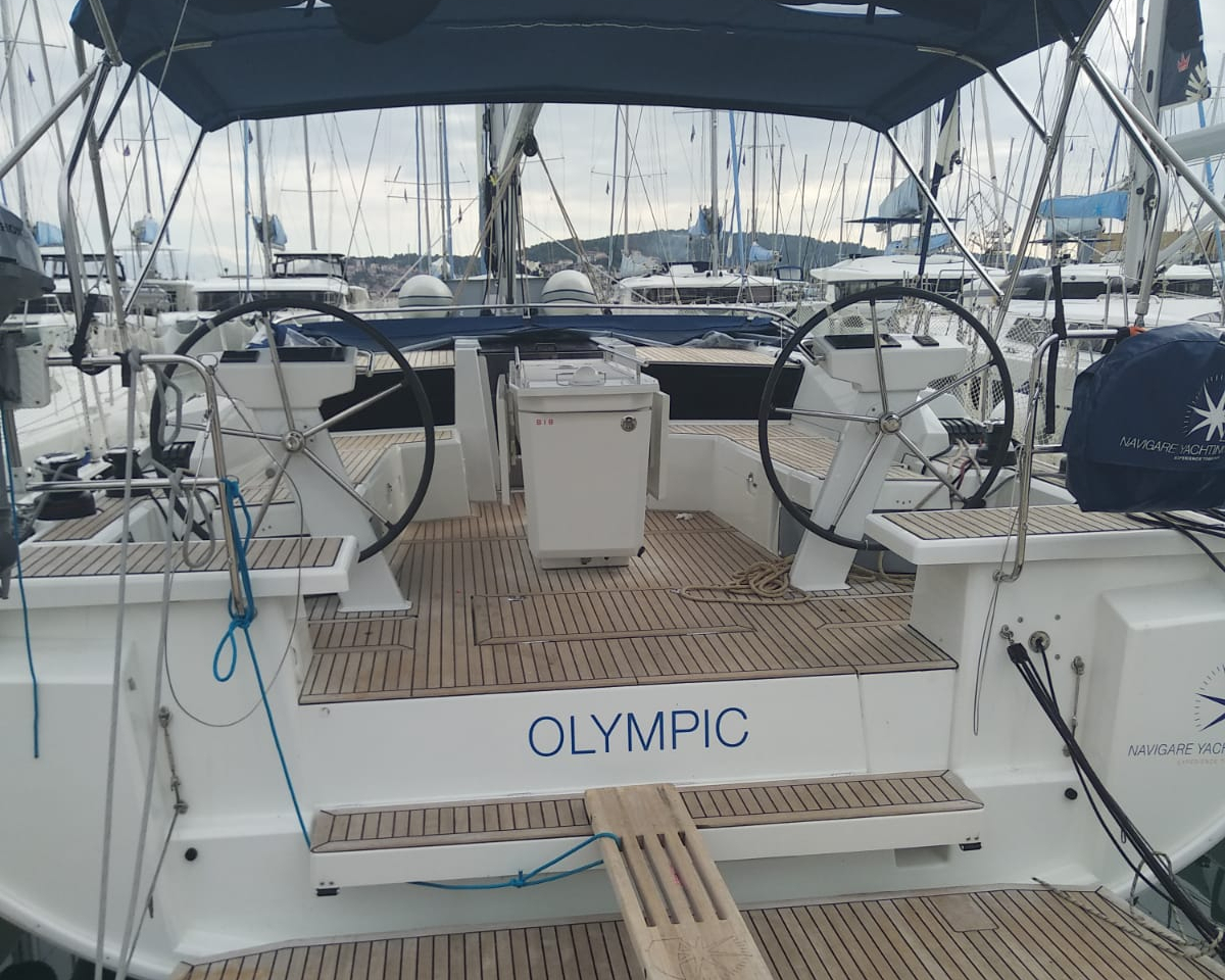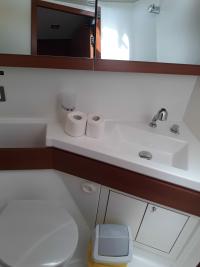 | Outside | 220 V-Landanschluss, Anker mit Kette, Badeleiter, Badeplattform, Biminitop, Cockpitdusche, Cockpitlautsprecher, Cockpitpolster, Cockpittisch, elektr. Ankerwinsch, Sprayhood, Teak im Cockpit, Winschen |