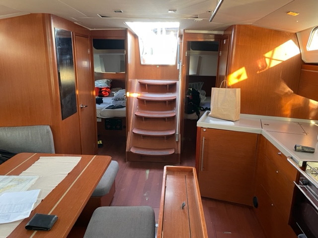 | Navigation | GPS mit Kartenplotter, Kompass, Tridata (Log, Echolot, Windm.), Windmesser |