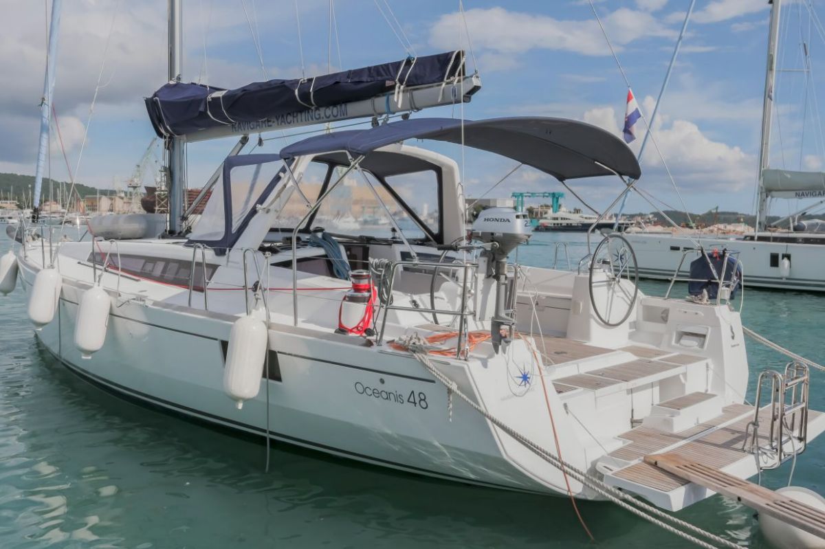 | Outside | Badeleiter, Badeplattform, Biminitop, Cockpitdusche, Cockpitlautsprecher, Cockpitpolster, elektr. Ankerwinsch, elektr. Winsch, Sprayhood, Teak im Cockpit, Winschen |