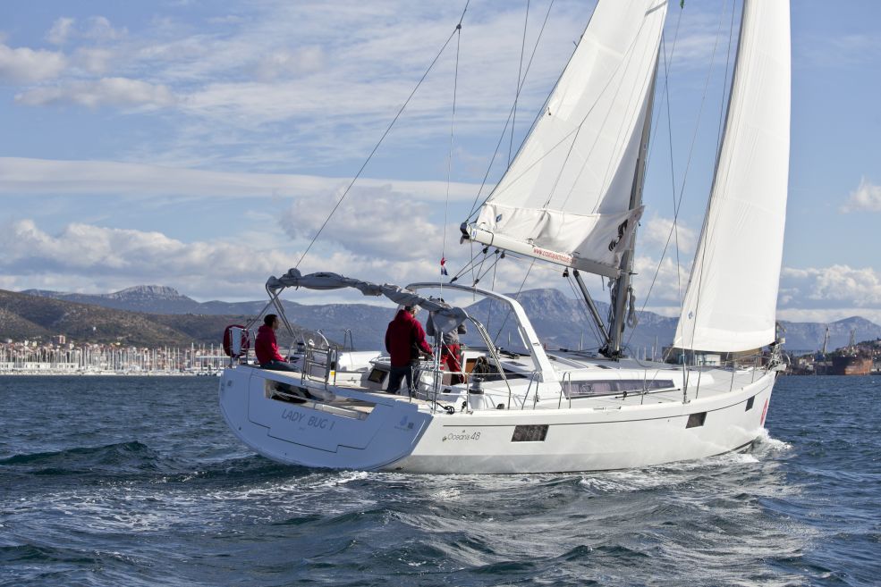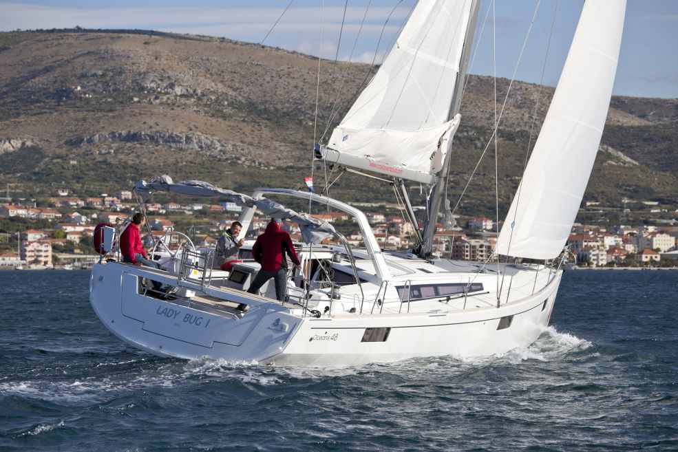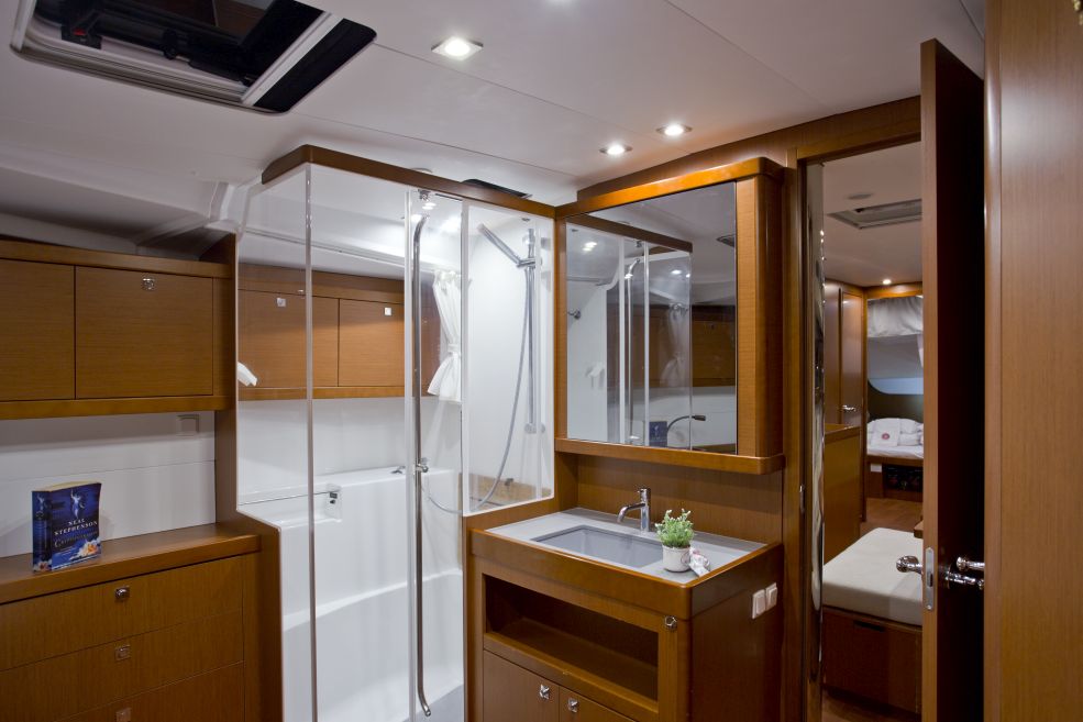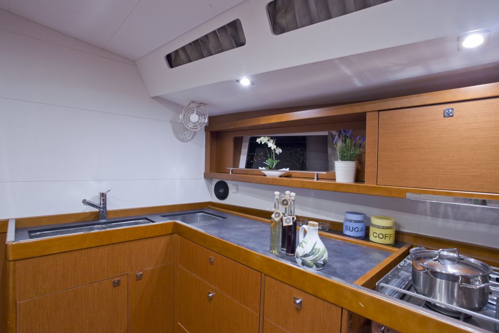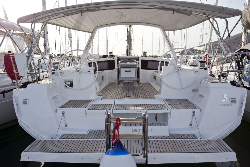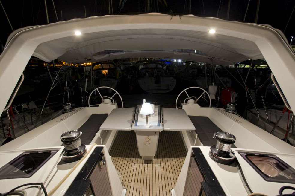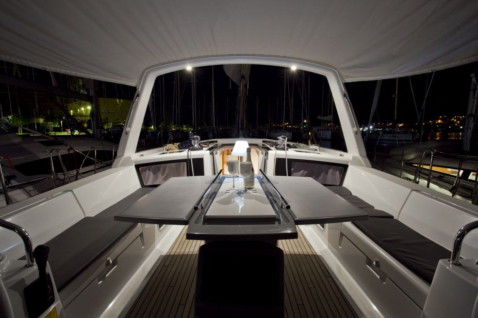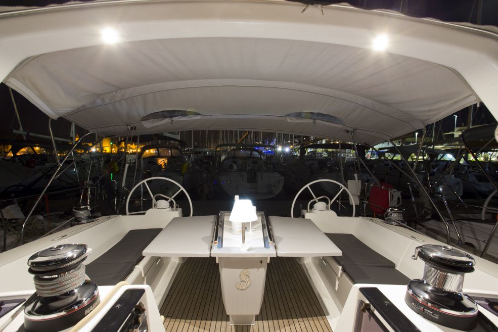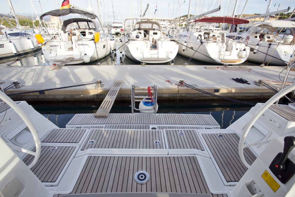 | Outside | Badeplattform, Biminitop, Cockpitpolster, elektr. Ankerwinsch, elektr. Winsch, Faltpropeller, Sprayhood, Teak im Cockpit |