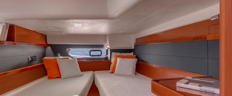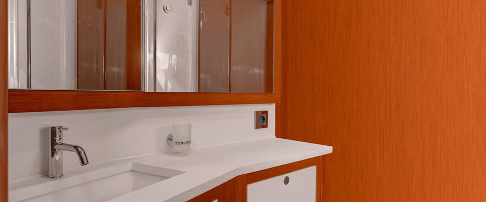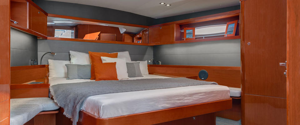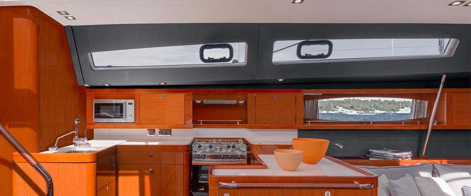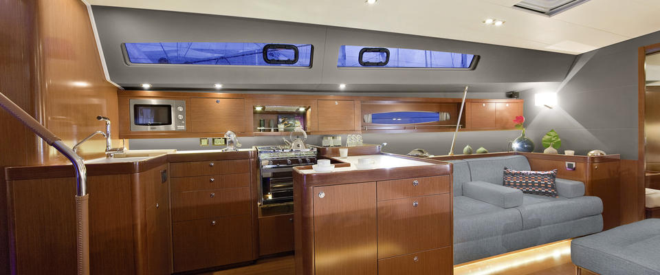 | Inside | Backofen, Eiswürfelmaschine, FUSION Sound System, Gasherd, Generator, Geschirrspüler, Inverter 12V/220V, Kaffeemaschine, Klimaanlage, Klimaanlage (ohne Landstrombedarf), Kühlschrank, Lautsprecher im Salon, Pantryausstattung, Safe für Wertsachen, WC (elektr.), Weinkühlschrank |