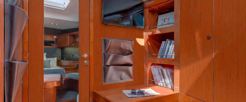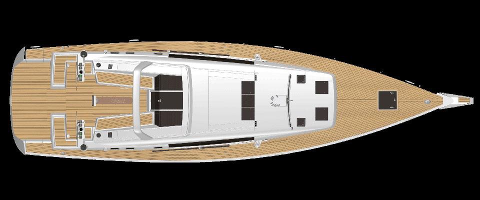 | Outside | Cockpitlautsprecher, Cockpitpolster, Cockpittisch, elektr. Ankerwinsch, elektr. Winsch, Fender, Festmacherleinen, Schnorchelausrüstung, Sonnendeck, Teak im Cockpit, Teakdeck, Unterwasserbeleuchtung |