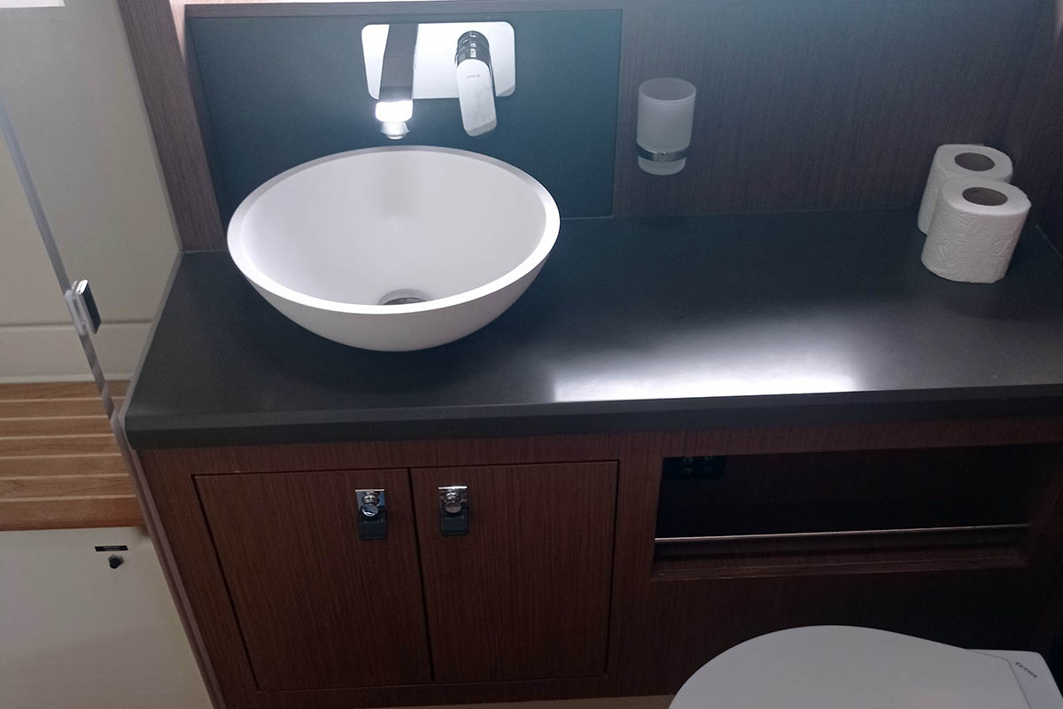 | Inside | 220V Steckdosen, Backofen, Eiswürfelmaschine, Elektrische Filterkaffeemaschine, Fäkalientank, Gasherd, Generator, Geschirrspüler, Heizung, Klimaanlage (ohne Landstrombedarf), Kühlbox, Kühlschrank, Ladegerät, Lautsprecher im Salon, Mikrowelle, Mokkakanne, Pantryausstattung, Radio mit MP3 , Safe für Wertsachen, Toaster, Trockner, TV, Warmwasser, Waschmaschine, Wasserkocher, WC (elektr.), Weinkühlschrank |