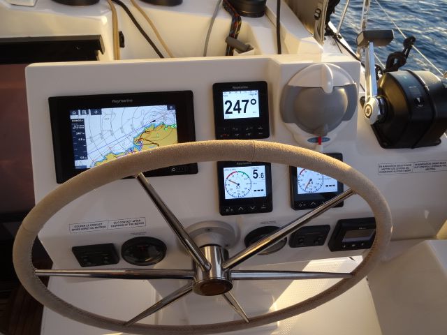 Barometer, Fernglas mit Peilkompass, GPS mit Kartenplotter im Cockpit, Hafenhandbücher, Navigationsbesteck, Seekarten, Tridata (Log, Echolot, Windm.) |