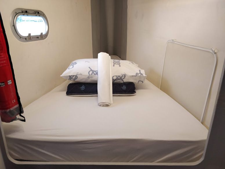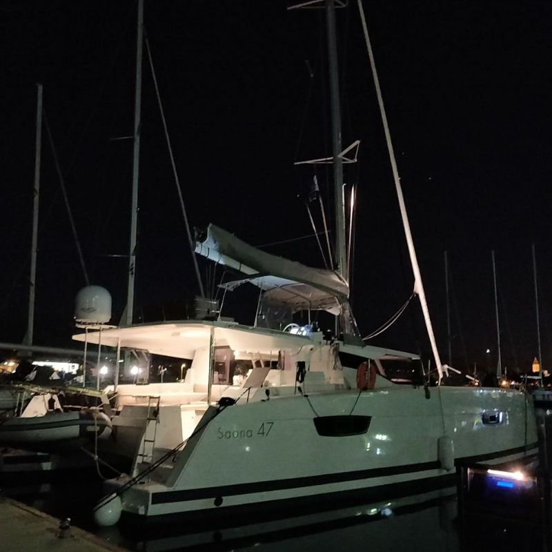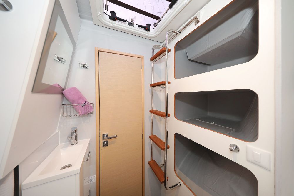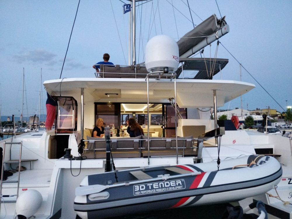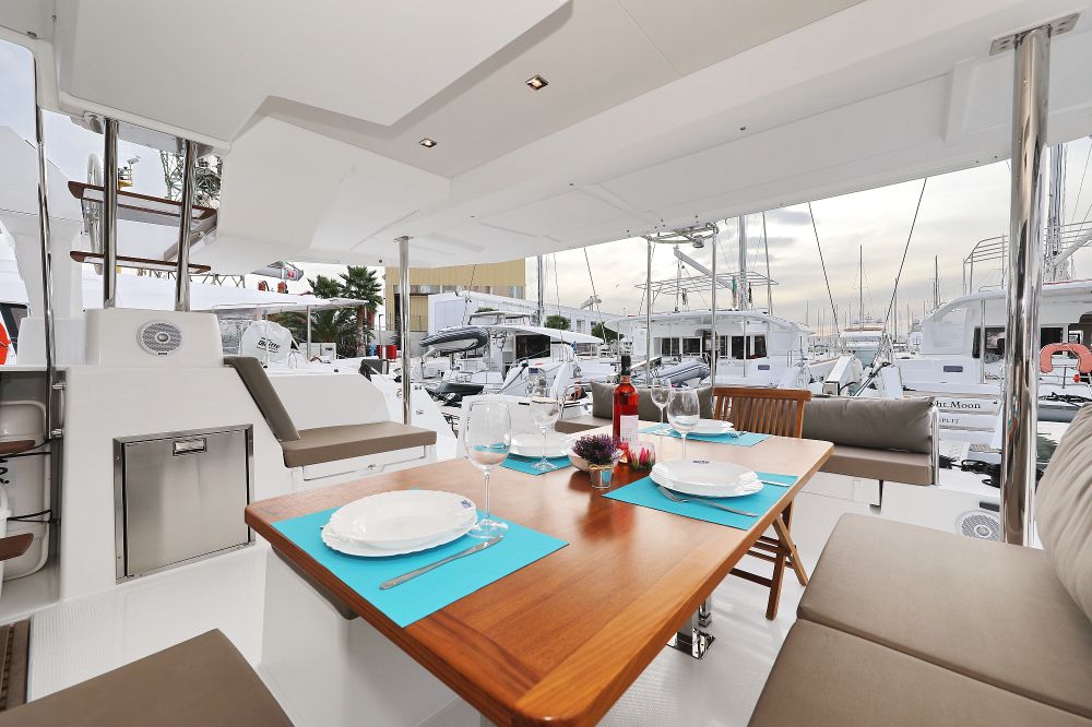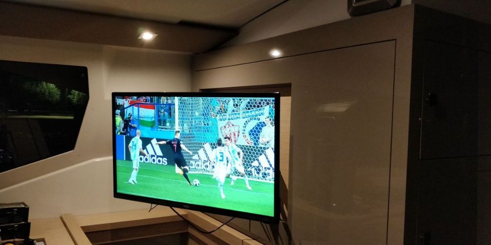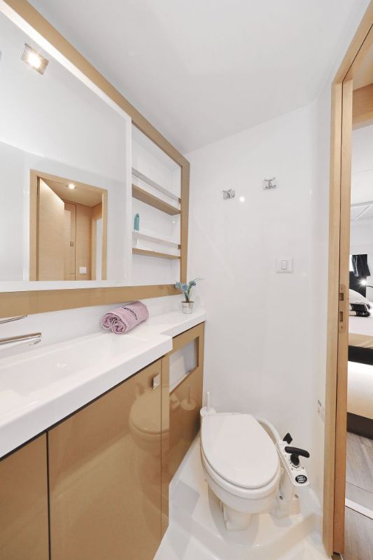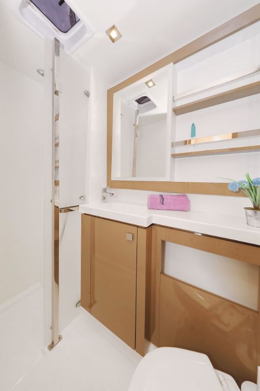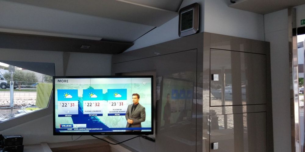 Backofen, Borduhr, Dusche, FUSION Sound System, Gefrierschrank, Generator, Geschirrspüler, Heizung, Inverter 12V/220V, Klimaanlage (ohne Landstrombedarf), Kühlschrank, Ladegerät, Luftpumpe für Beiboot, Mikrowelle, Pantryausstattung, Radio mit Bluetooth, Salontisch absenkbar, Satelliten-TV, Ventilatoren in Kabinen, Warmwasser, WC (elektr.) |