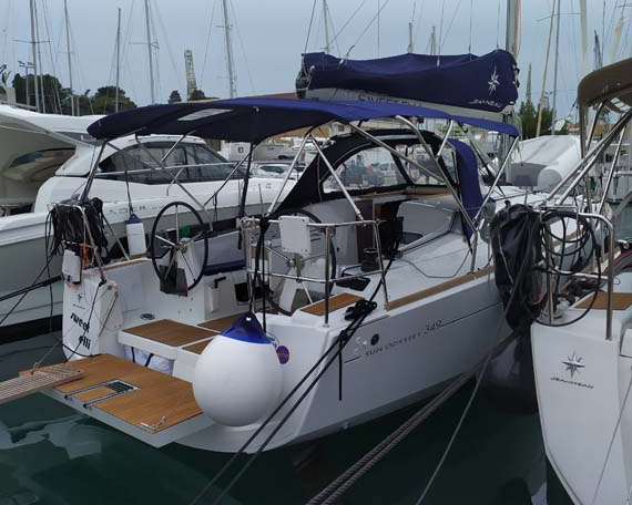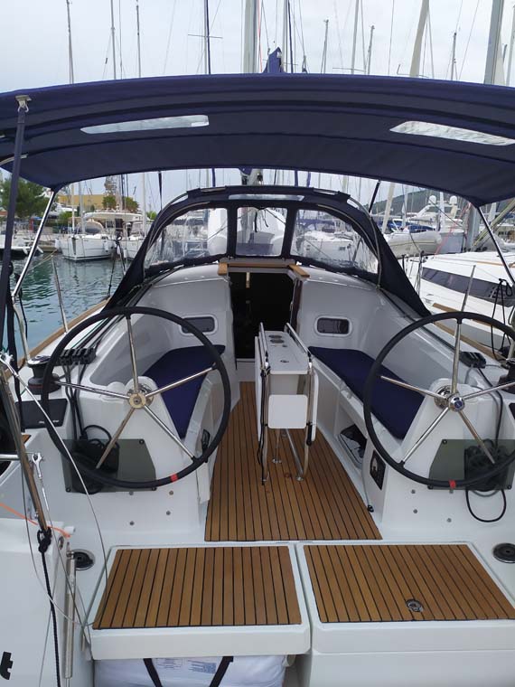 | Outside | 12 V-Anschluss, Anker mit Kette, Badeleiter, Badeplattform, Biminitop, Cockpitdusche, Cockpittisch, elektr. Ankerwinsch, Fender, Festmacherleinen, Gangway, Solaranlage, Sprayhood, Teak im Cockpit, Unterwasserbeleuchtung, Wasserschlauch, Windex |