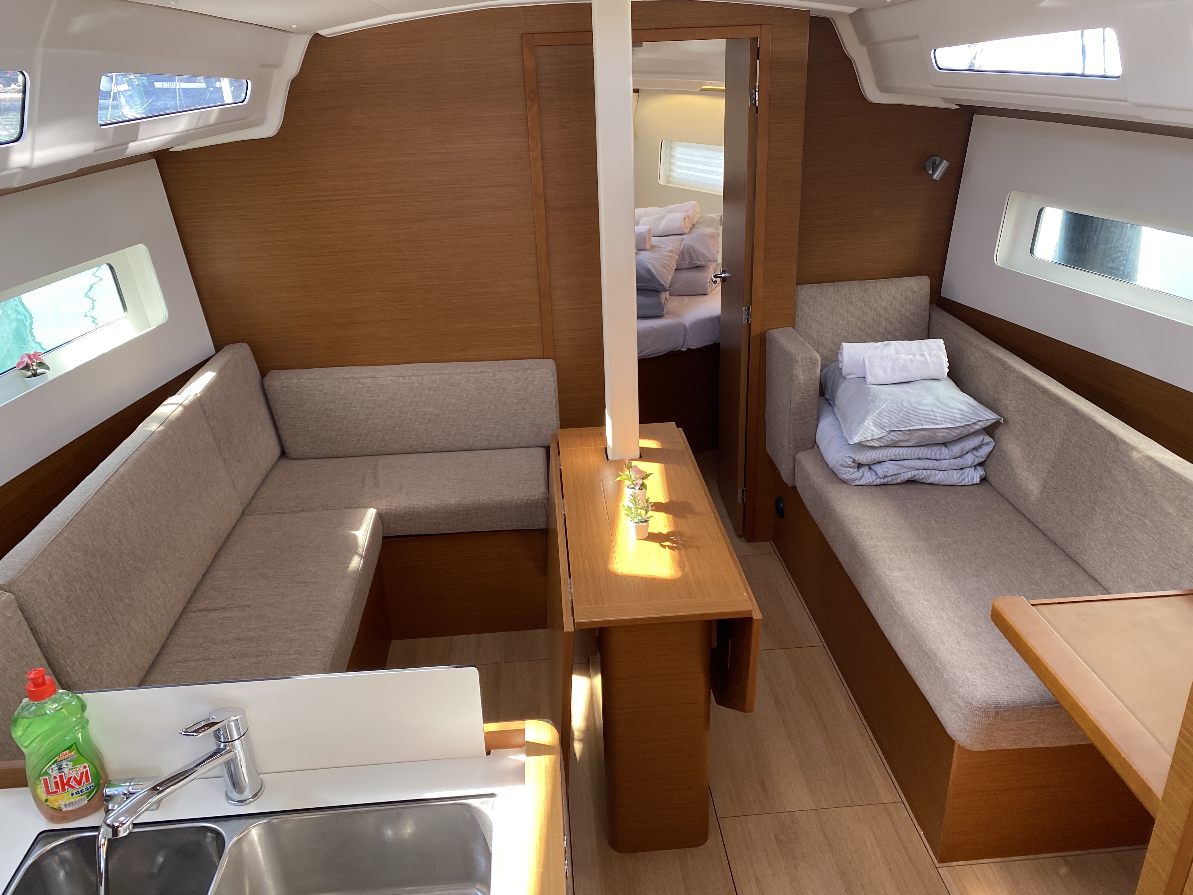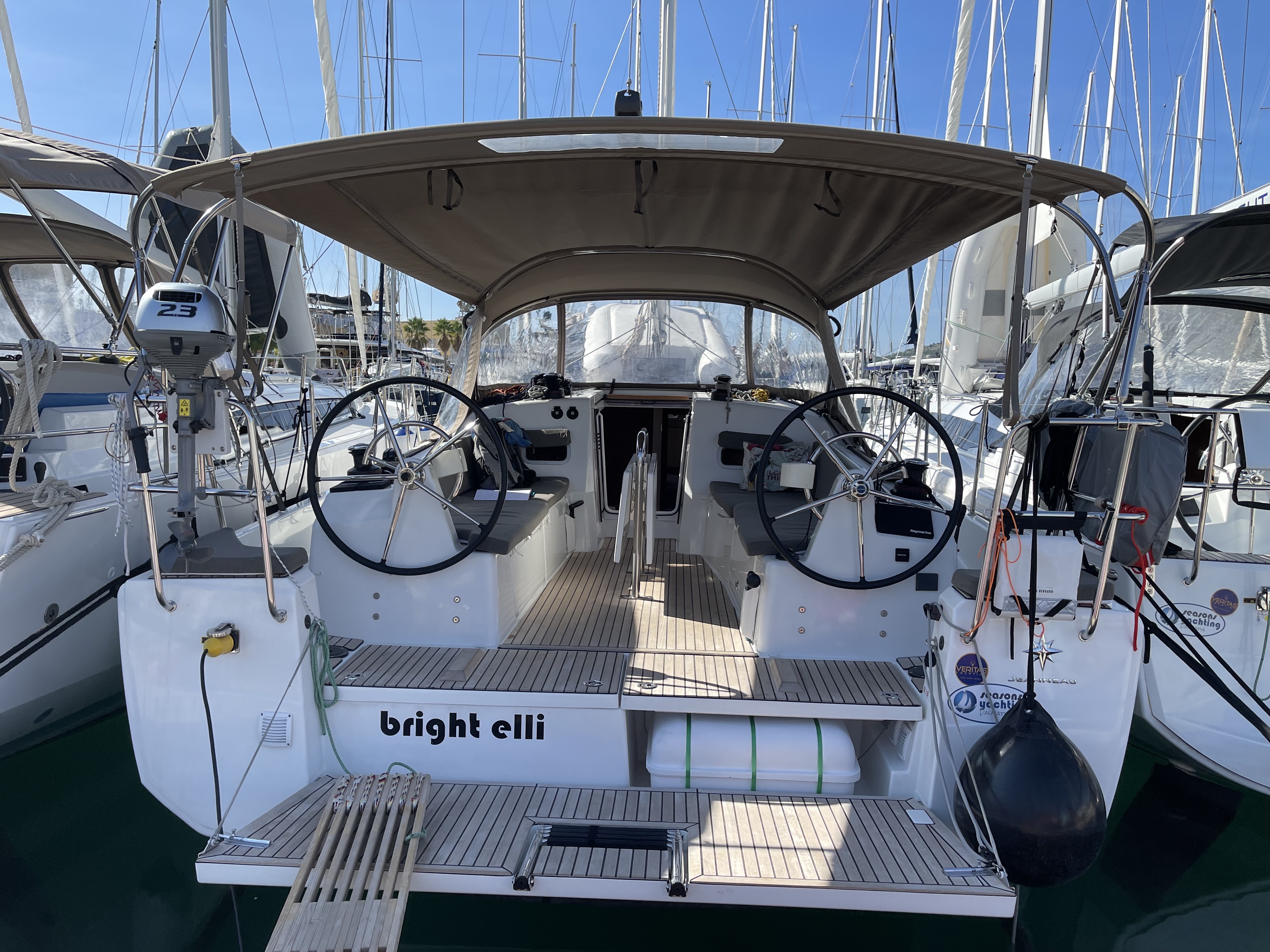 | Outside | 12 V-Anschluss, Anker mit Kette, Badeleiter, Badeplattform, Biminitop, Cockpitdusche, Cockpittisch, elektr. Ankerwinsch, elektr. Winsch, Fender, Festmacherleinen, Gangway, Solaranlage, Sprayhood, Teak im Cockpit, Unterwasserbeleuchtung, Wasserschlauch, Windex |