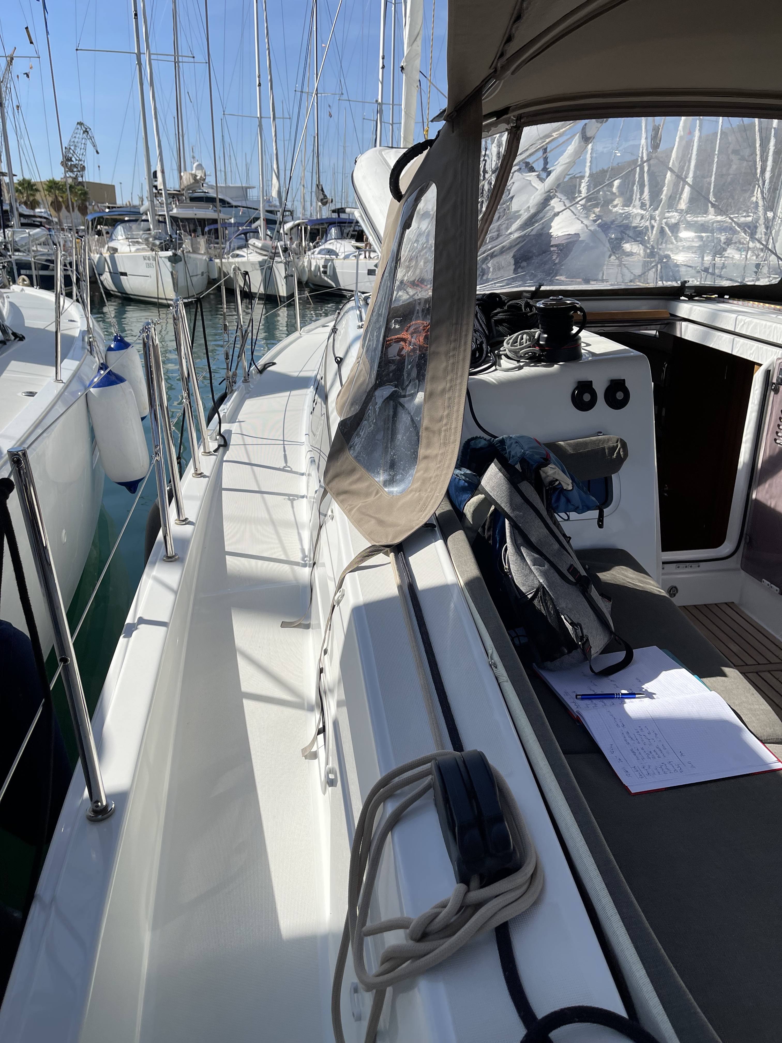 | Navigation | Echolot, elektr. Seekarten, Fernglas, GPS mit Farbkartenplotter im Cockpit, Hafenhandbücher, Handpeilkompass, Kompass, Sumlog, Windmesser |