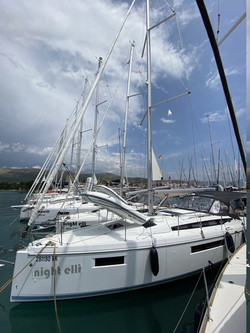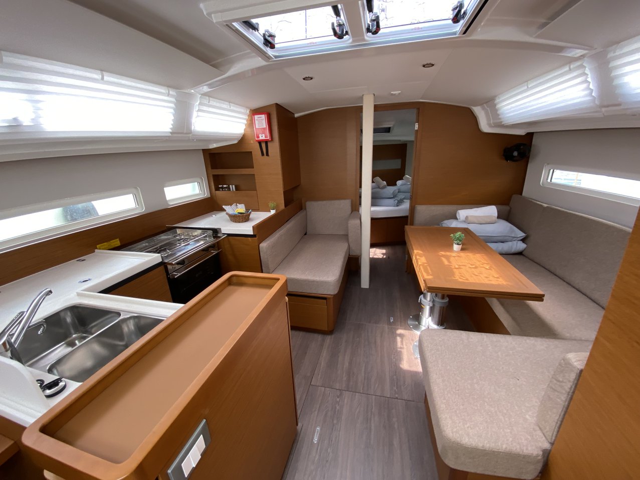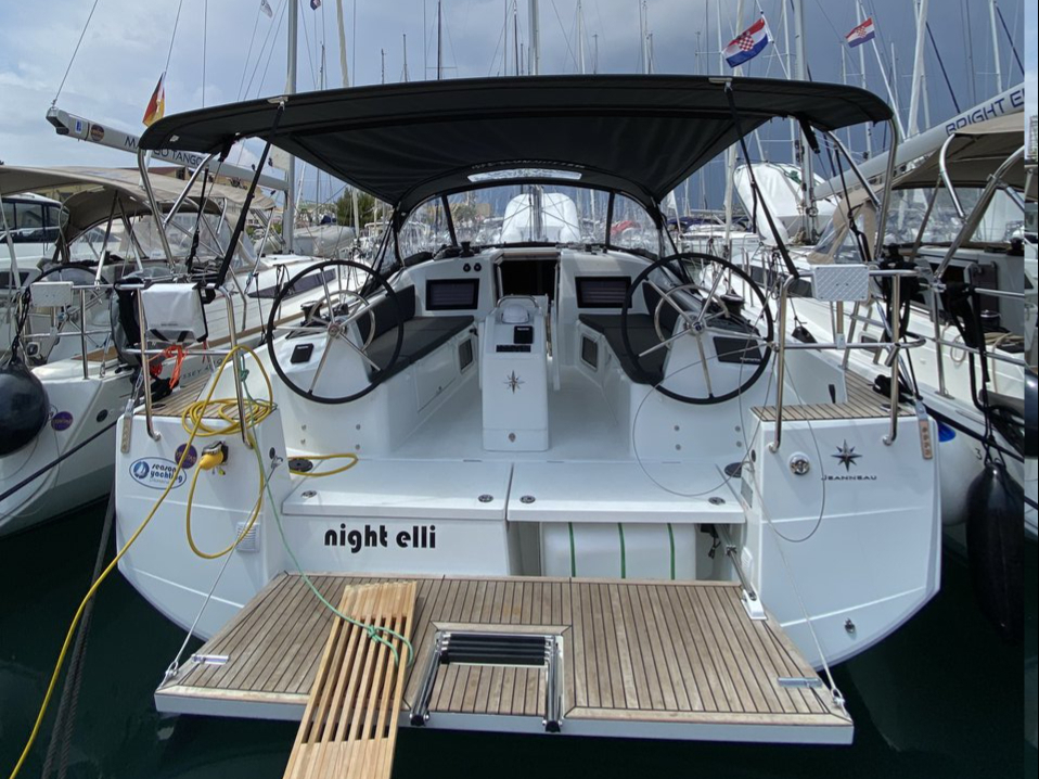 | Outside | 12 V-Anschluss, Anker mit Kette, Badeleiter, Badeplattform, Biminitop, Cockpitdusche, Cockpittisch, elektr. Ankerwinsch, elektr. Winsch, Fender, Festmacherleinen, Gangway, Solaranlage, Sprayhood, Unterwasserbeleuchtung, Wasserschlauch, Windex |