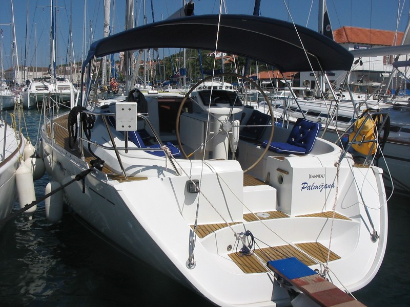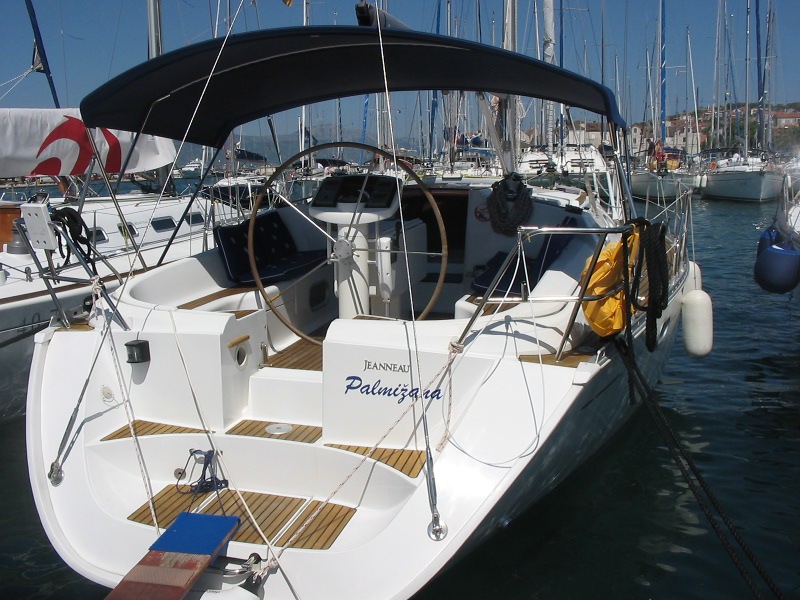 | Outside | 12 V-Anschluss, 220 V-Landanschluss, Biminitop, Bootshaken, Cockpitdusche, Cockpitlautsprecher, Cockpitpolster, Cockpittisch, Dieselkanister , elektr. Ankerwinsch, Fender, Festmacherleinen, Gangway, Kunststoff-Eimer (Pütz), Selbstholende Winschen, Solaranlage, Sprayhood, Teakdeck, Wasserschlauch, Windex |