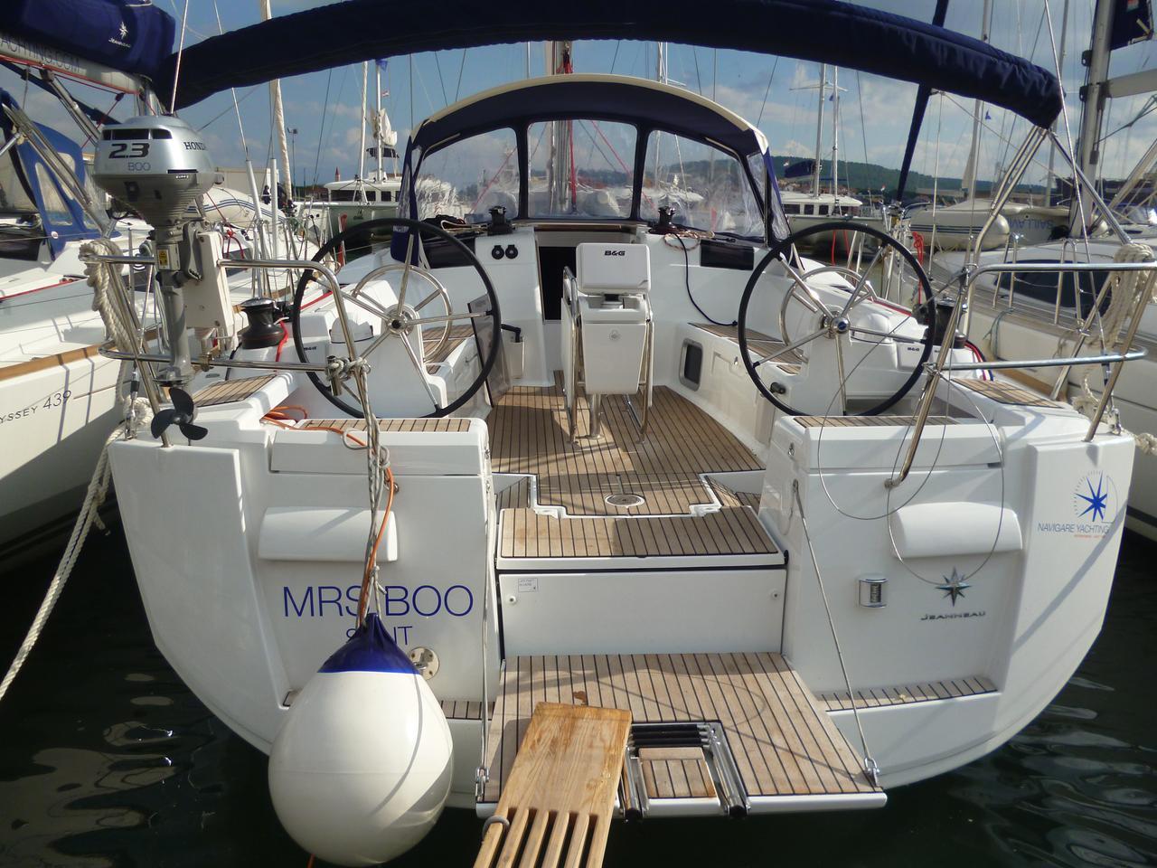 | Outside | 220 V-Landanschluss, Anker mit Kette, Badeleiter, Badeplattform, Biminitop, Cockpitdusche, Cockpitlautsprecher, Cockpitpolster, Cockpittisch, elektr. Ankerwinsch, Sprayhood, Teak im Cockpit, Winschen |