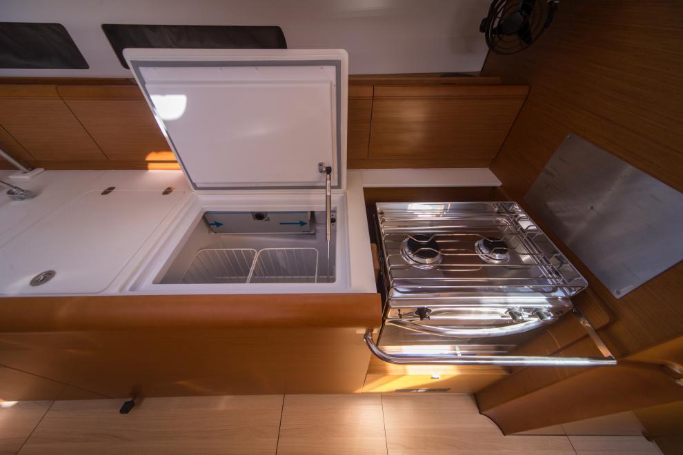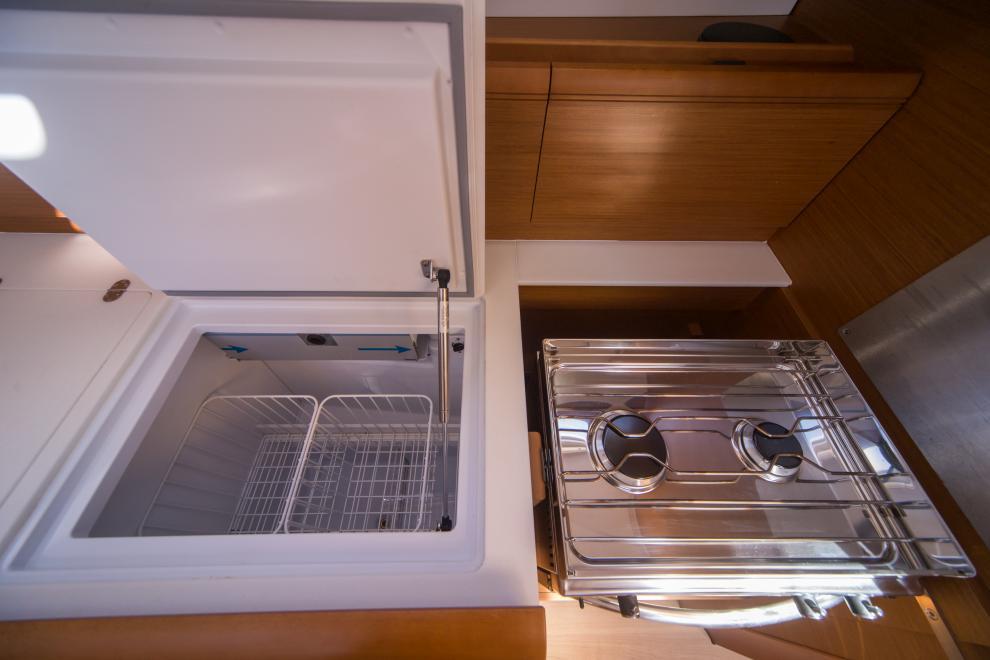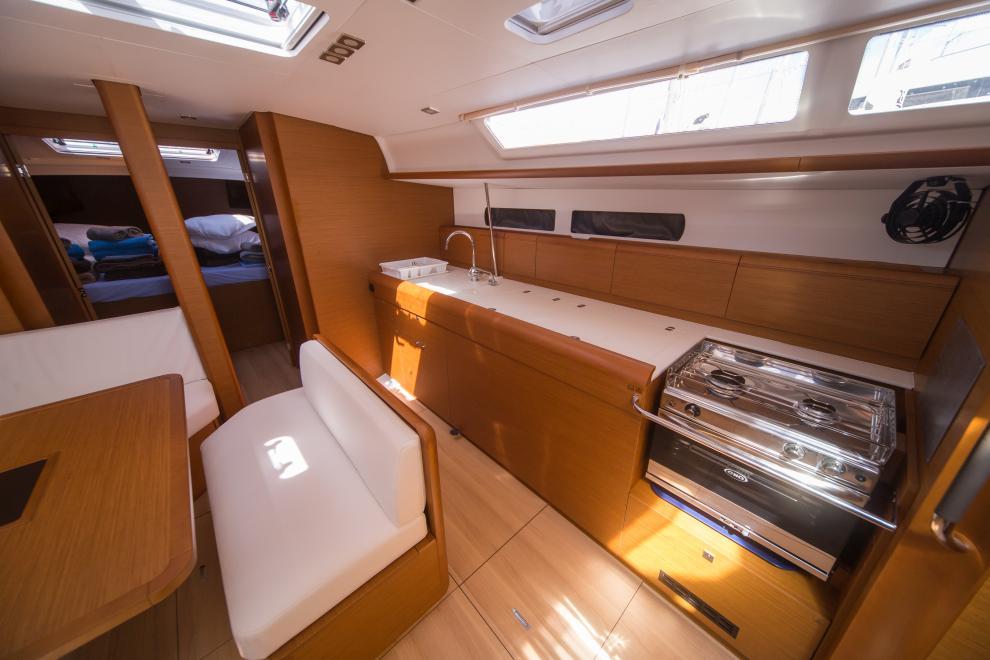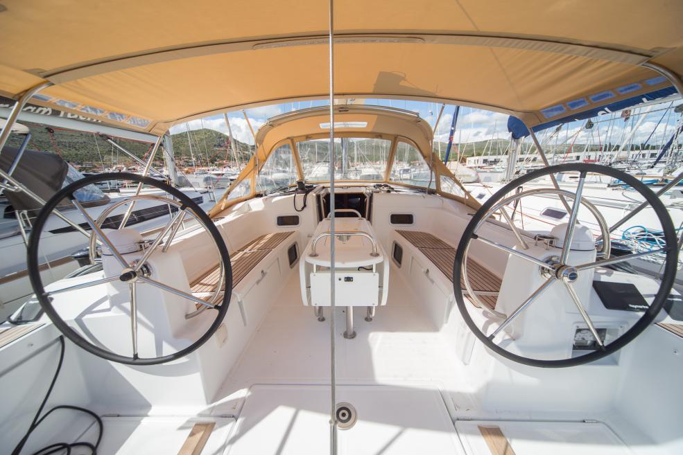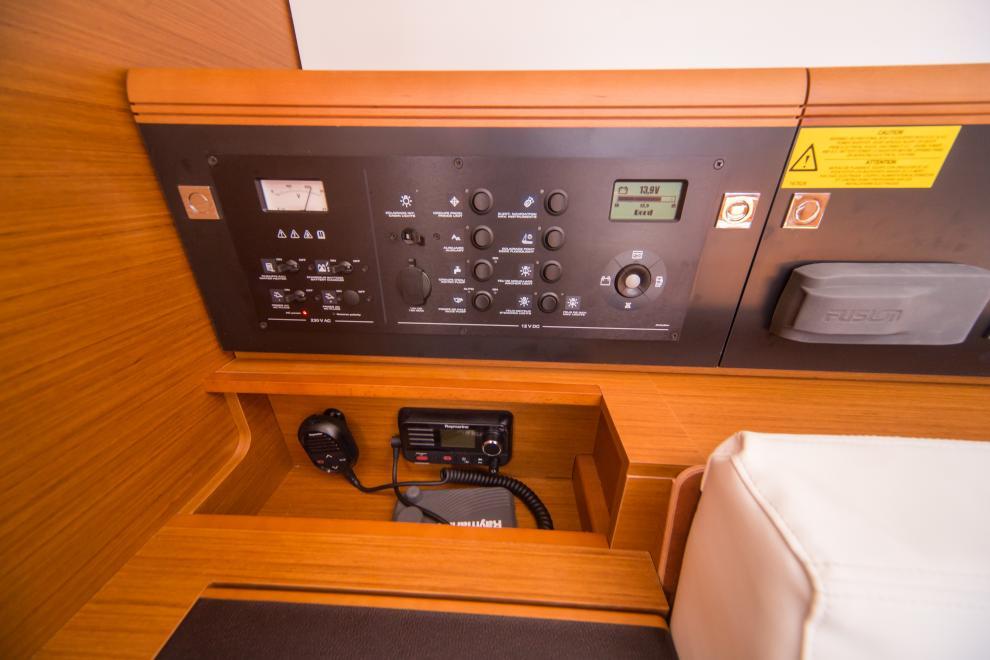 | Outside | Badeleiter, Biminitop, Cockpitdusche, Cockpitlautsprecher, Cockpitpolster, Cockpittisch, elektr. Ankerwinsch, Sprayhood |