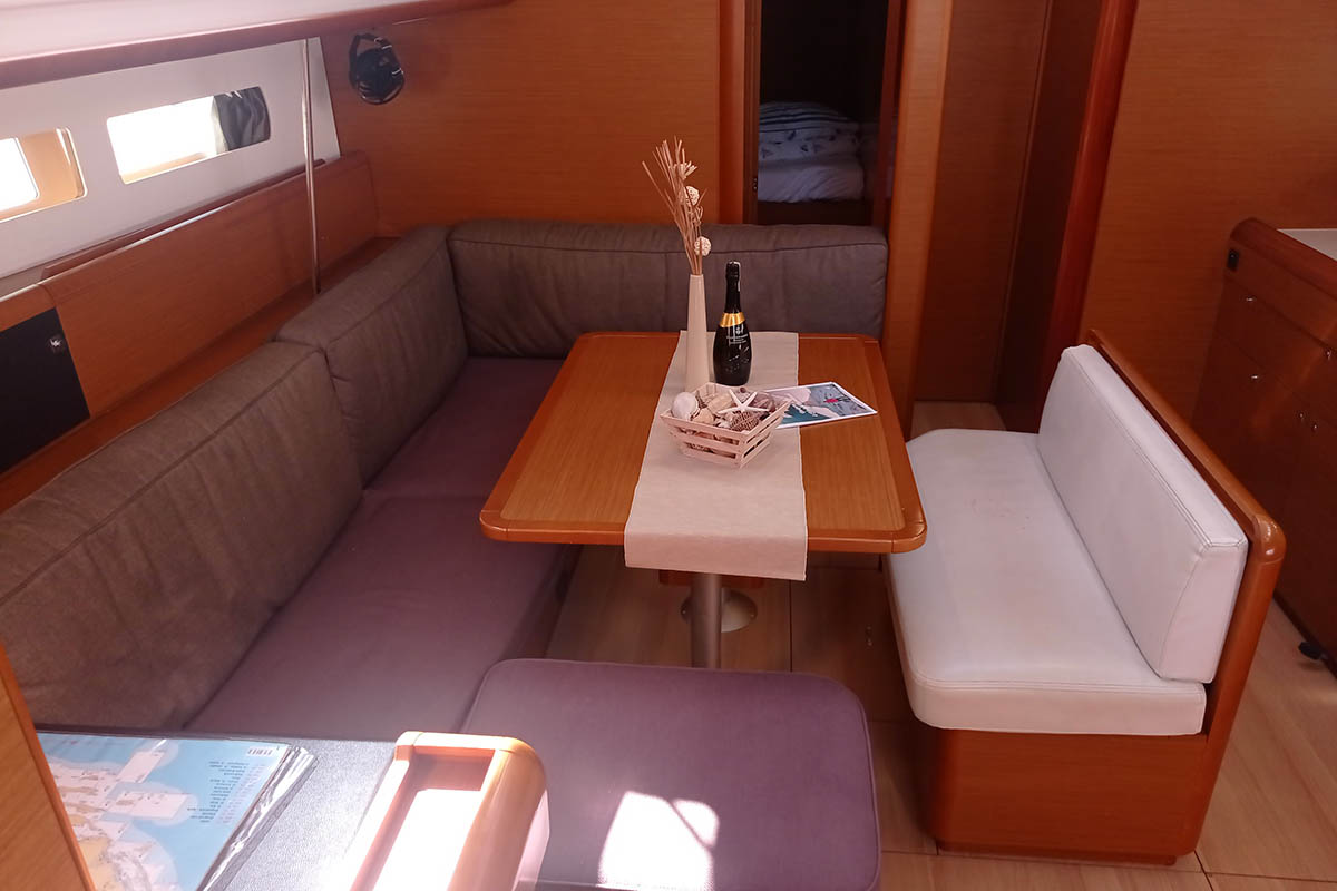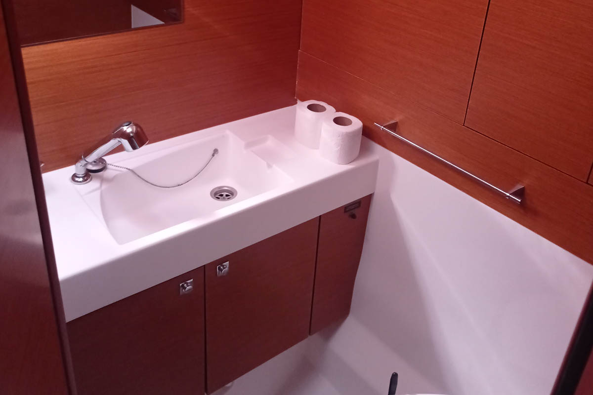 | Outside | 220 V-Landanschluss, Anker mit Kette, Badeleiter, Badeplattform, Biminitop, Cockpitdusche, Cockpitlautsprecher, Cockpitpolster, Cockpittisch, elektr. Ankerwinsch, Sprayhood, Teak im Cockpit, Winschen |