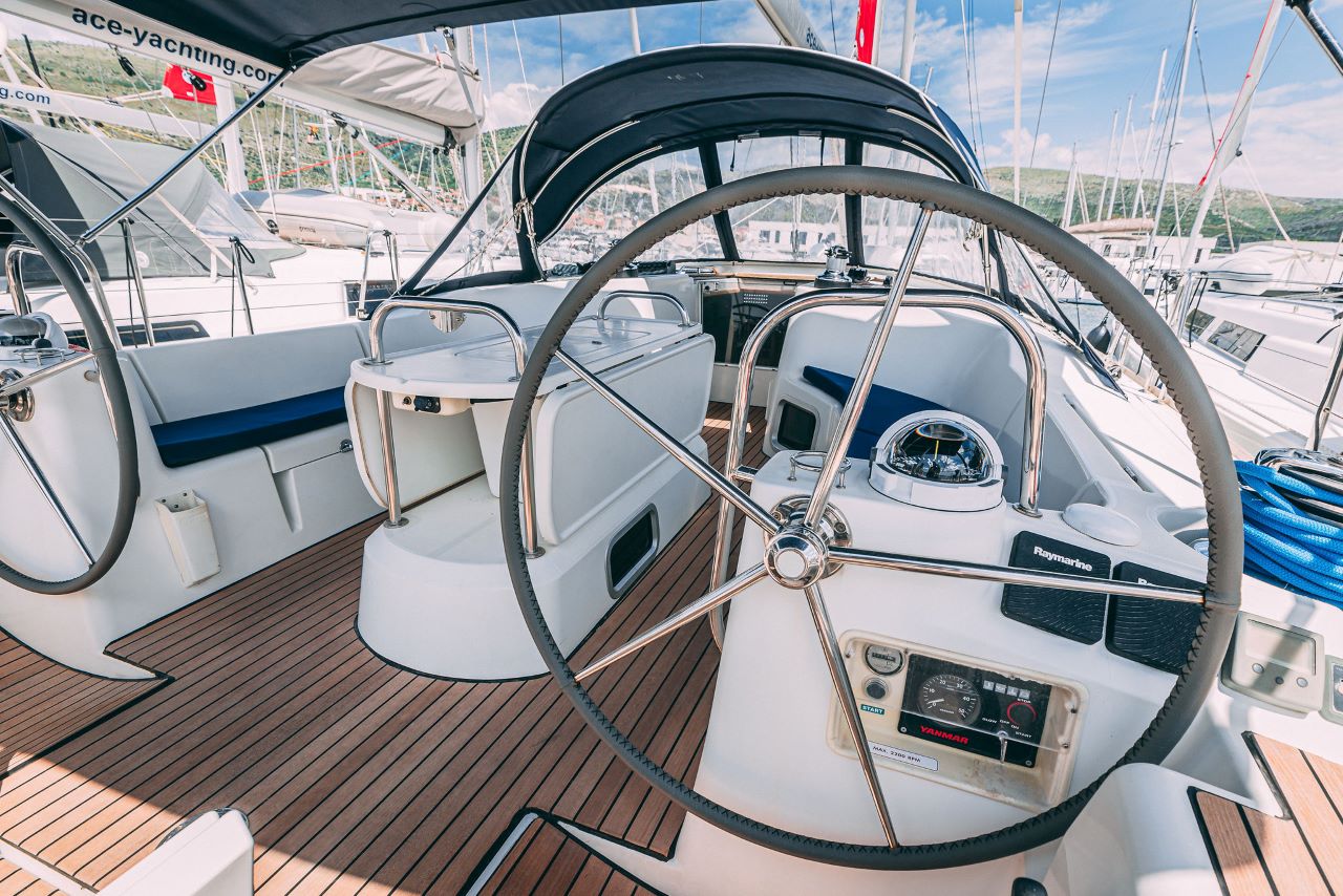 | Outside | 12 V-Anschluss, 220 V-Landanschluss, Anker mit Kette, Badeleiter, Biminitop, Cockpitdusche, Cockpitlautsprecher, Cockpitpolster, Cockpittisch, elektr. Ankerwinsch, Fender, Festmacherleinen, Sprayhood, Teak im Cockpit, Windex |