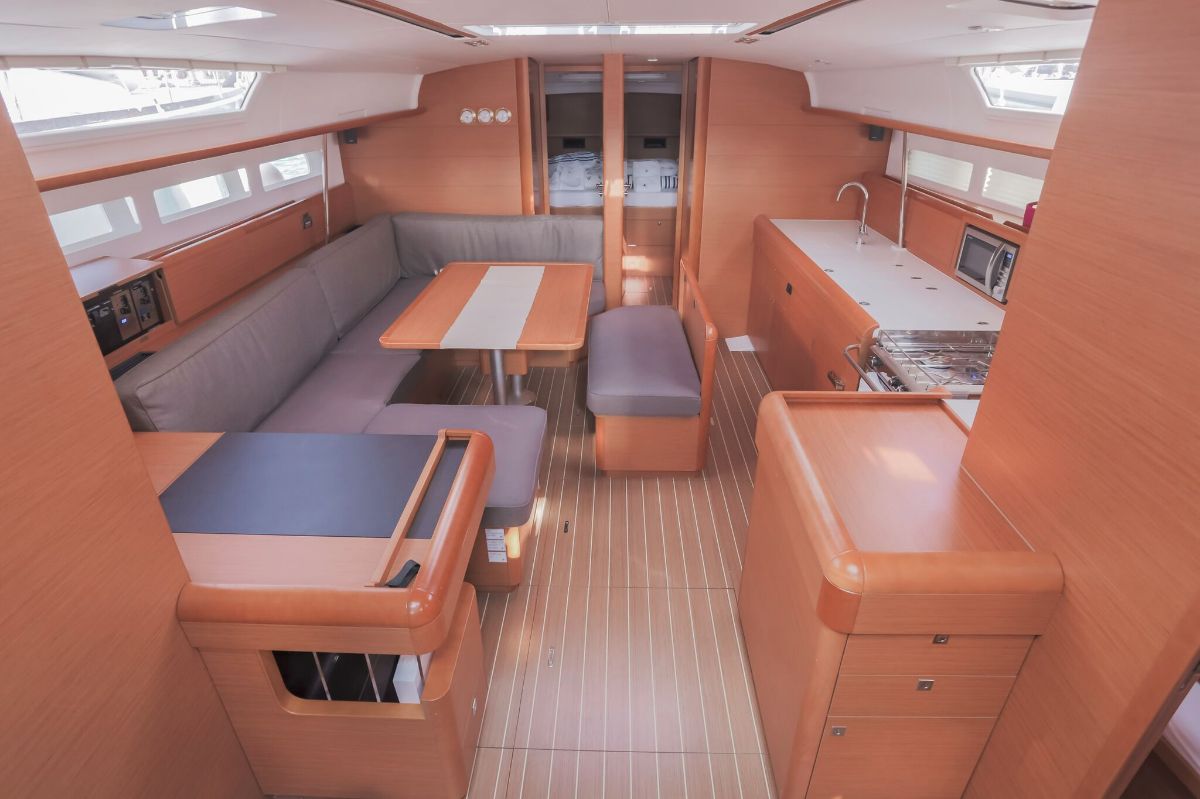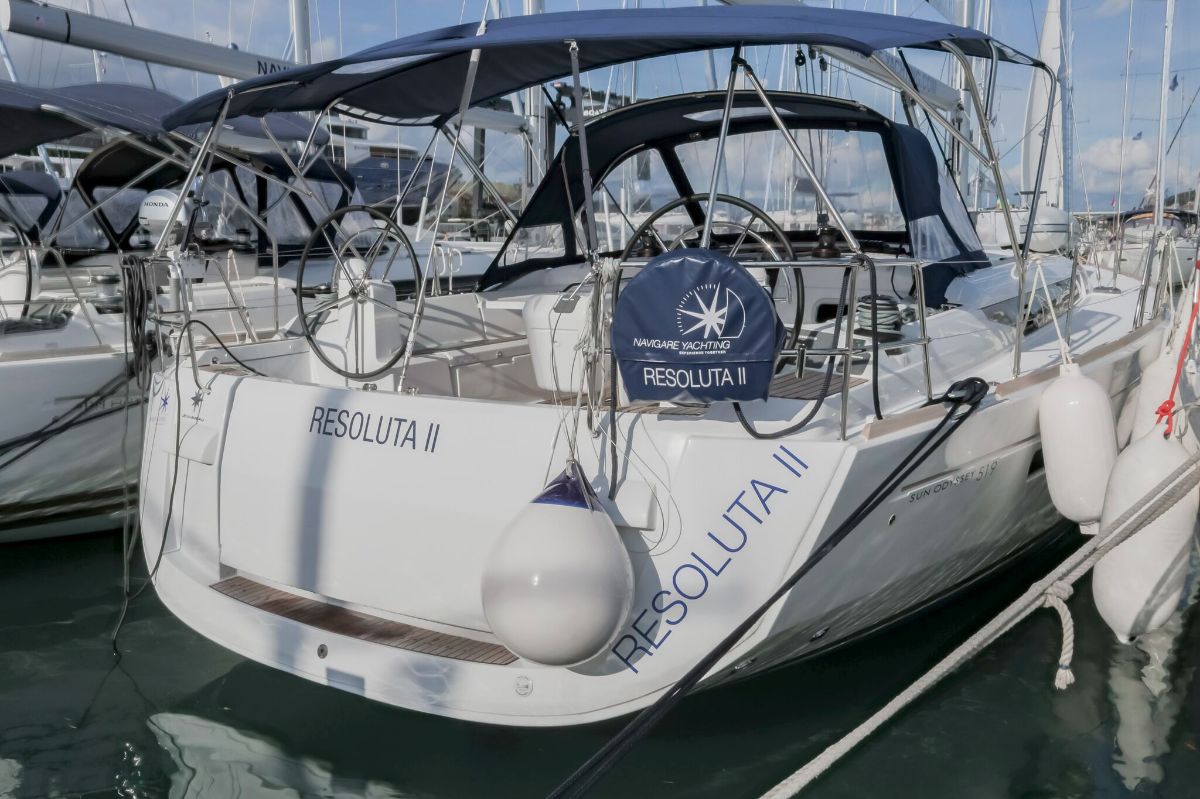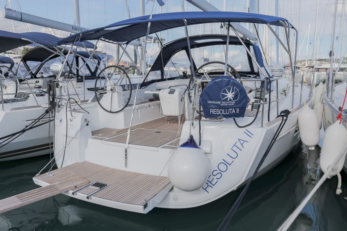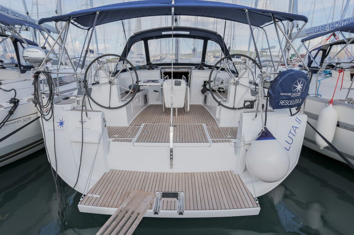 | Outside | 220 V-Landanschluss, Anker mit Kette, Badeleiter, Badeplattform, Biminitop, Cockpitdusche, Cockpitlautsprecher, Cockpitpolster, Cockpittisch, elektr. Ankerwinsch, Sprayhood, Teak im Cockpit, Winschen |