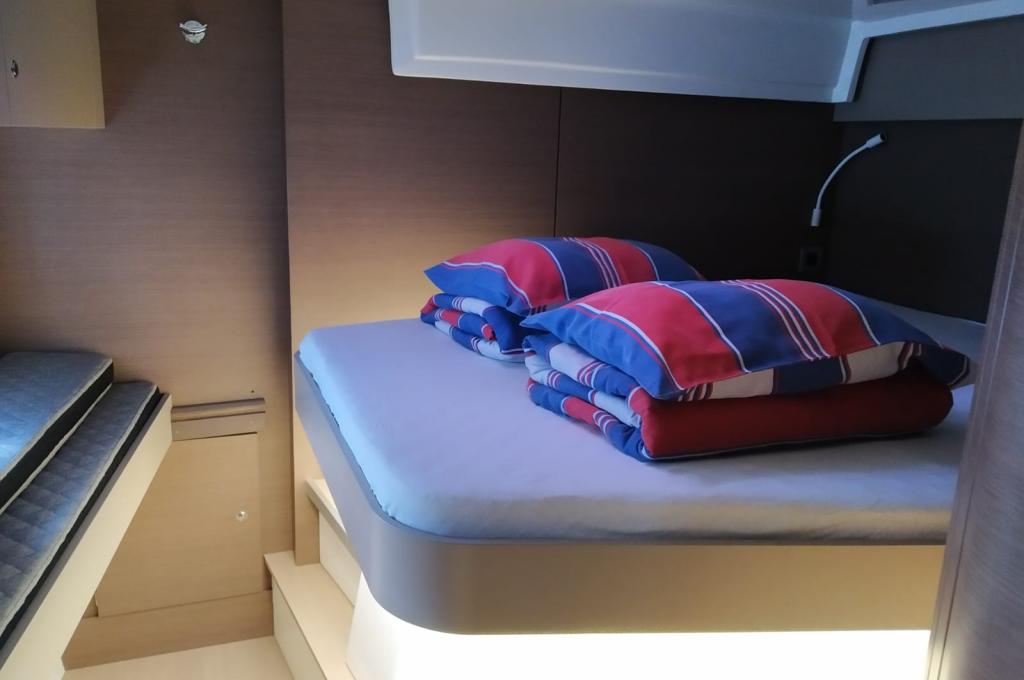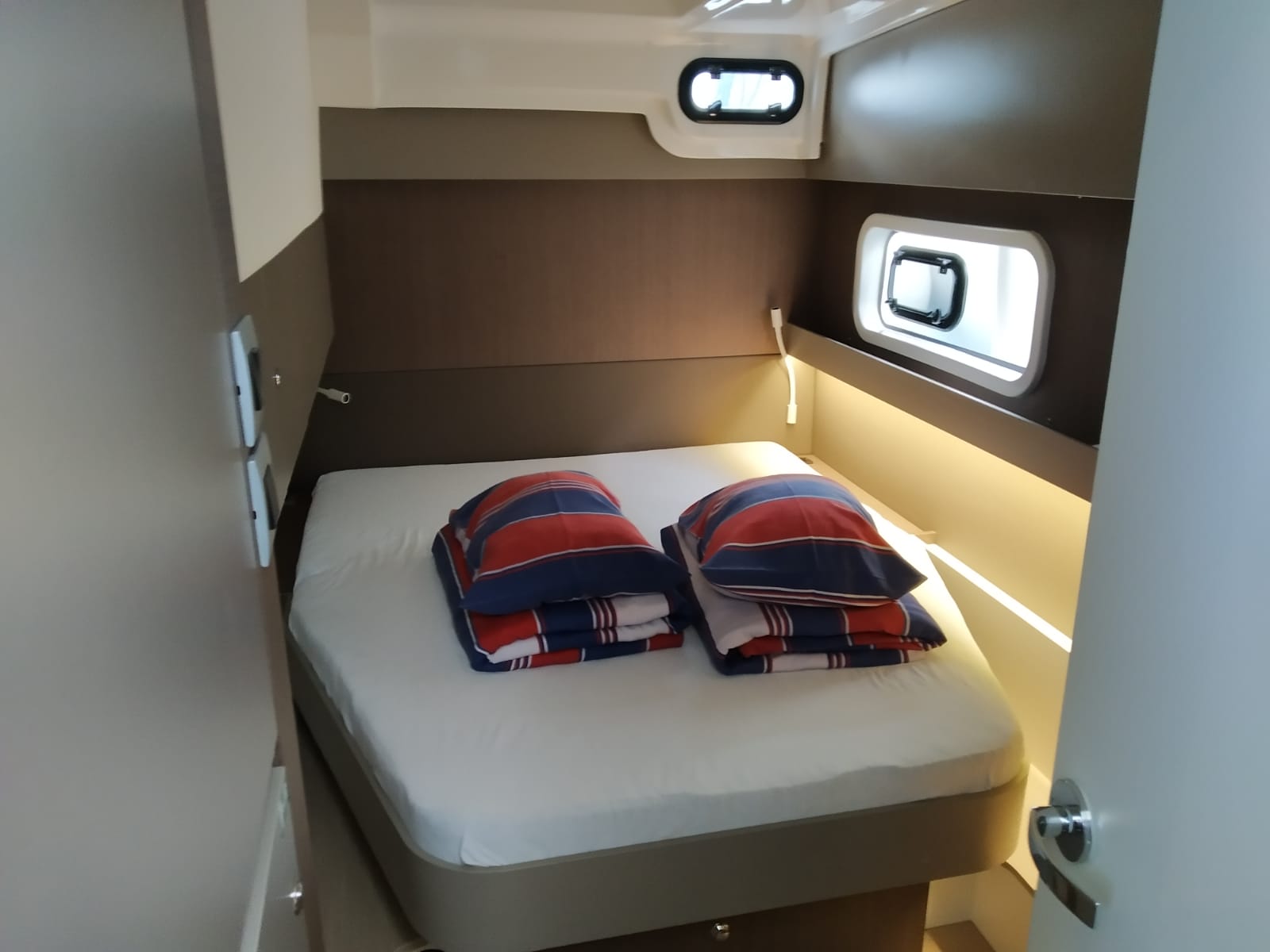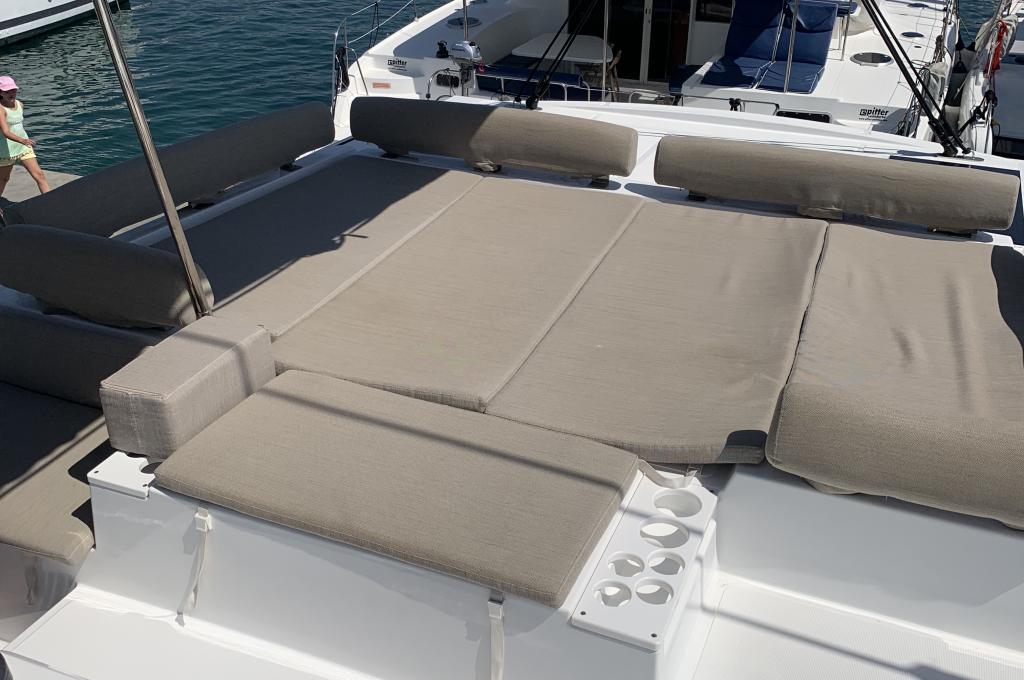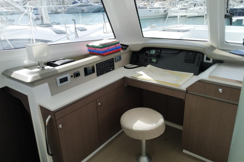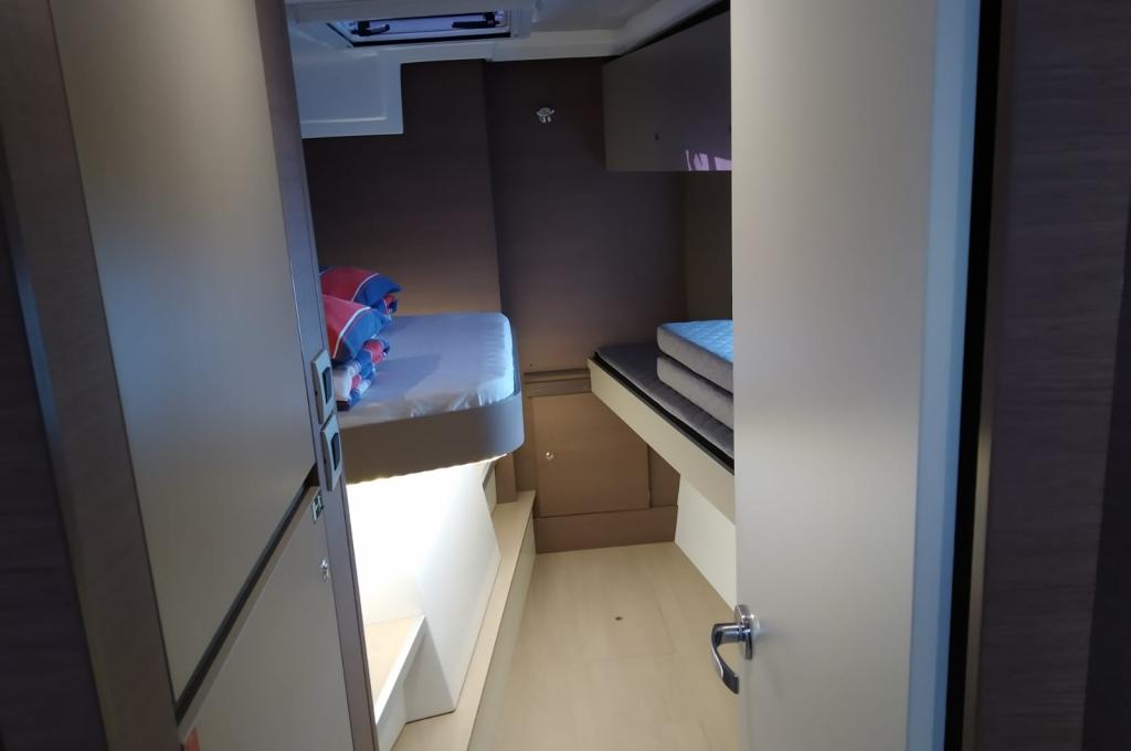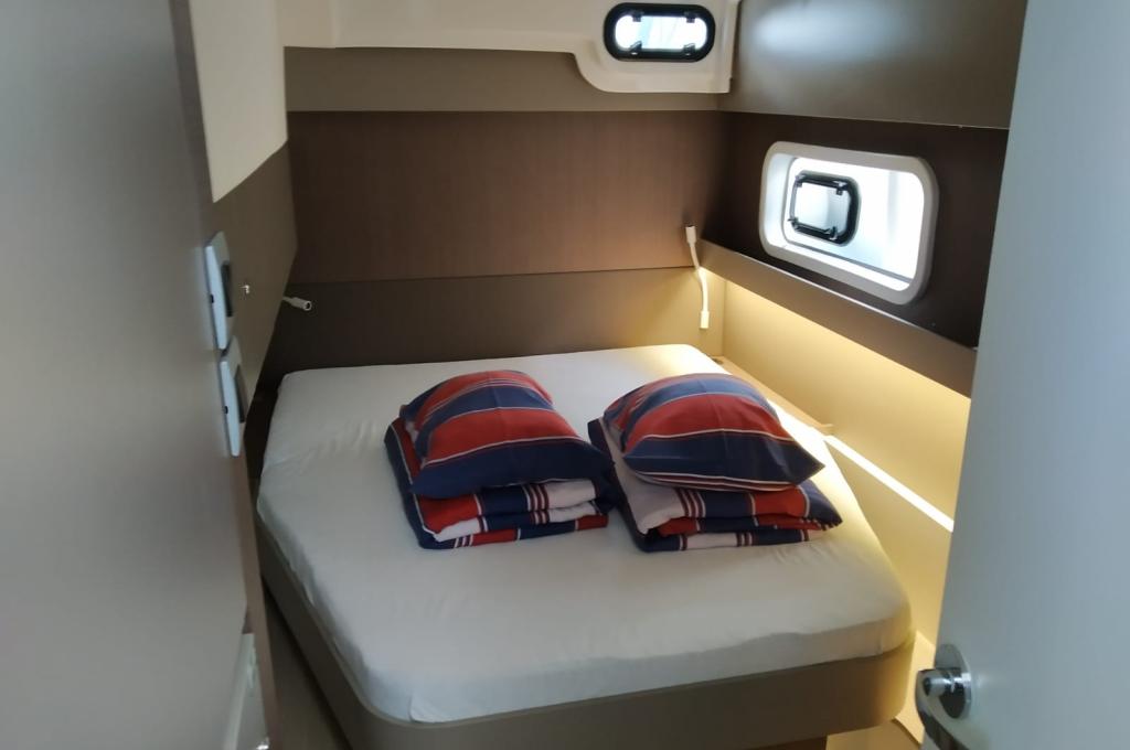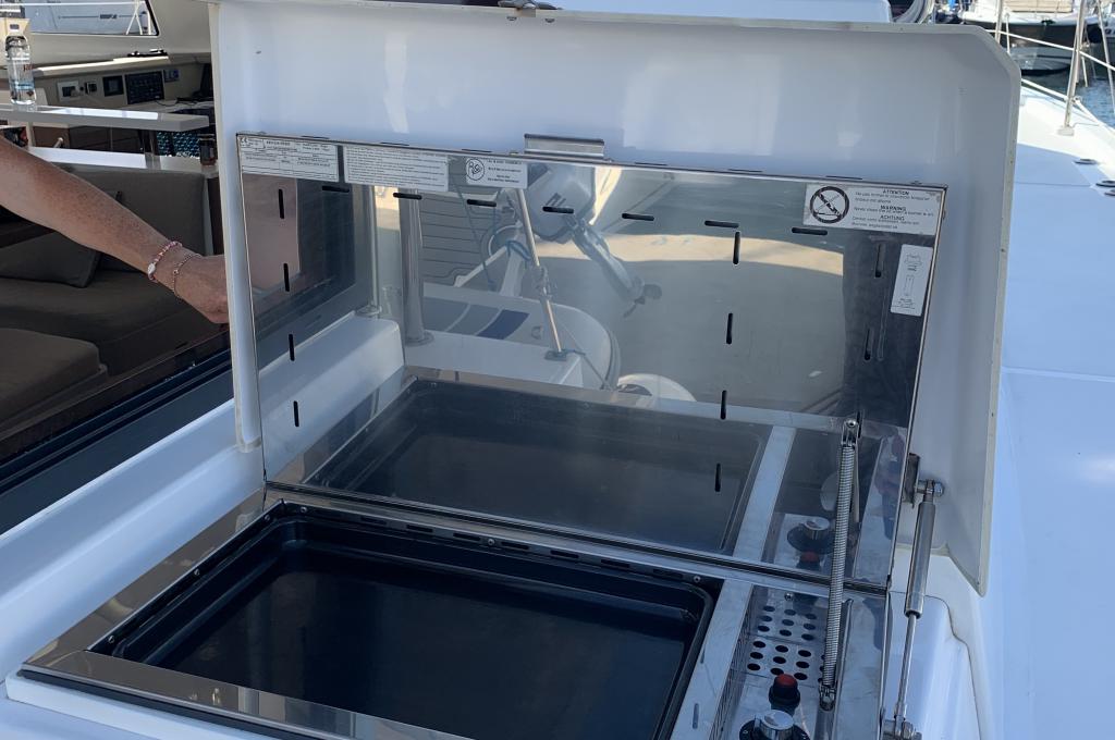 | Inside | 220V Steckdosen, Backofen, Fäkalientank, FUSION Sound System, Gasherd, Gefrierschrank, Heizung, Inverter 12V/220V, Klimaanlage (Landstrom), Kühlschrank, Ladegerät, Mokkakanne, Pantryausstattung, Radio mit Bluetooth, Spülbecken, USB Steckdosen in den Kabinen, Ventilatoren in Kabinen, Wasserkocher |