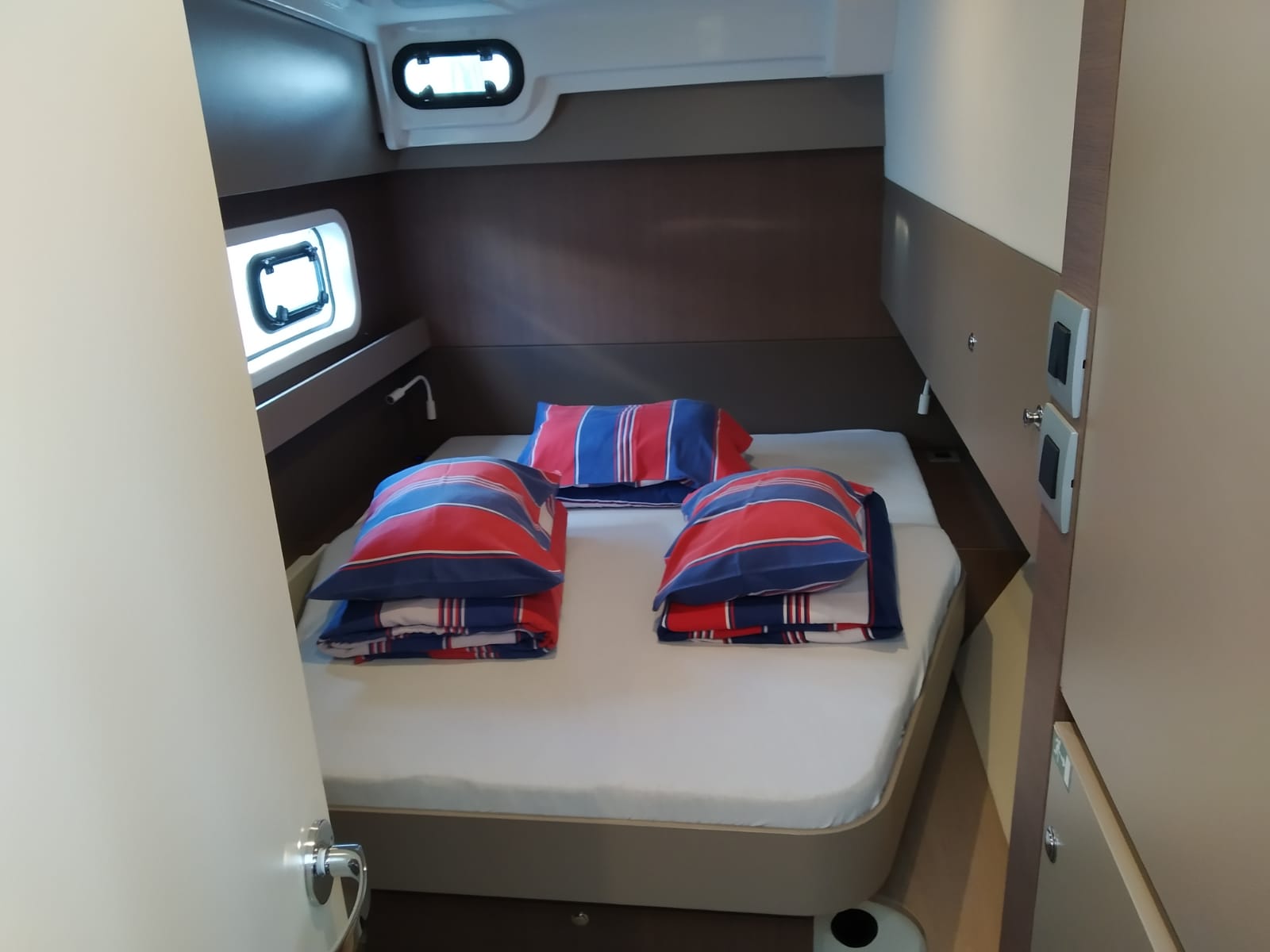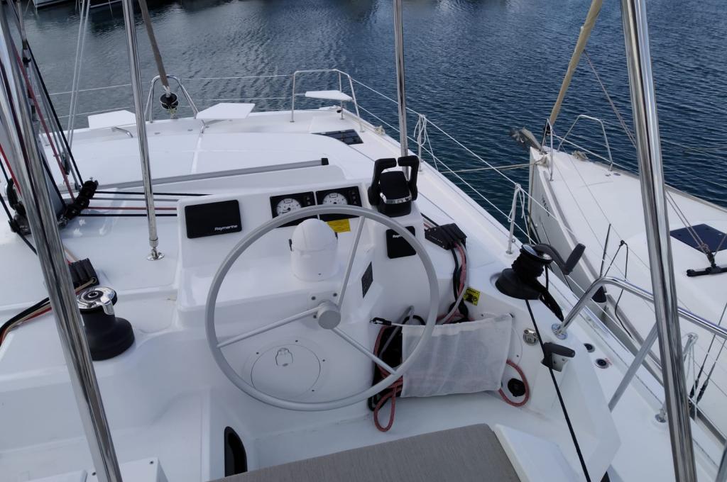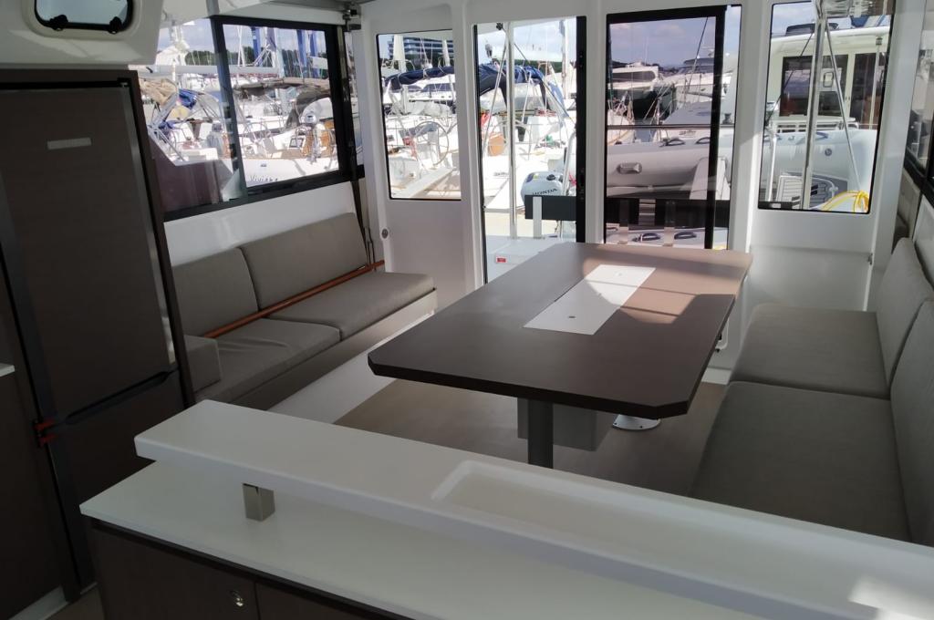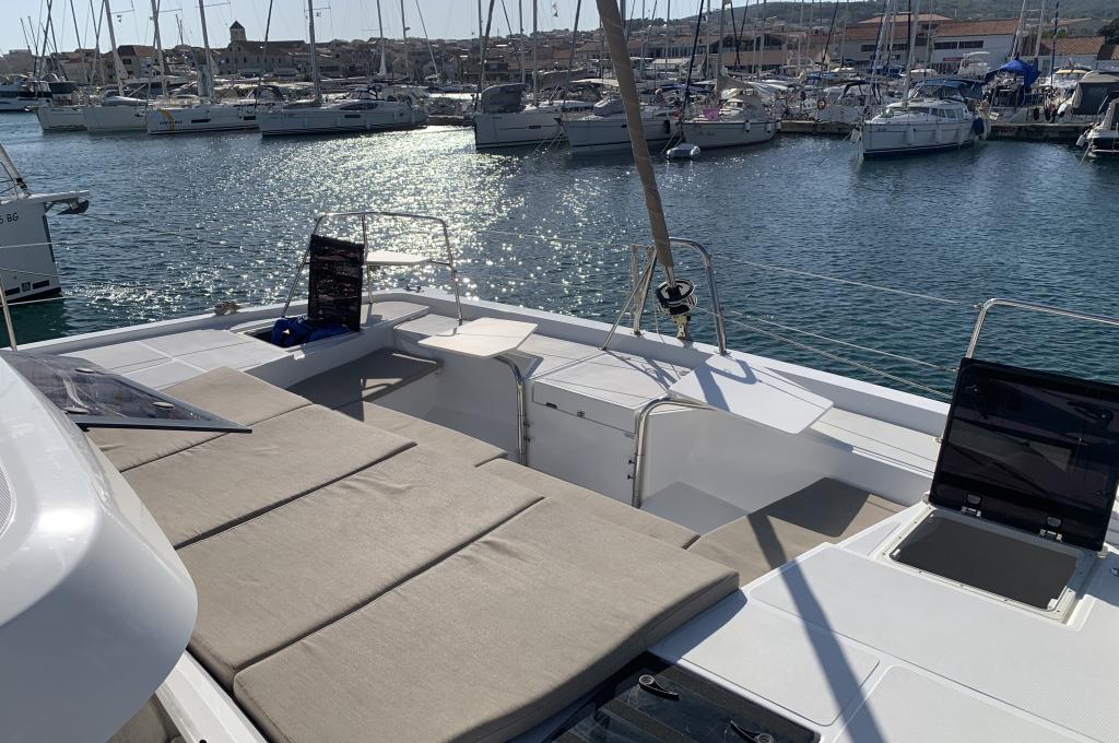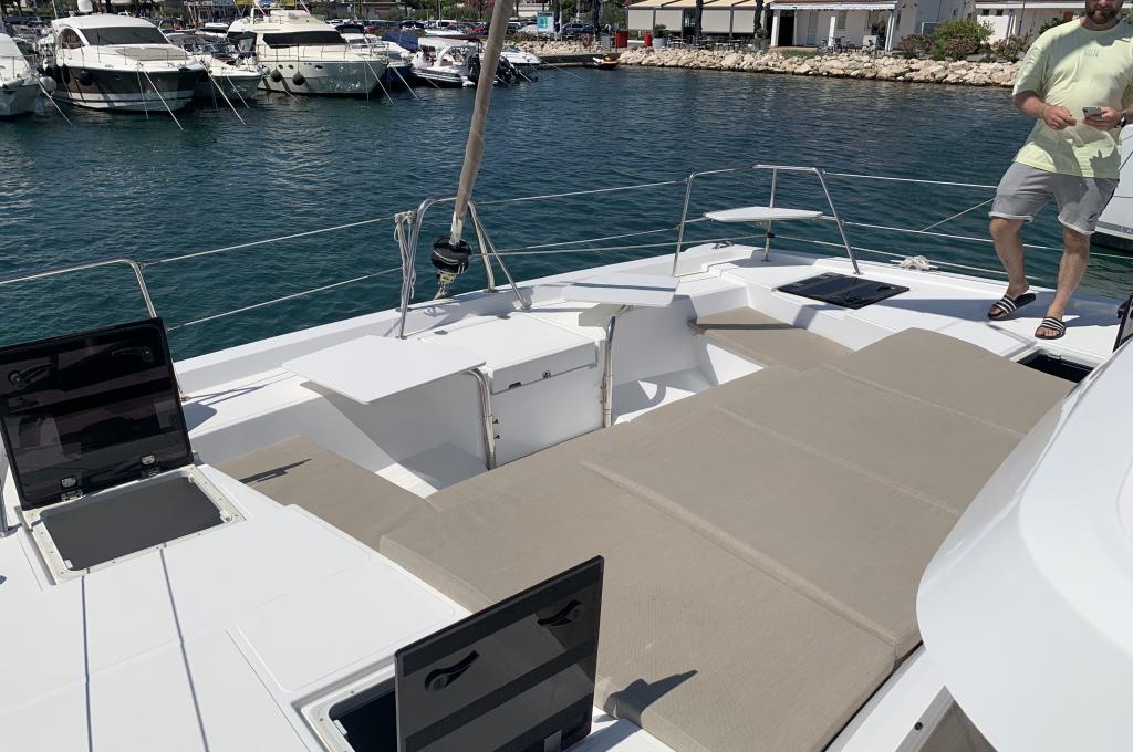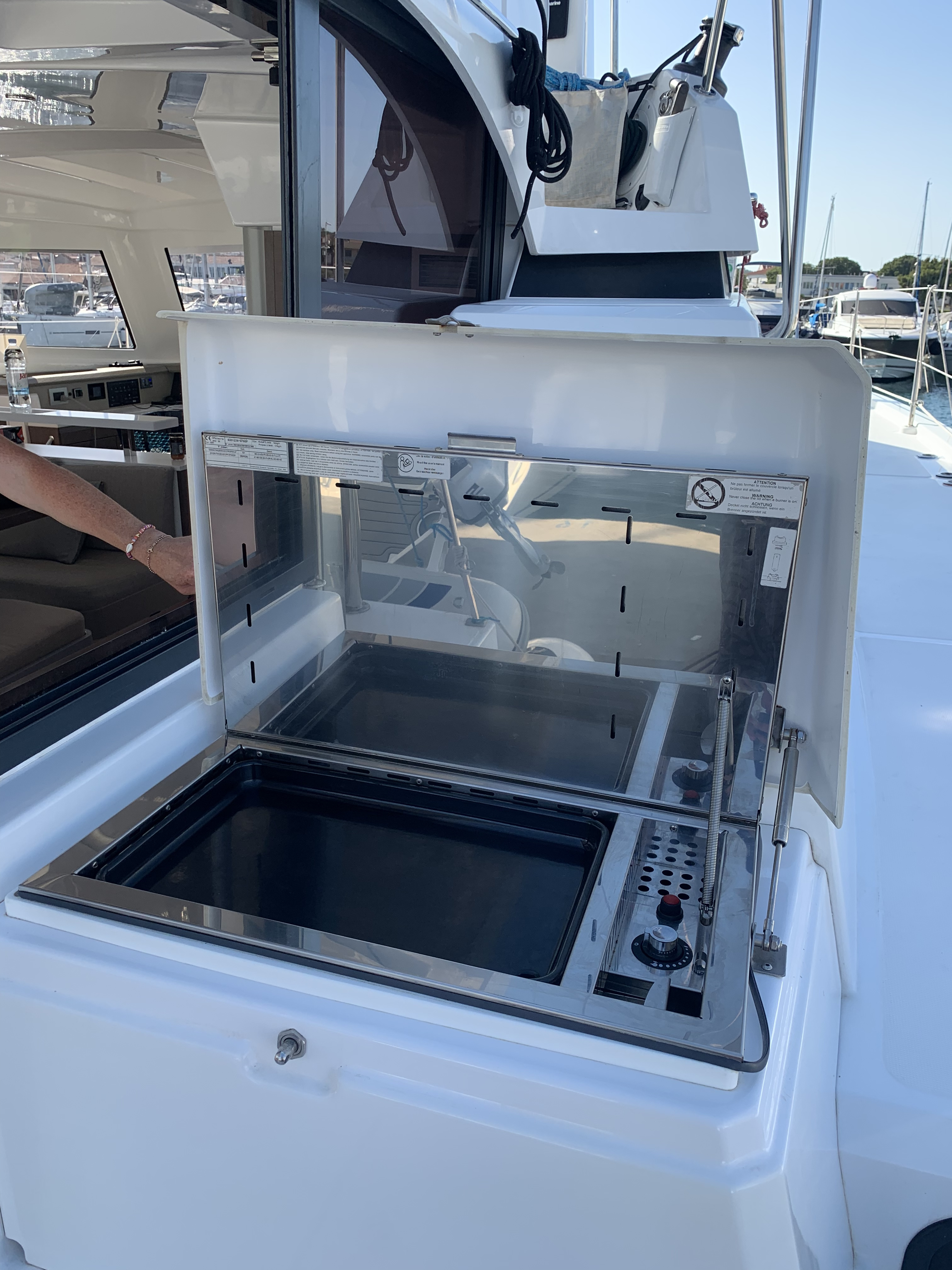 | Inside | 220V Steckdosen, Backofen, Fäkalientank, FUSION Sound System, Gasherd, Gefrierschrank, Heizung, Inverter 12V/220V, Klimaanlage (Landstrom), Kühlschrank, Ladegerät, Mokkakanne, Pantryausstattung, Radio mit Bluetooth, Spülbecken, USB Steckdosen in den Kabinen, Ventilatoren in Kabinen, Wasserkocher |