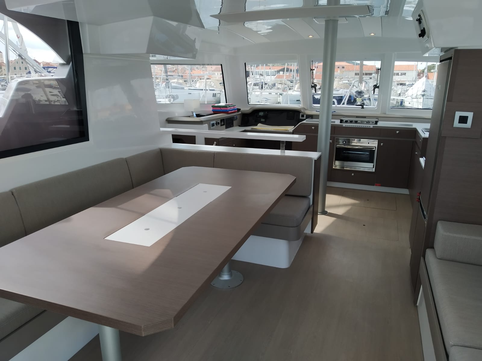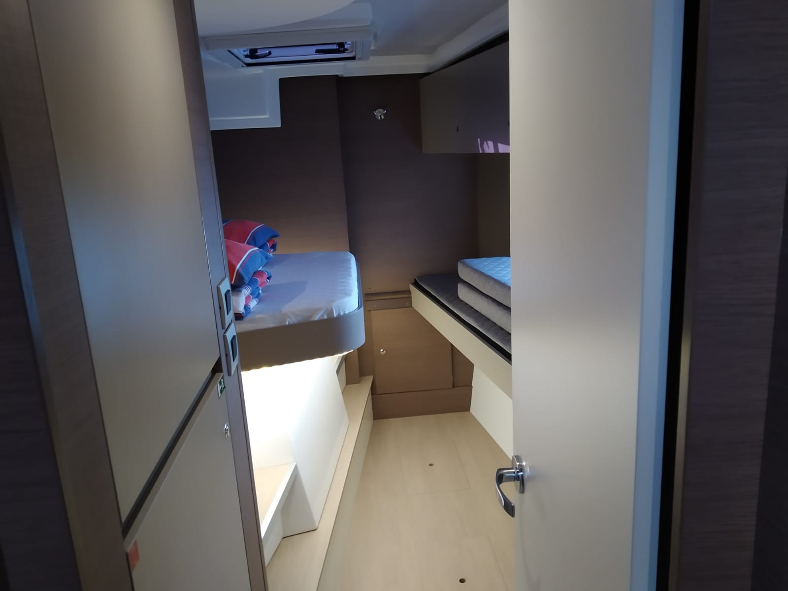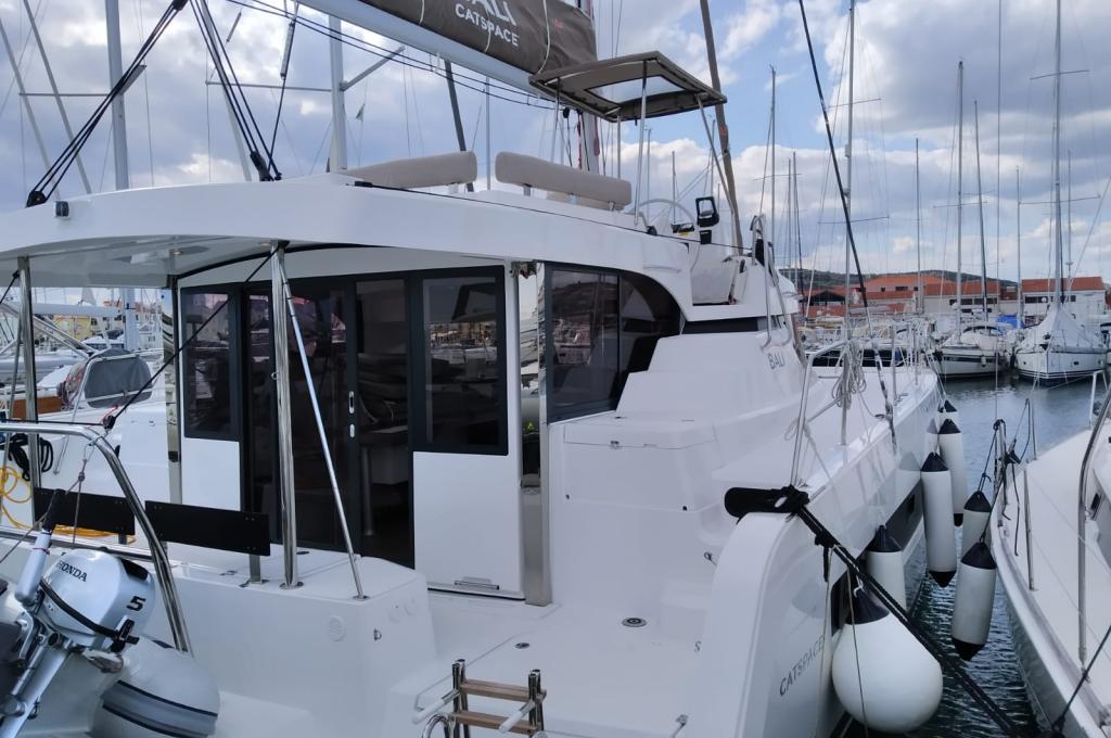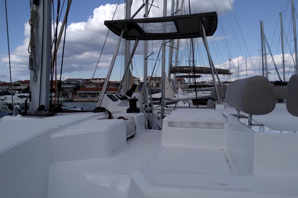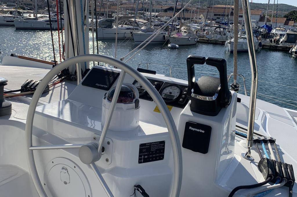 | Inside | 220V Steckdosen, Backofen, Fäkalientank, FUSION Sound System, Gasherd, Gefrierschrank, Heizung, Inverter 12V/220V, Klimaanlage (Landstrom), Kühlschrank, Ladegerät, Mokkakanne, Pantryausstattung, Radio mit Bluetooth, Spülbecken, USB Steckdosen in den Kabinen, Ventilatoren in Kabinen, Wasserkocher |