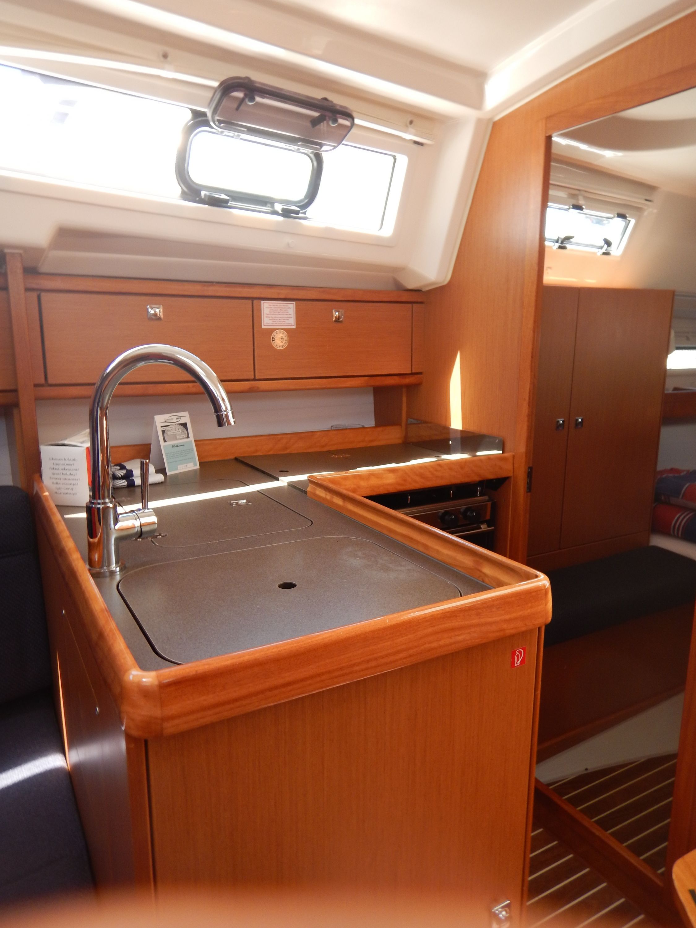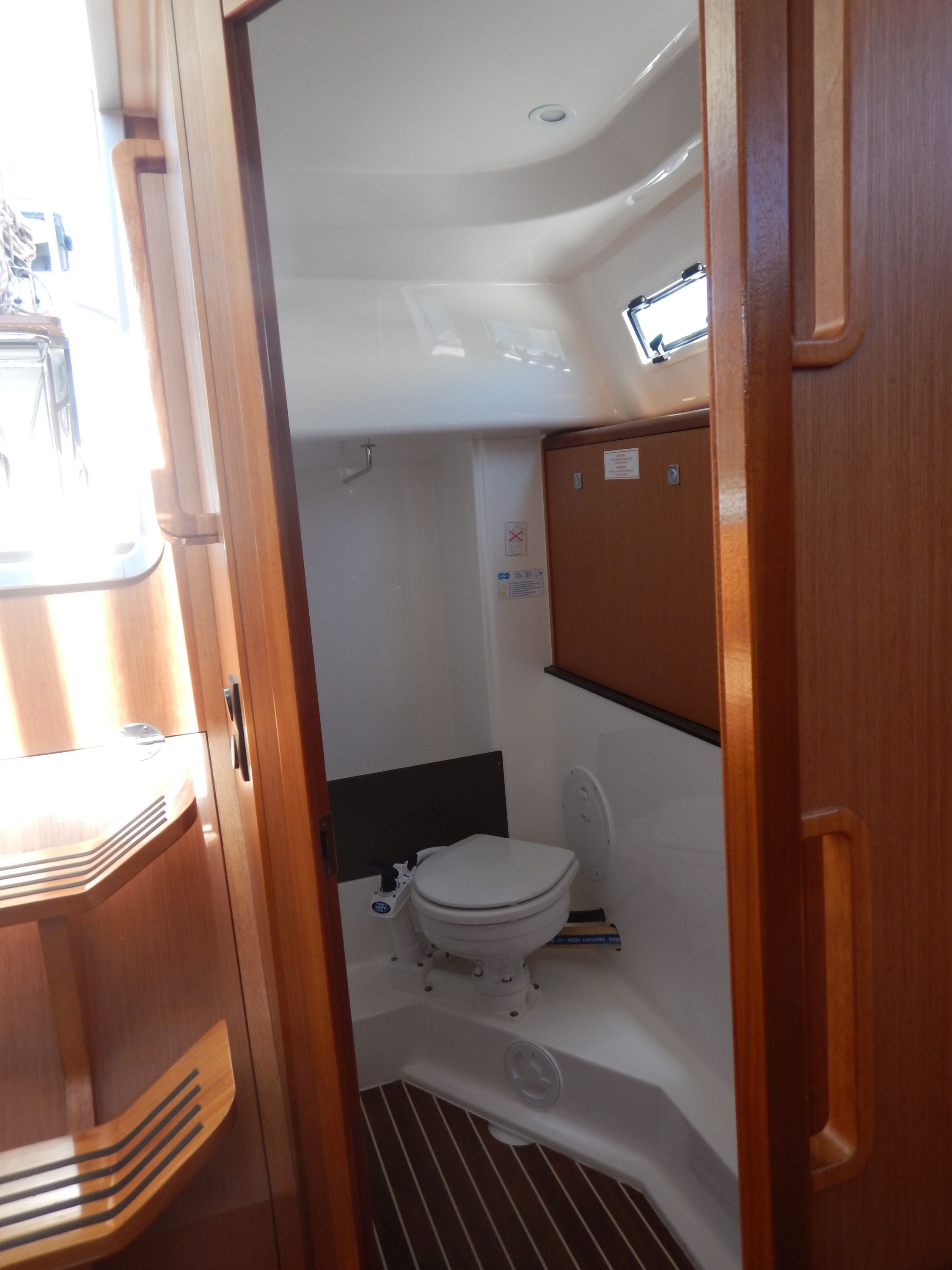 | Outside | 220 V-Landanschluss, Anker mit Kette, Badeplattform, Biminitop, Cockpitdusche, Cockpitlautsprecher, Cockpitpolster, Cockpittisch, elektr. Ankerwinsch, Fender, Gangway, Kugelfender, Sprayhood, Teak auf Badeplattform, Teak im Cockpit, Winschen |
