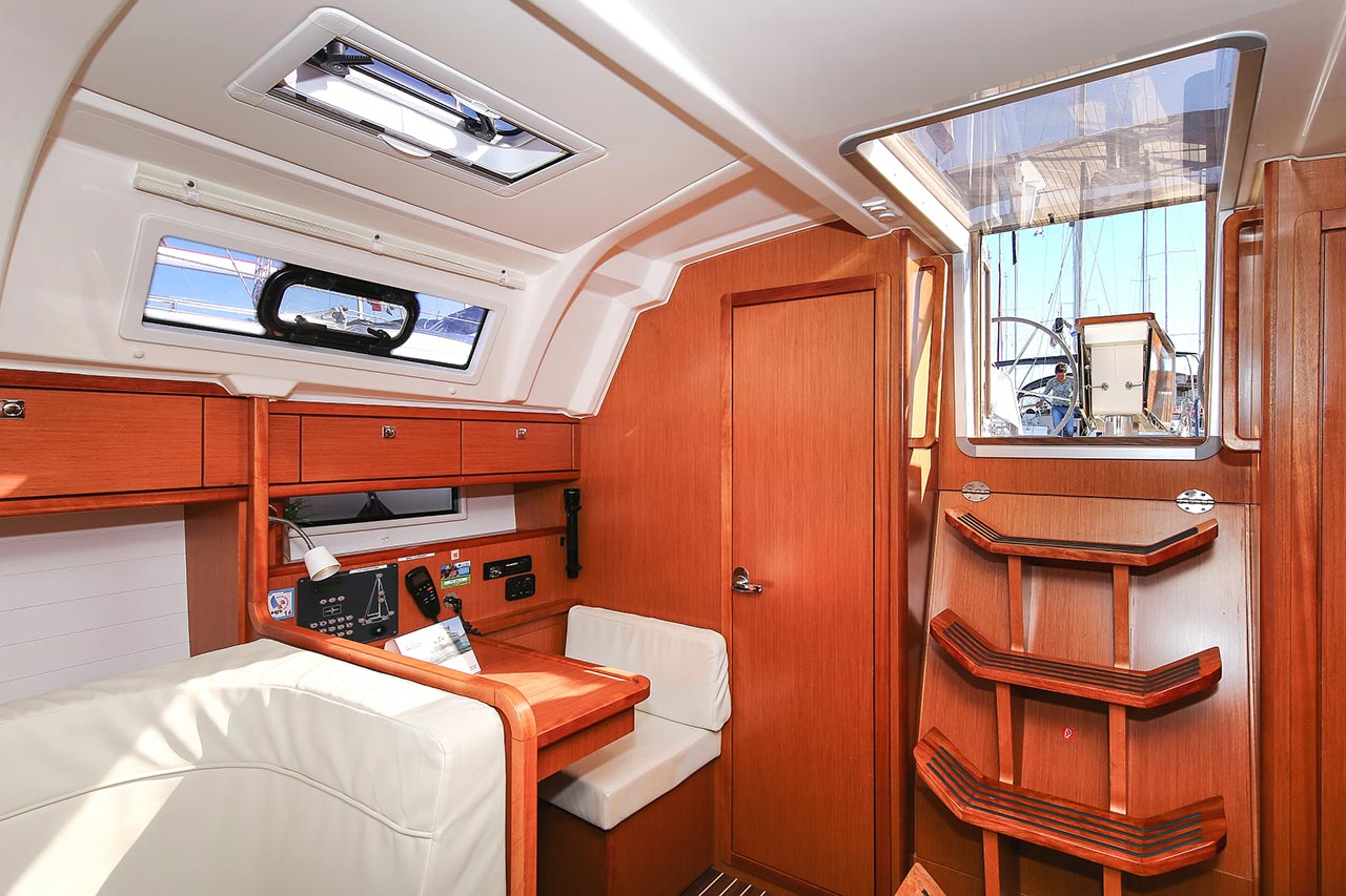 | Navigation | Barometer, Fernglas, Fernglas mit Peilkompass, GPS mit Kartenplotter im Cockpit, Hafenhandbücher, Navigationsbesteck, Radar, Seekarten, Tridata (Log, Echolot, Windm.) |