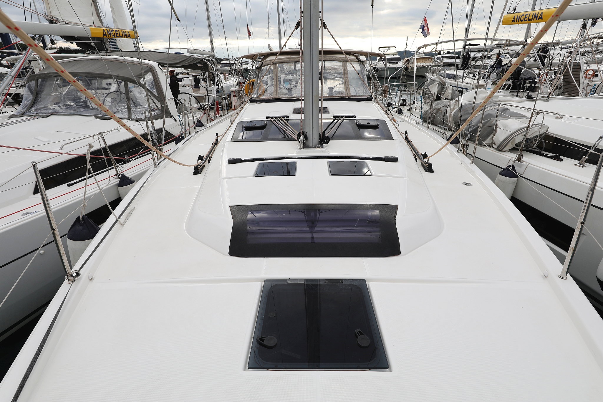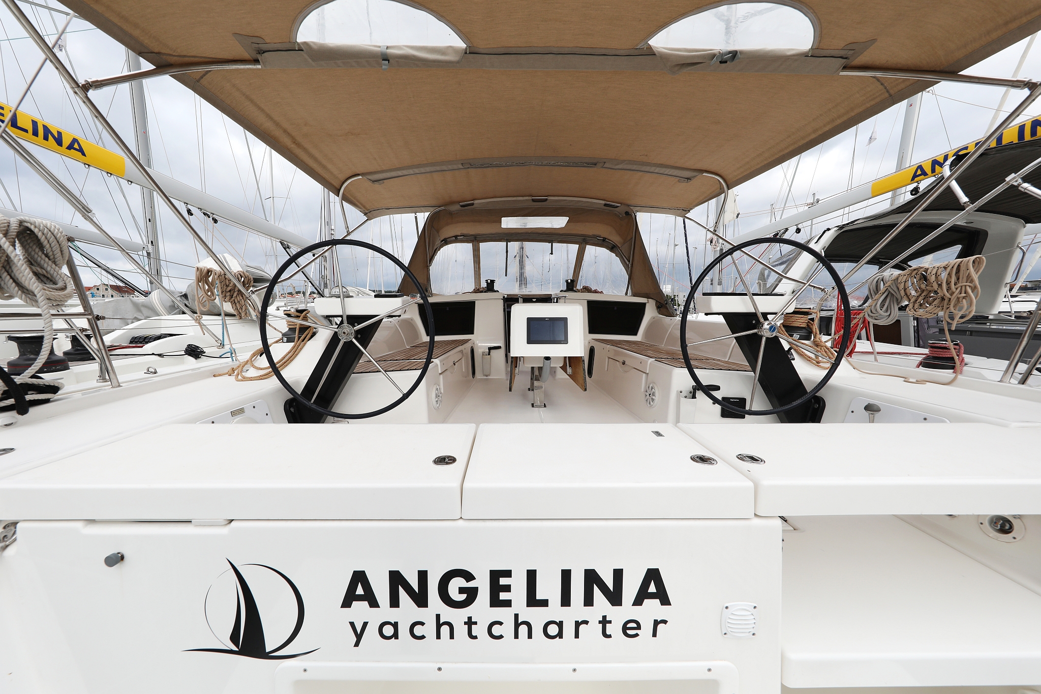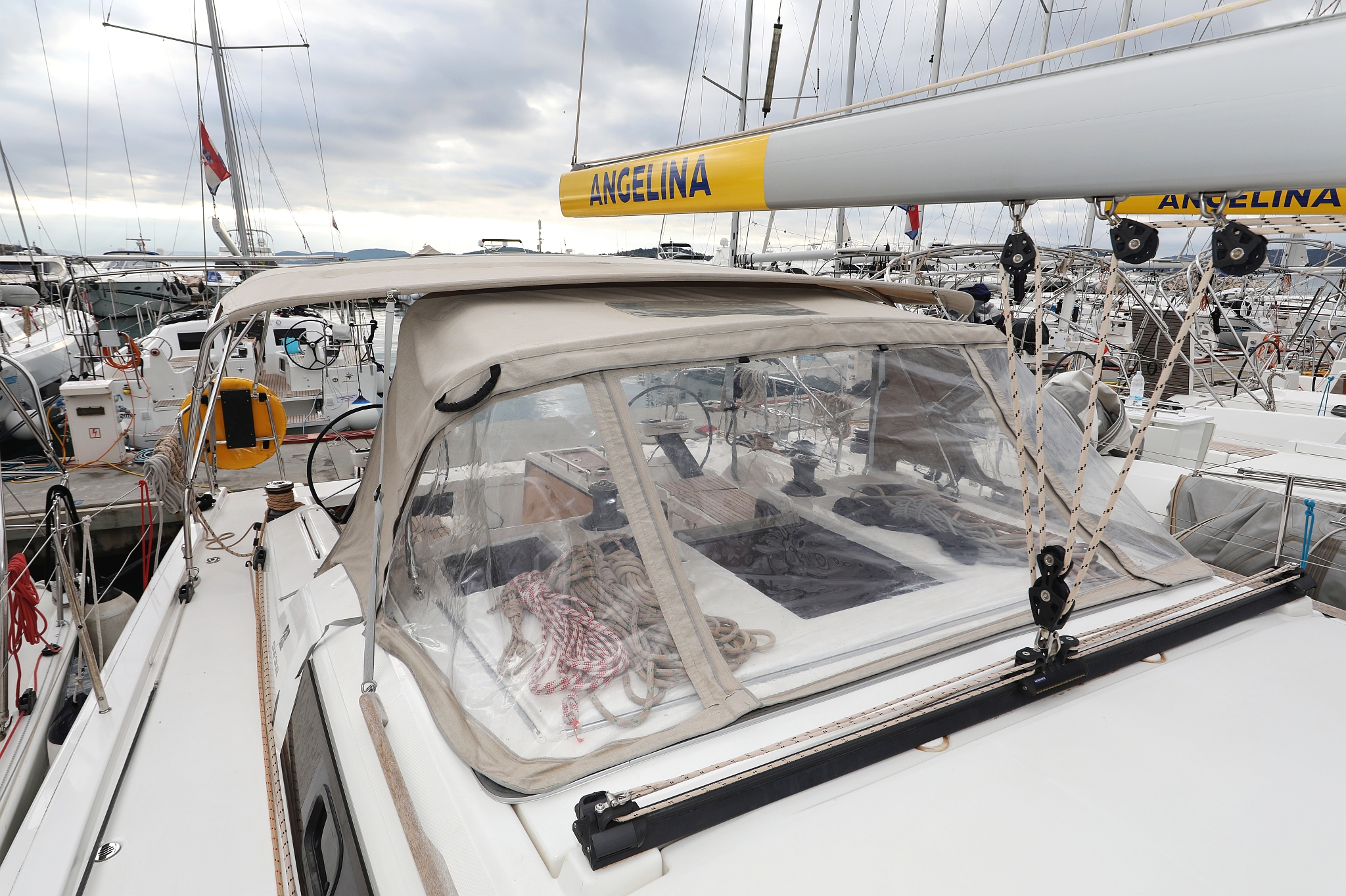 | Outside | 220 V-Landanschluss, Badeplattform, Biminitop, Bootshaken, Cockpitdusche, Cockpitlautsprecher, Cockpitpolster, Cockpittisch, Delta-Anker, elektr. Ankerwinsch, Fender, Festmacherleinen, Gangway, Grill, Sprayhood, Wasserschlauch, Winschen |