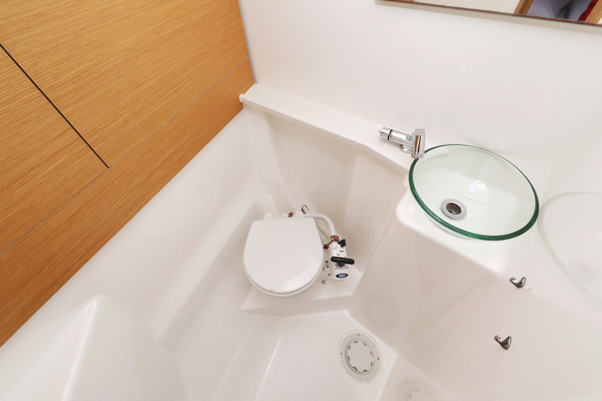 Outside 220 V-Landanschluss, Anker mit Kette, Badeplattform, Biminitop, Bootshaken, Cockpitdusche, Cockpitkühlschrank, Cockpitlautsprecher, Cockpitpolster, Cockpittisch, elektr. Ankerwinsch, Fender, Festmacherleinen, Gangway, Grill, Kugelfender, Solaranlage, Sprayhood, Spülbecken im Cockpit, Teak im Cockpit, Wasserschlauch, Winschen