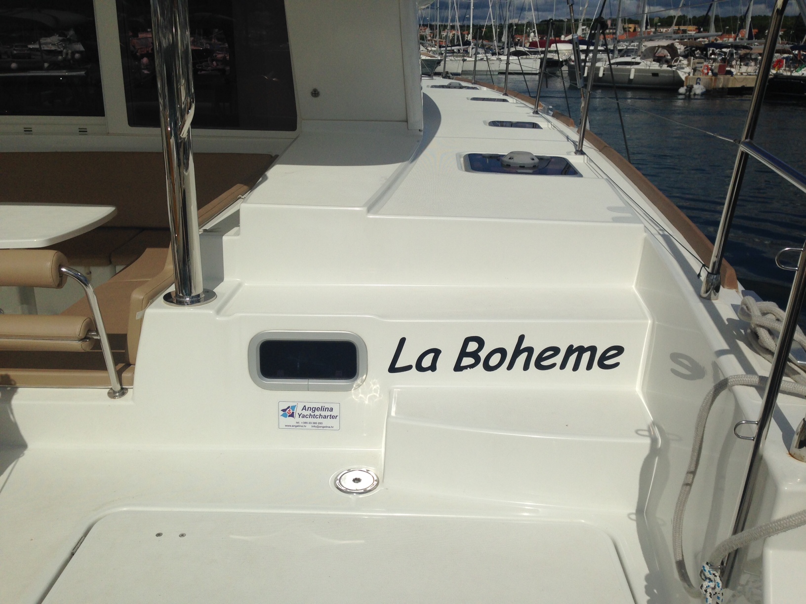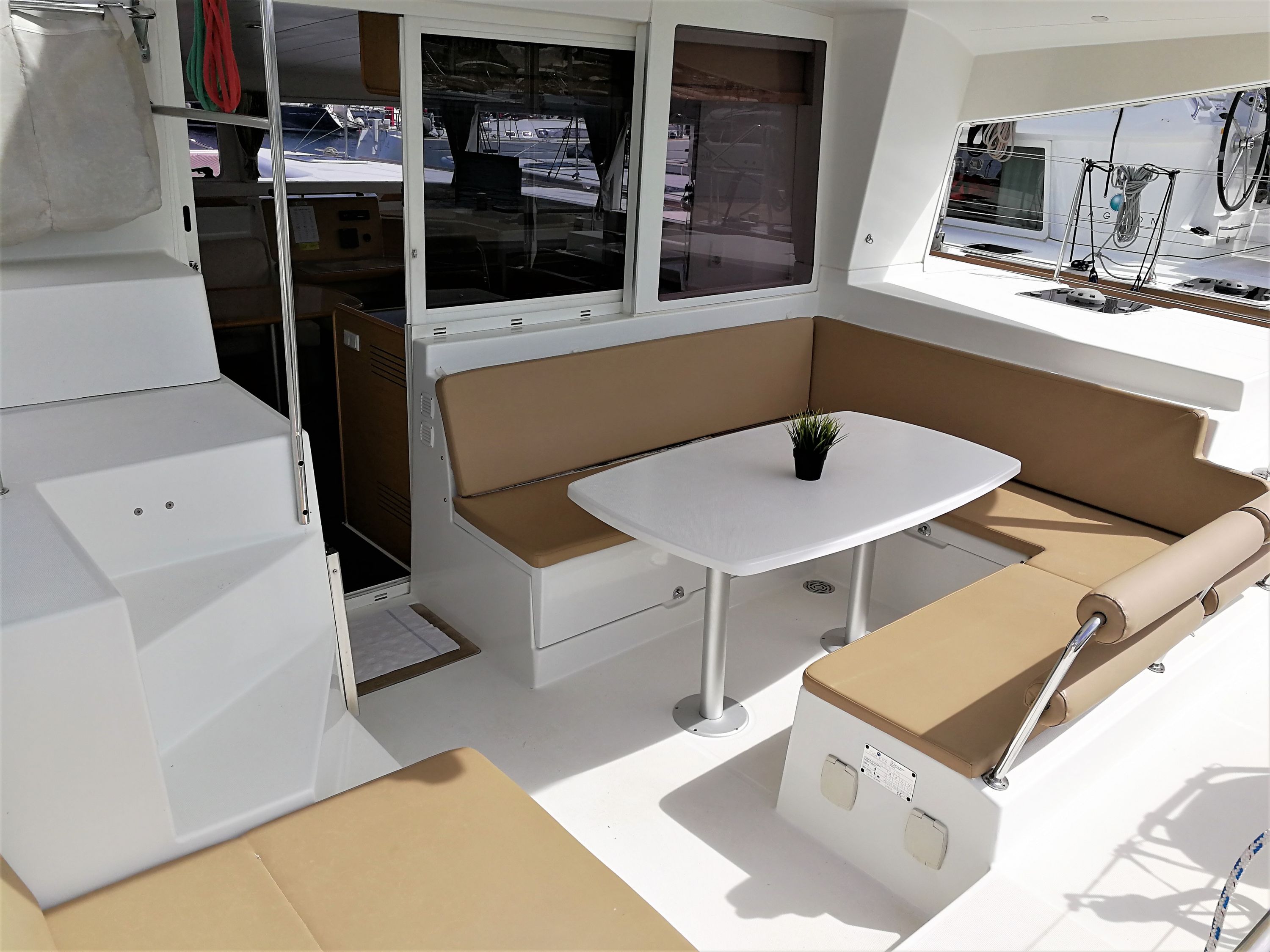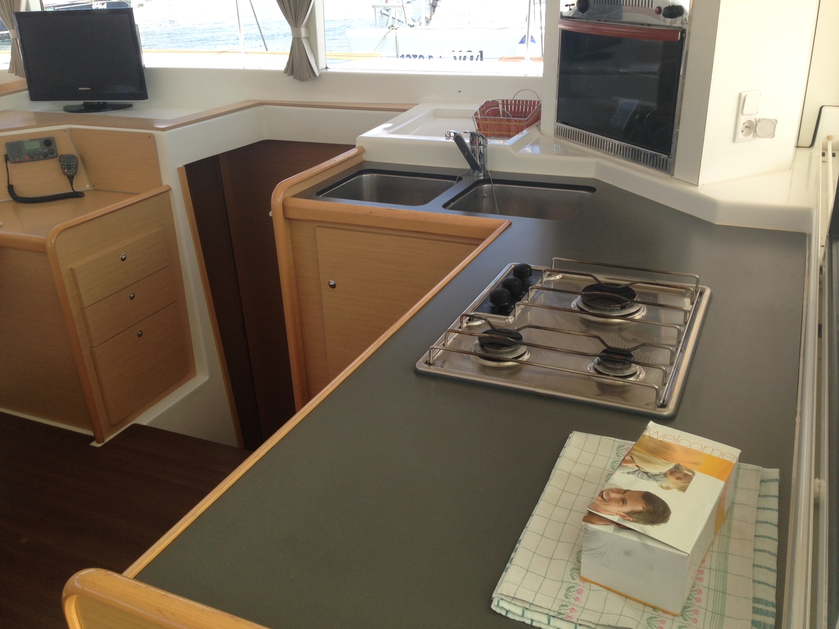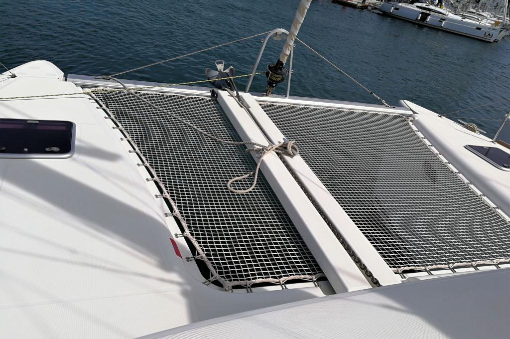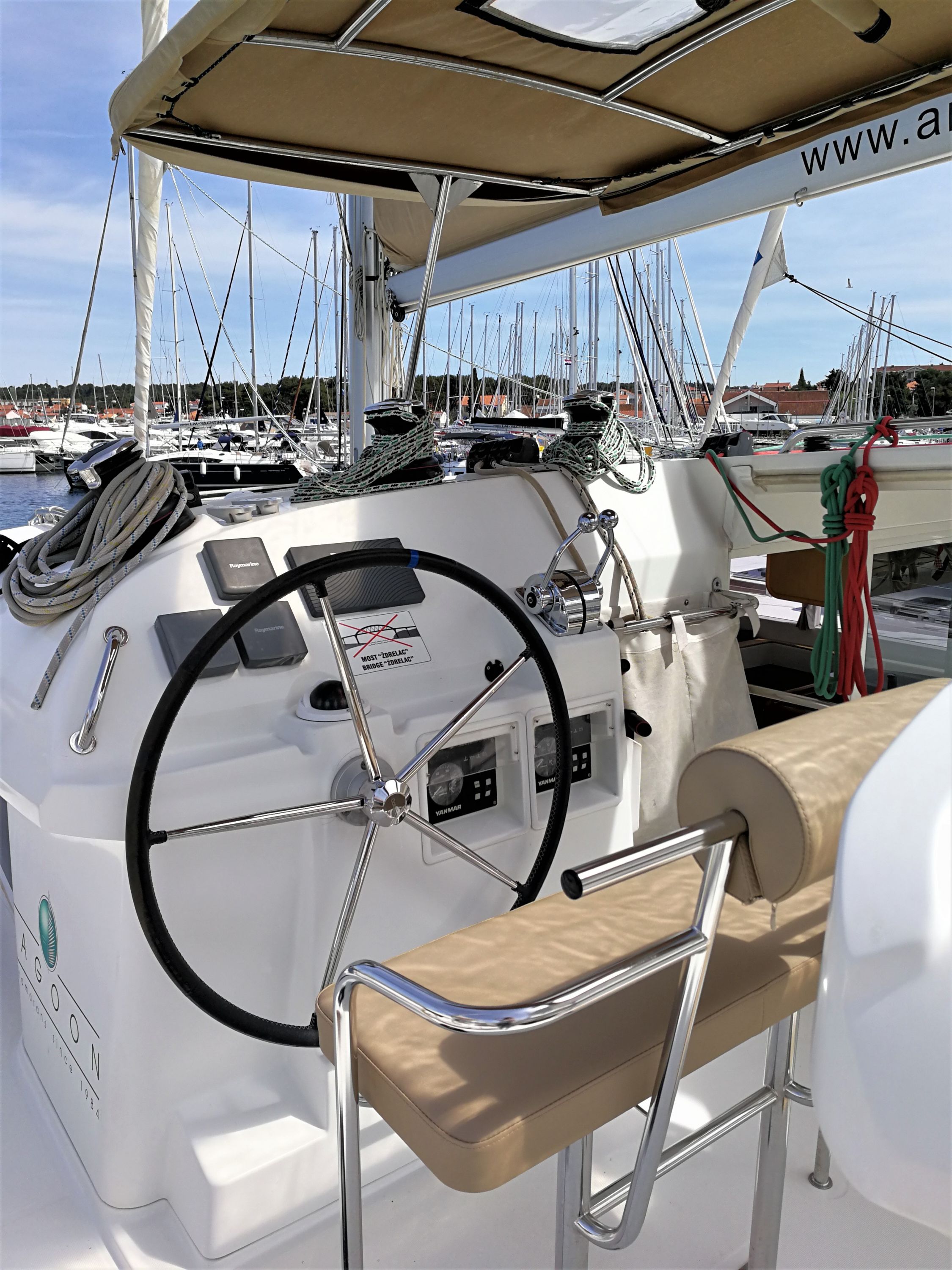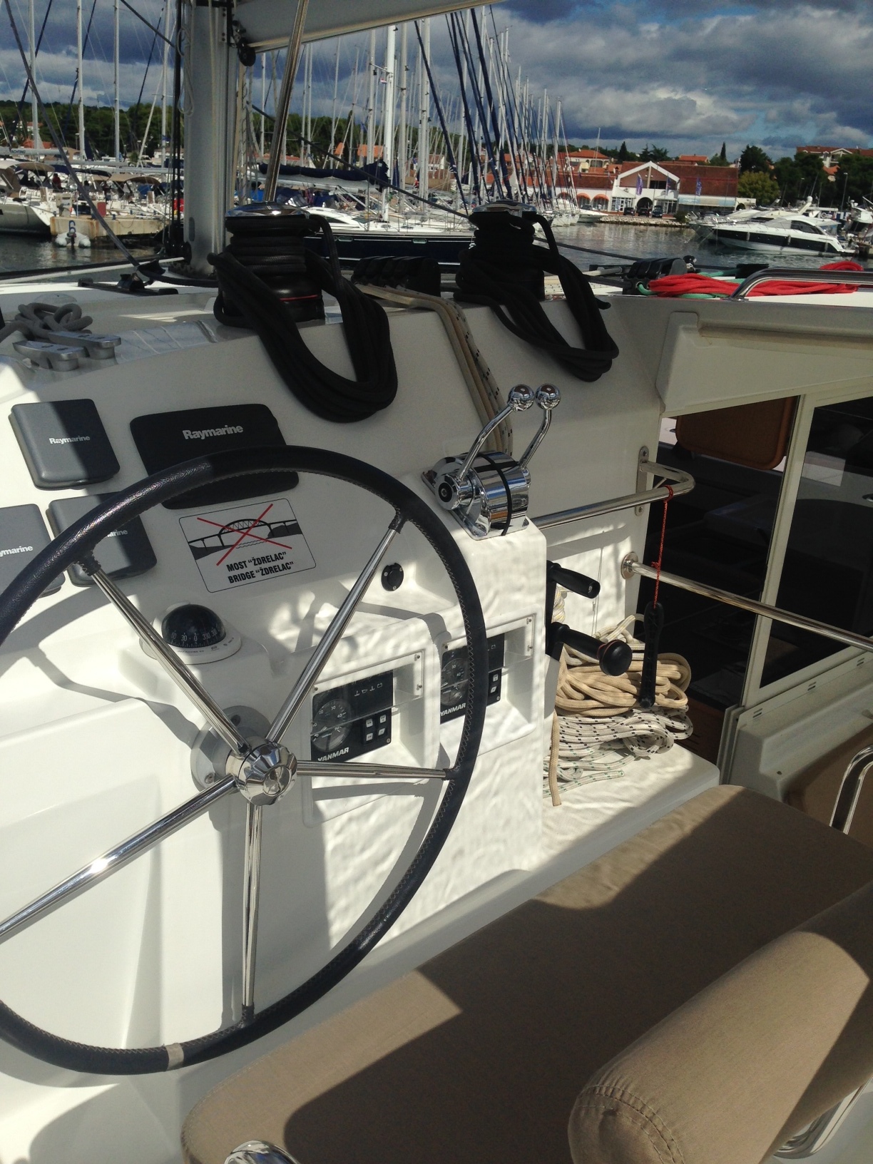 | Outside | 220 V-Landanschluss, Anker mit Kette, Cockpitdusche, Cockpitkühlschrank, Cockpitlautsprecher, Cockpitpolster, Cockpittisch, elektr. Ankerwinsch, Fender, Gangway, Hardtop, Kugelfender, Winschen |