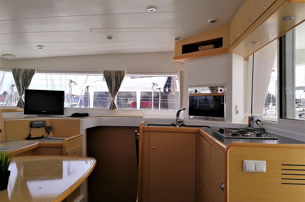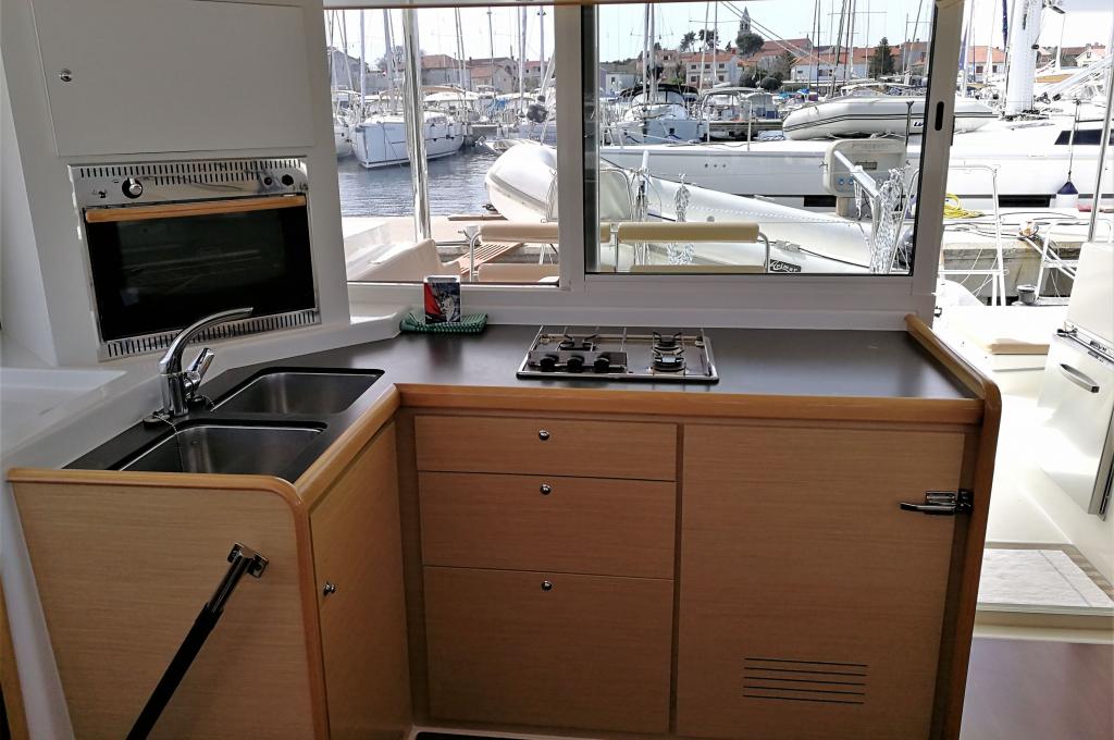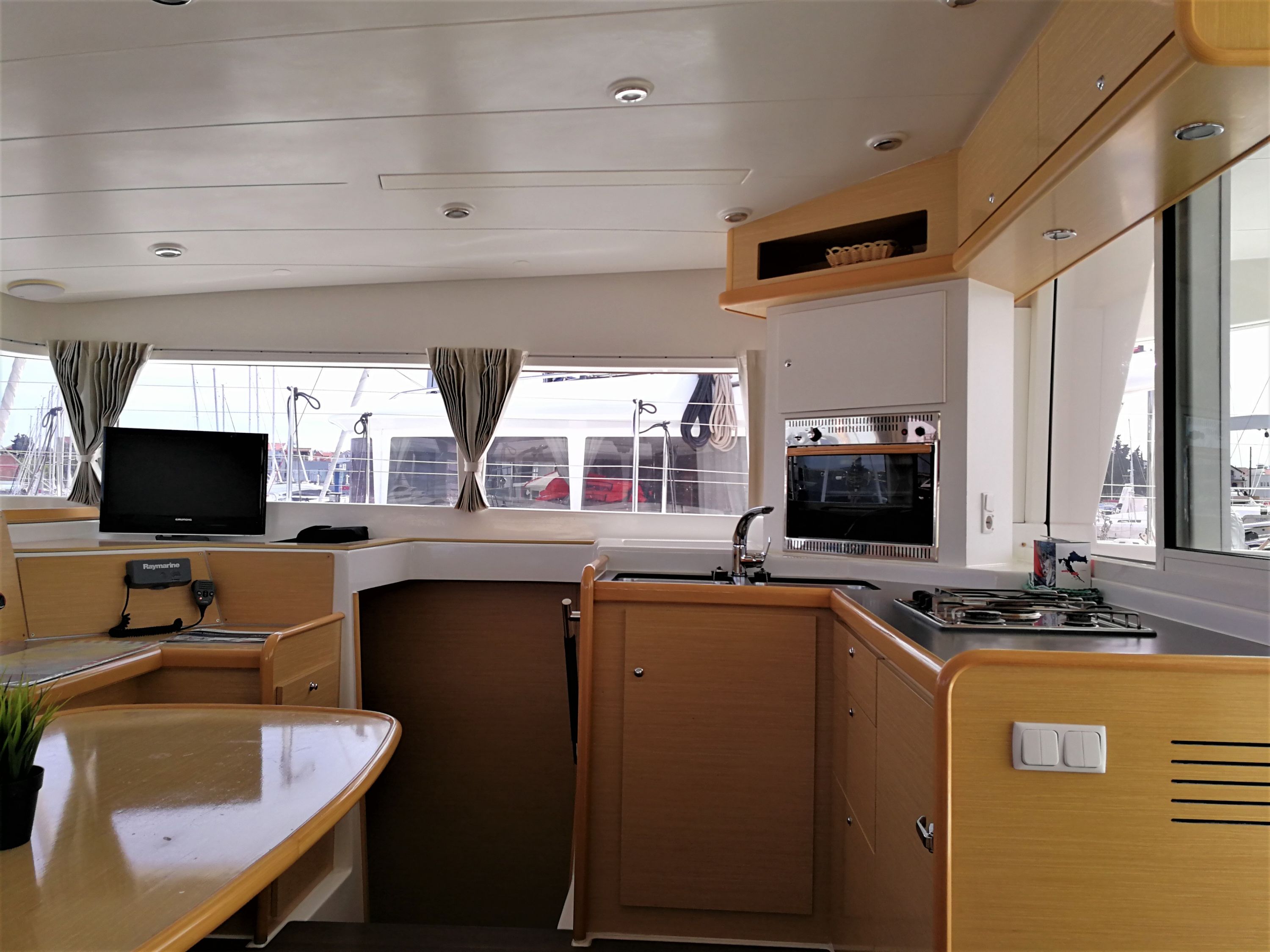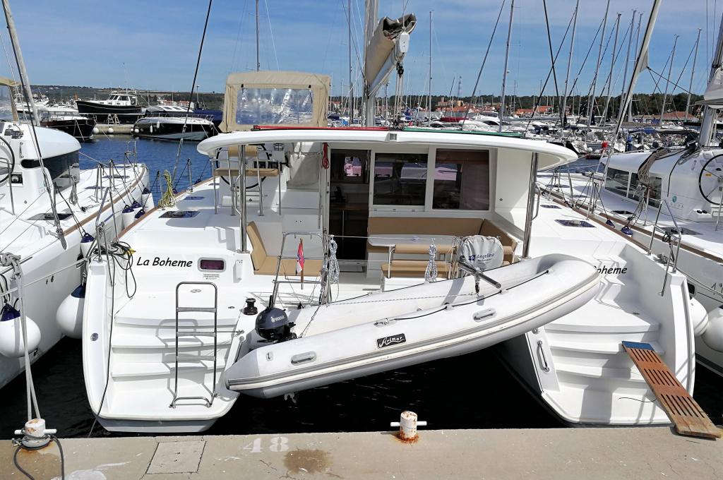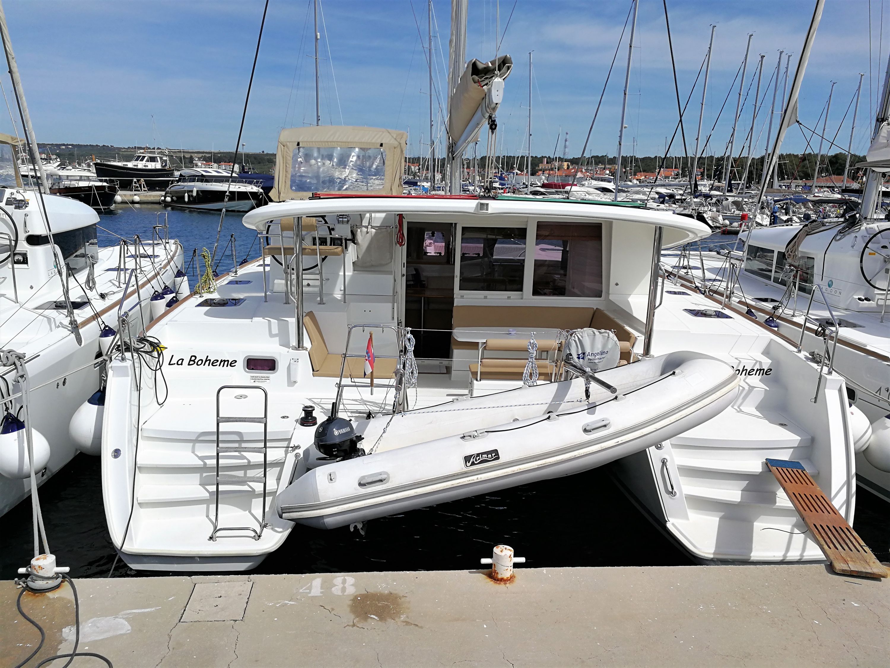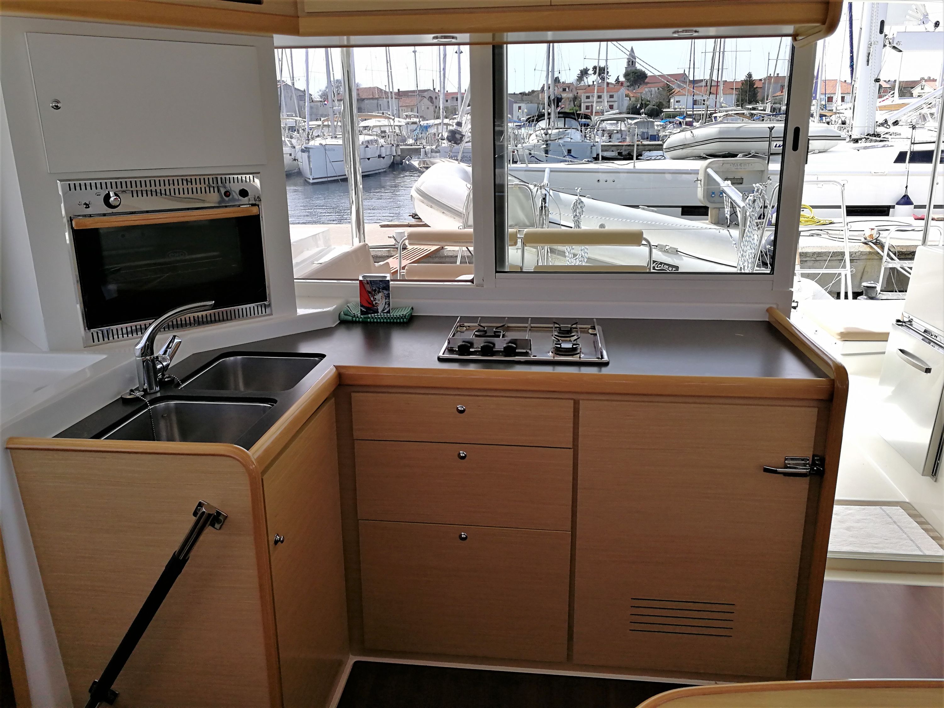 | Outside | 220 V-Landanschluss, Anker mit Kette, Cockpitdusche, Cockpitkühlschrank, Cockpitlautsprecher, Cockpitpolster, Cockpittisch, elektr. Ankerwinsch, Fender, Gangway, Hardtop, Kugelfender, Winschen |