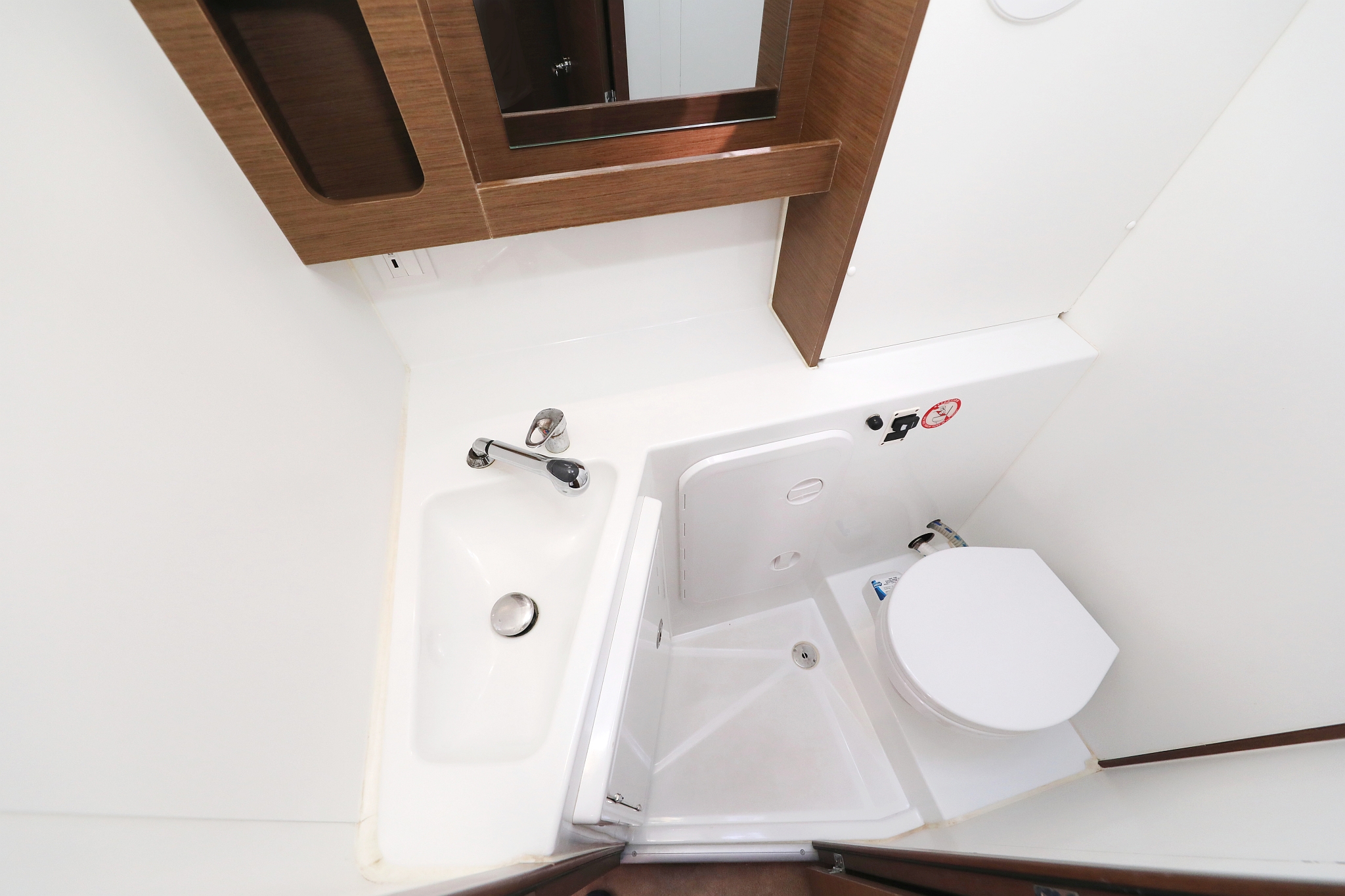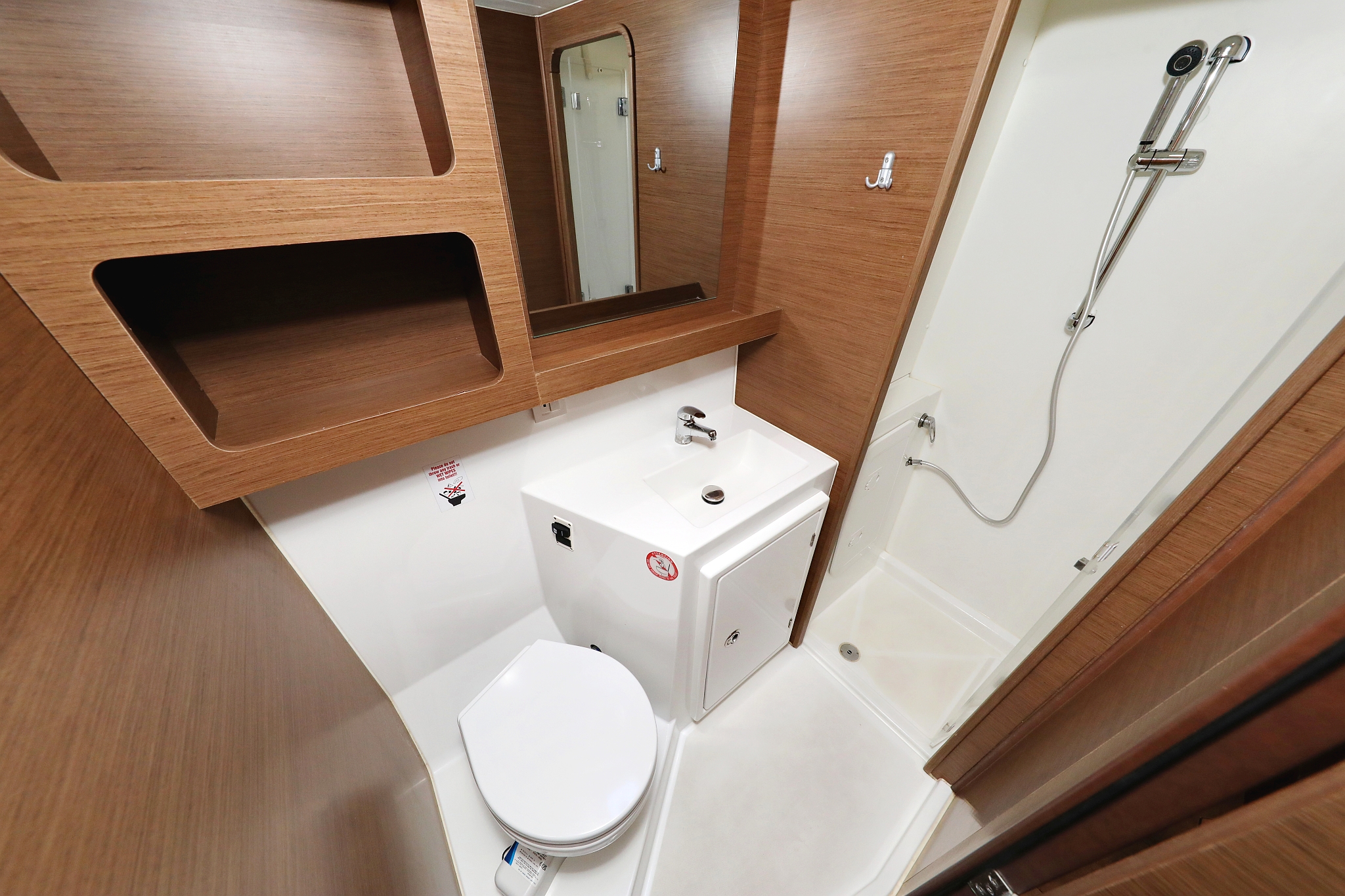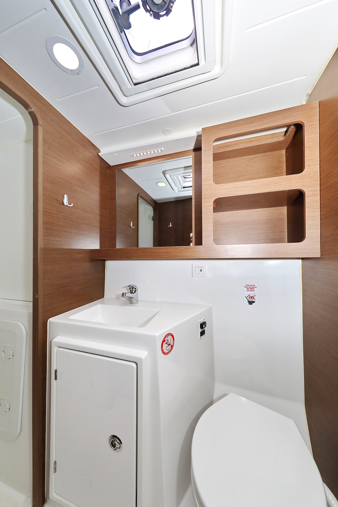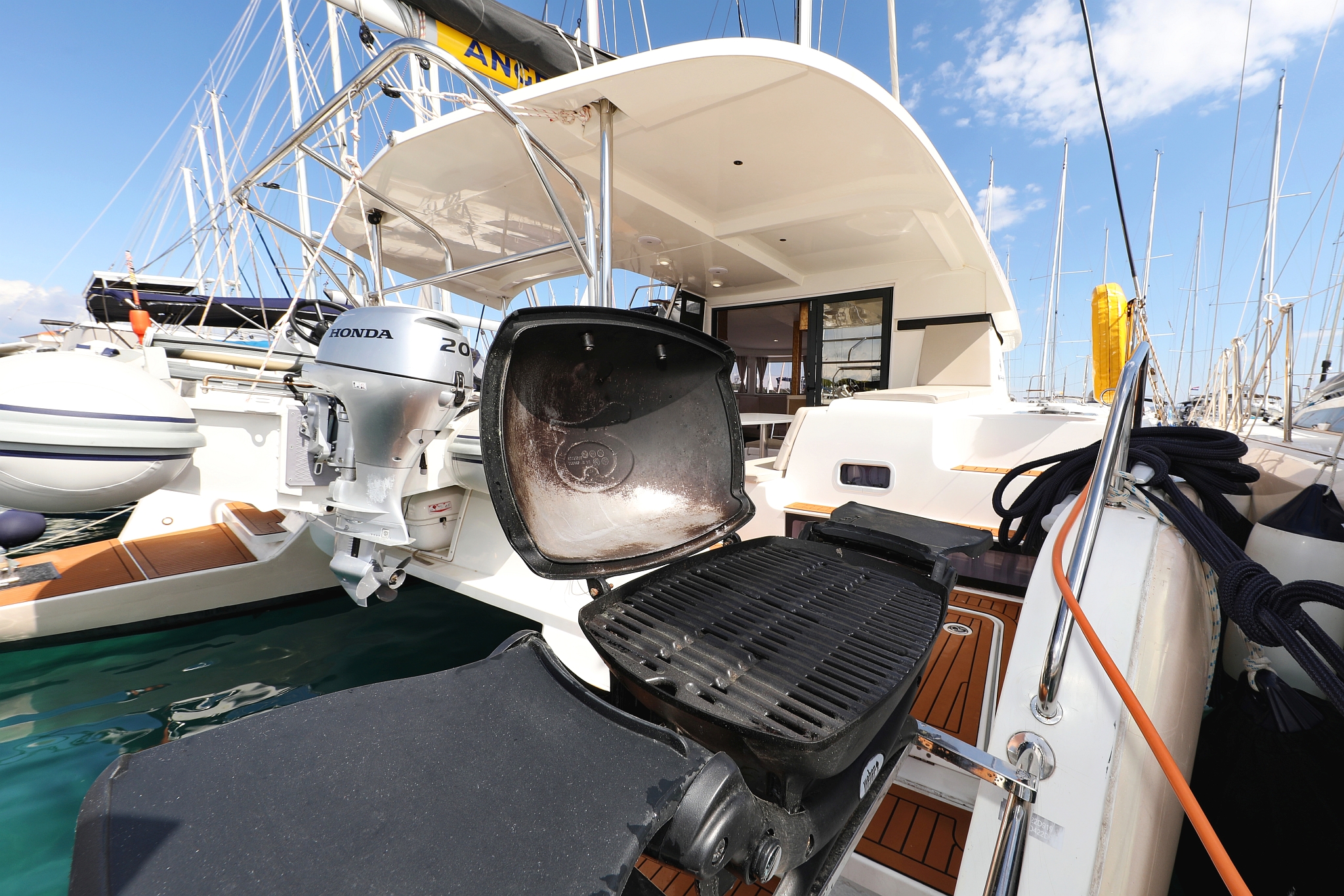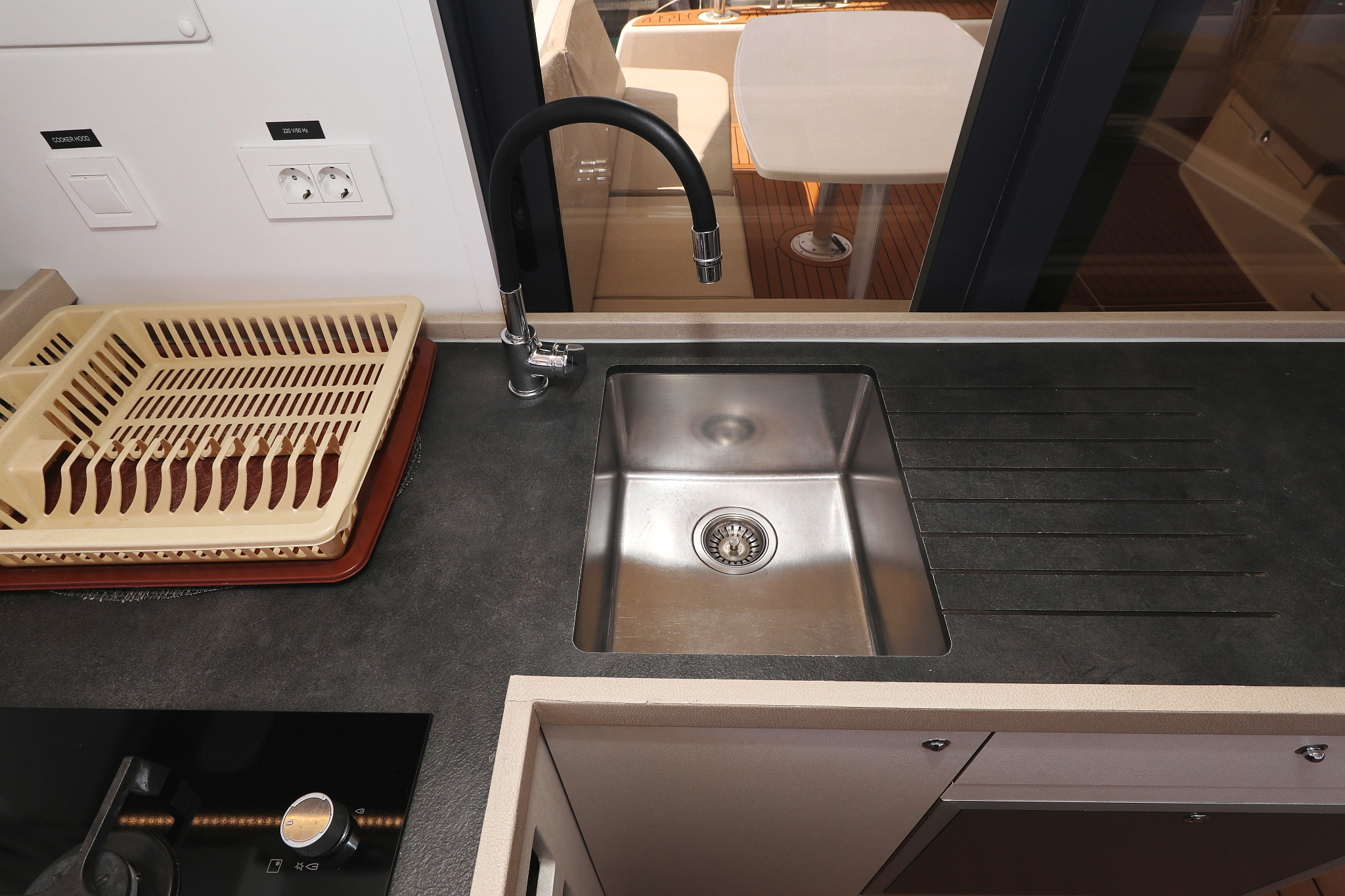 220V Steckdosen, Backofen, Eiswürfelmaschine, Fäkalientank, Generator, Geschirrspüler, Heizung, Inverter 12V/220V, Klimaanlage (ohne Landstrombedarf), Kühlschrank, Landstromkabel, Mokkakanne, Pantryausstattung, Radio mit USB, Bluetooth und AUX-In, Smart-TV, Spülbecken, USB Steckdose, Ventilatoren in Salon und Kabinen, Wasserkocher, Watermaker, WC (elektr.) |