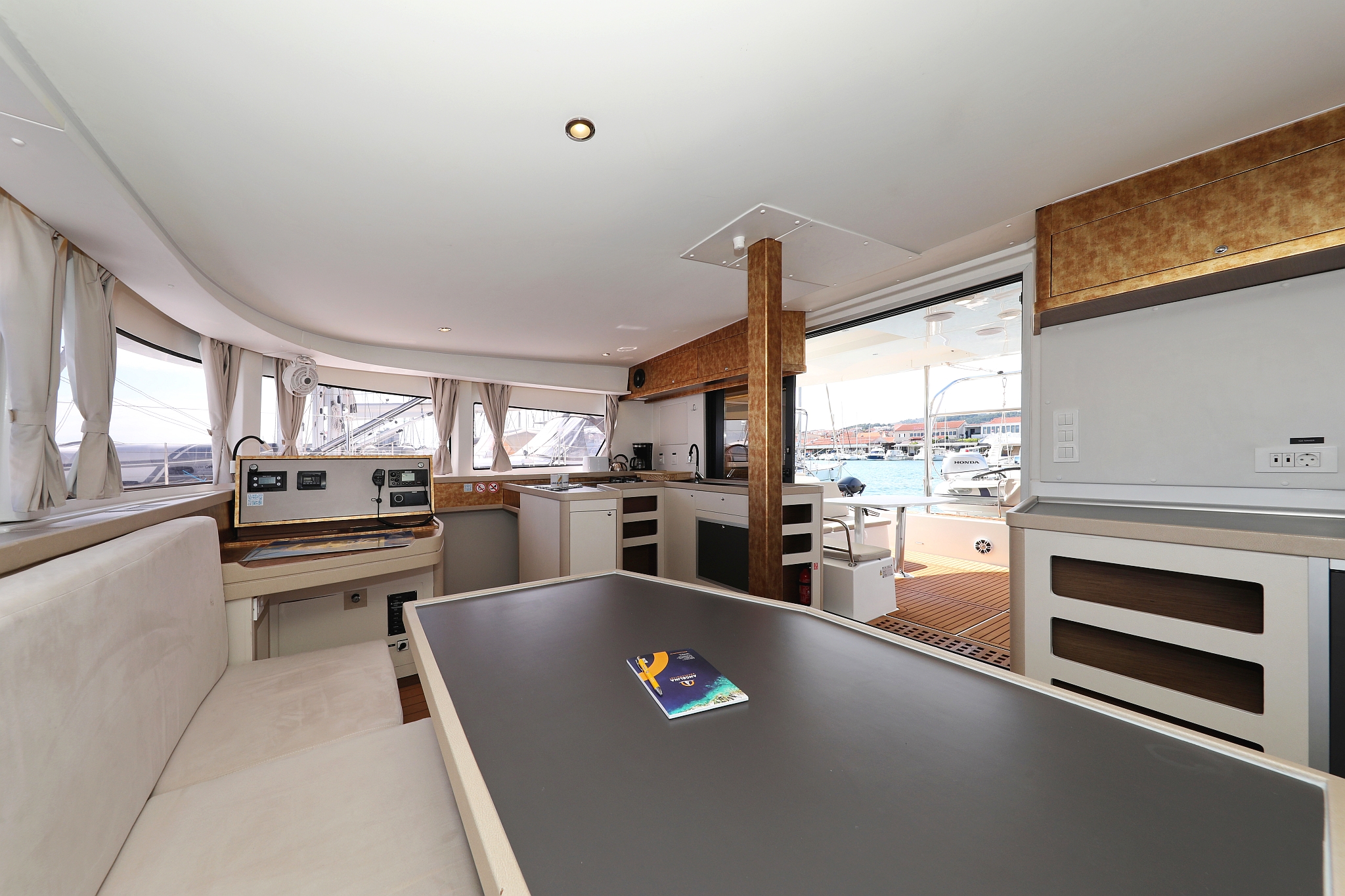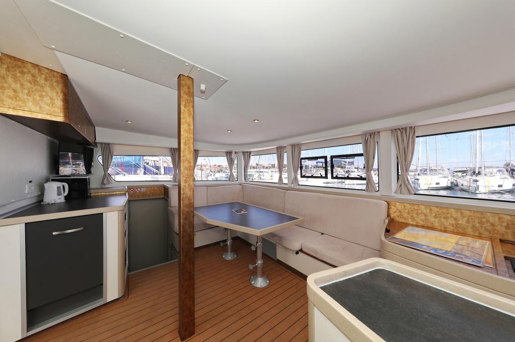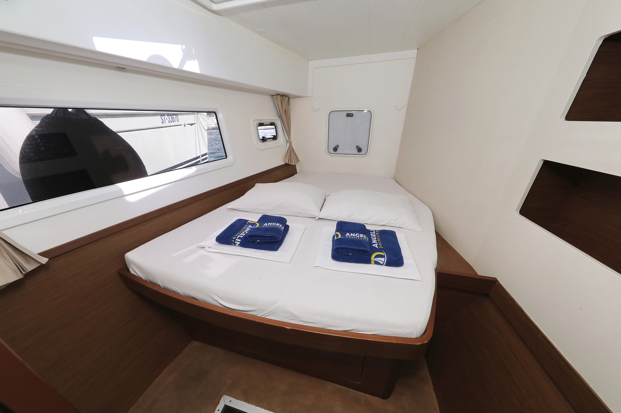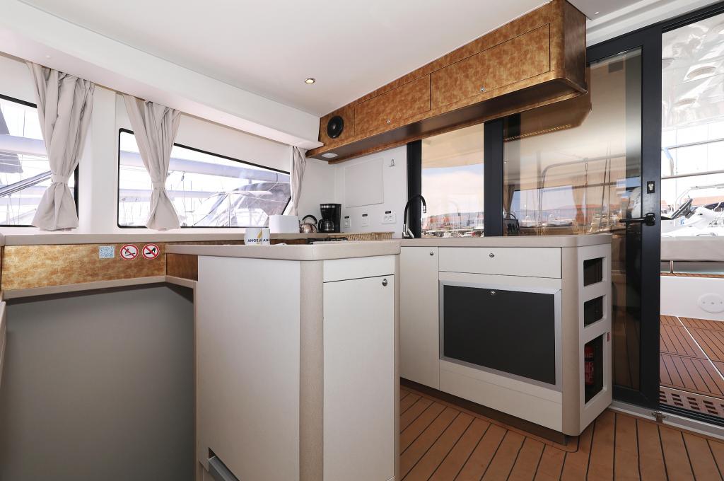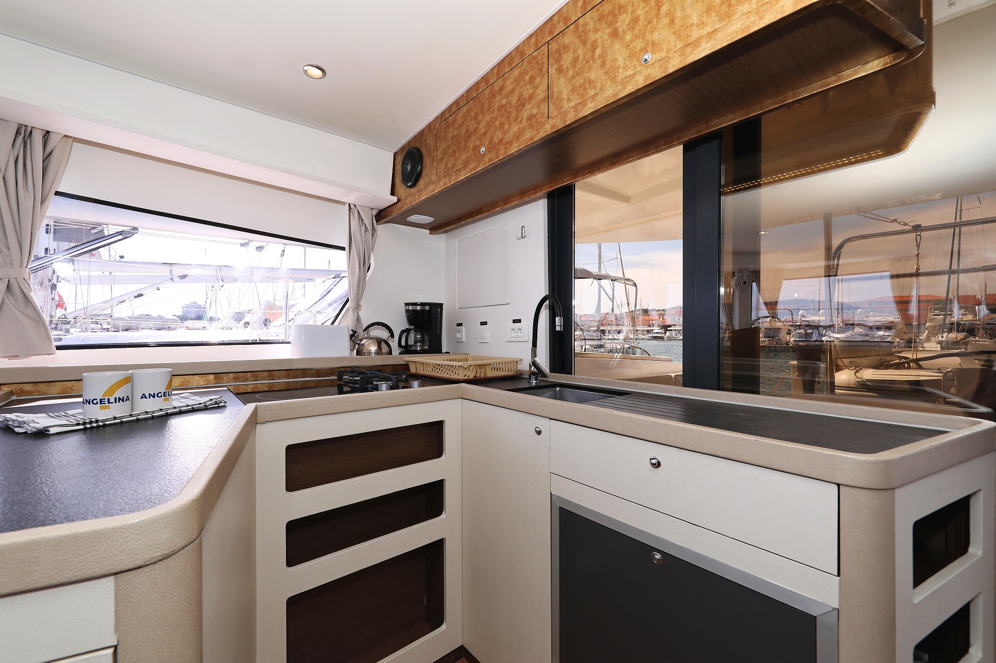 220V Steckdosen, Backofen, Eiswürfelmaschine, Fäkalientank, Generator, Geschirrspüler, Heizung, Inverter 12V/220V, Klimaanlage (ohne Landstrombedarf), Kühlschrank, Landstromkabel, Mokkakanne, Pantryausstattung, Radio mit USB, Bluetooth und AUX-In, Smart-TV, Spülbecken, USB Steckdose, Ventilatoren in Salon und Kabinen, Wasserkocher, Watermaker, WC (elektr.) |