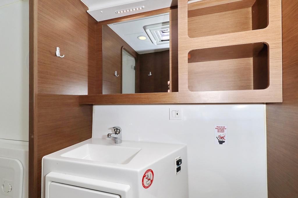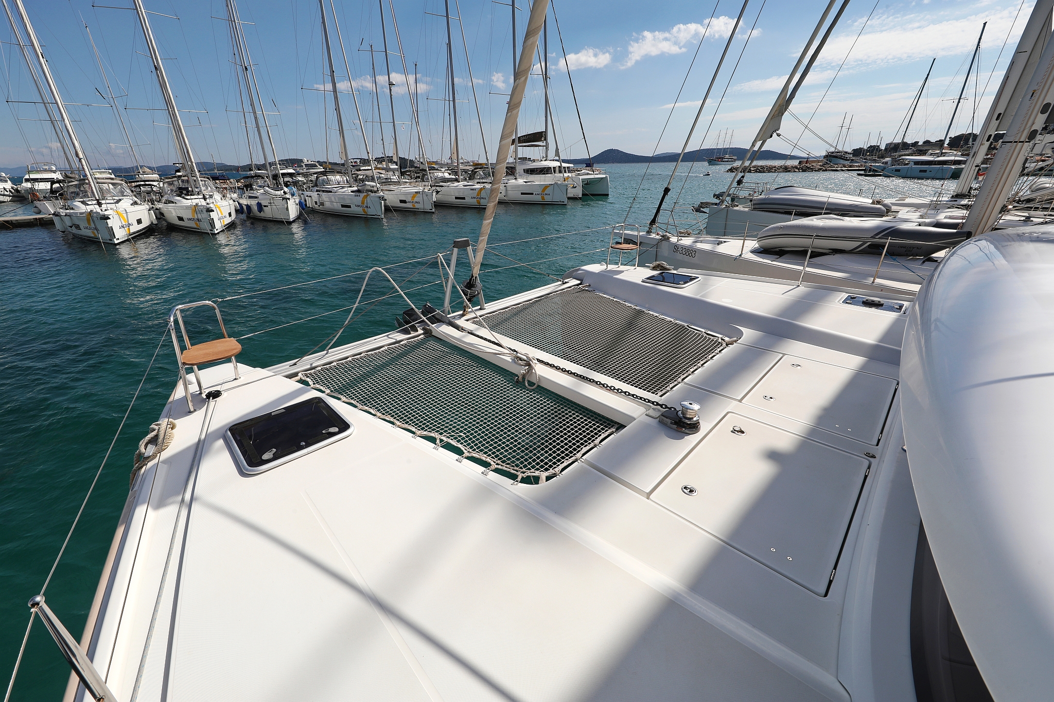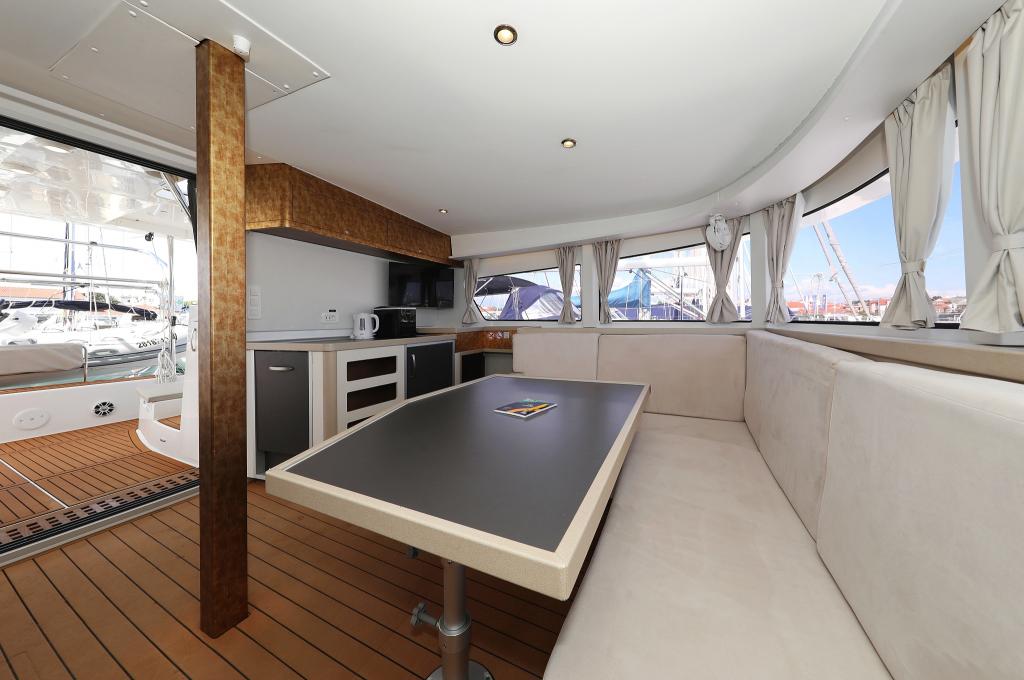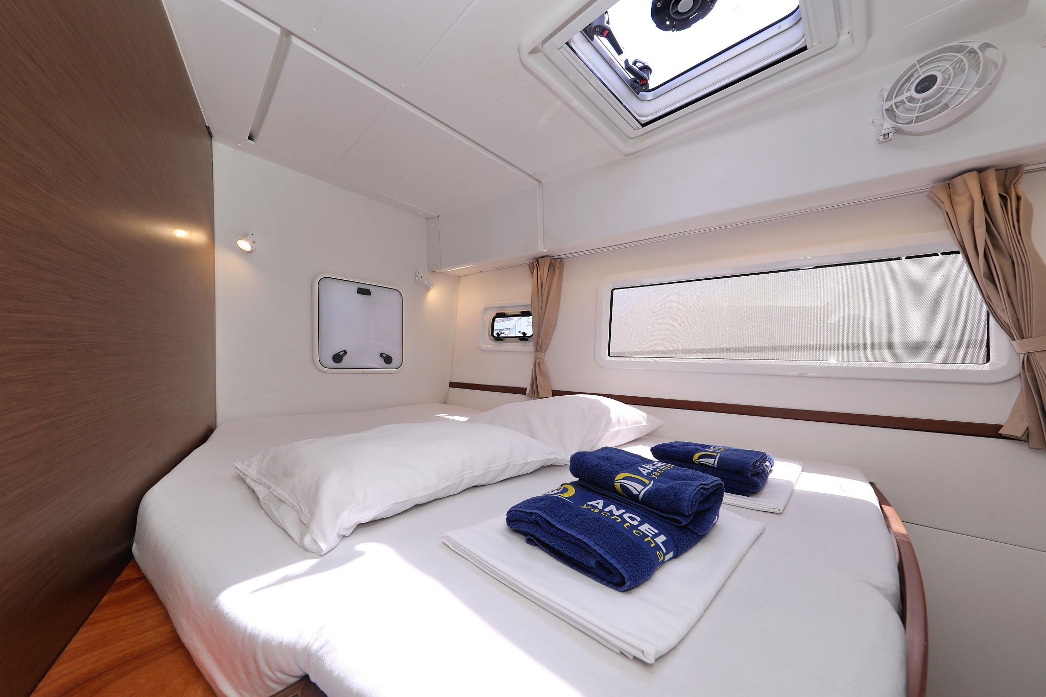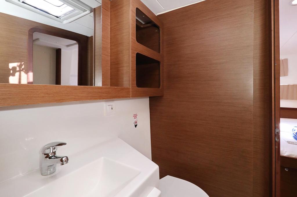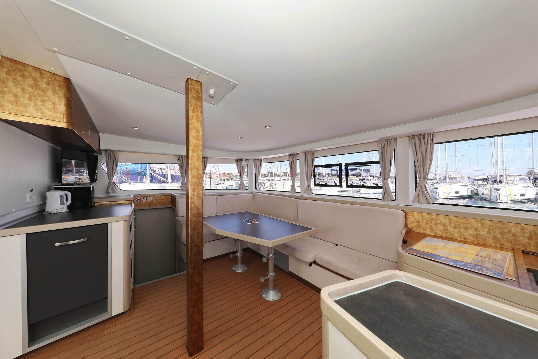 220V Steckdosen, Backofen, Eiswürfelmaschine, Fäkalientank, Generator, Geschirrspüler, Heizung, Inverter 12V/220V, Klimaanlage (ohne Landstrombedarf), Kühlschrank, Landstromkabel, Mokkakanne, Pantryausstattung, Radio mit USB, Bluetooth und AUX-In, Smart-TV, Spülbecken, USB Steckdose, Ventilatoren in Salon und Kabinen, Wasserkocher, Watermaker, WC (elektr.) |