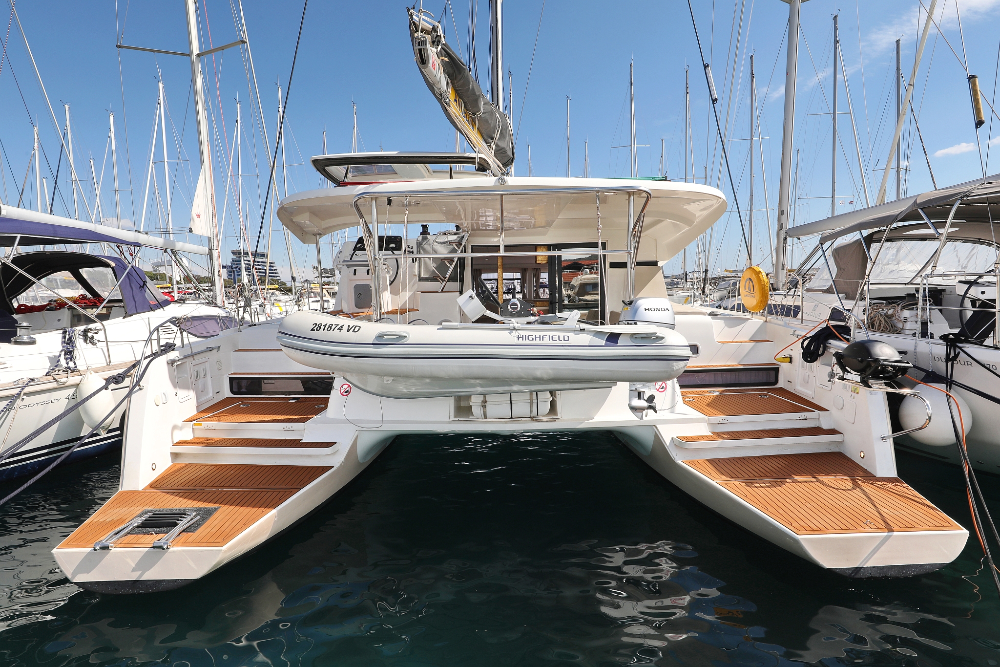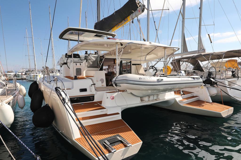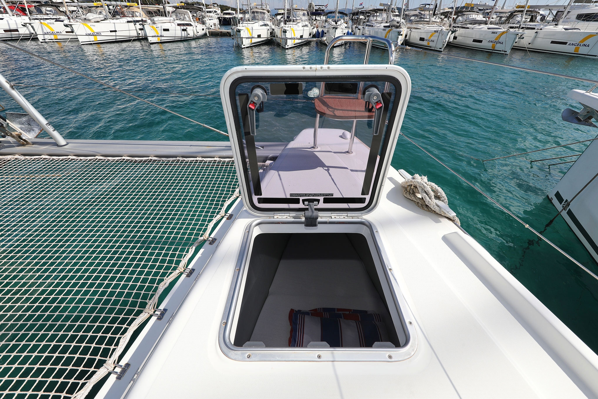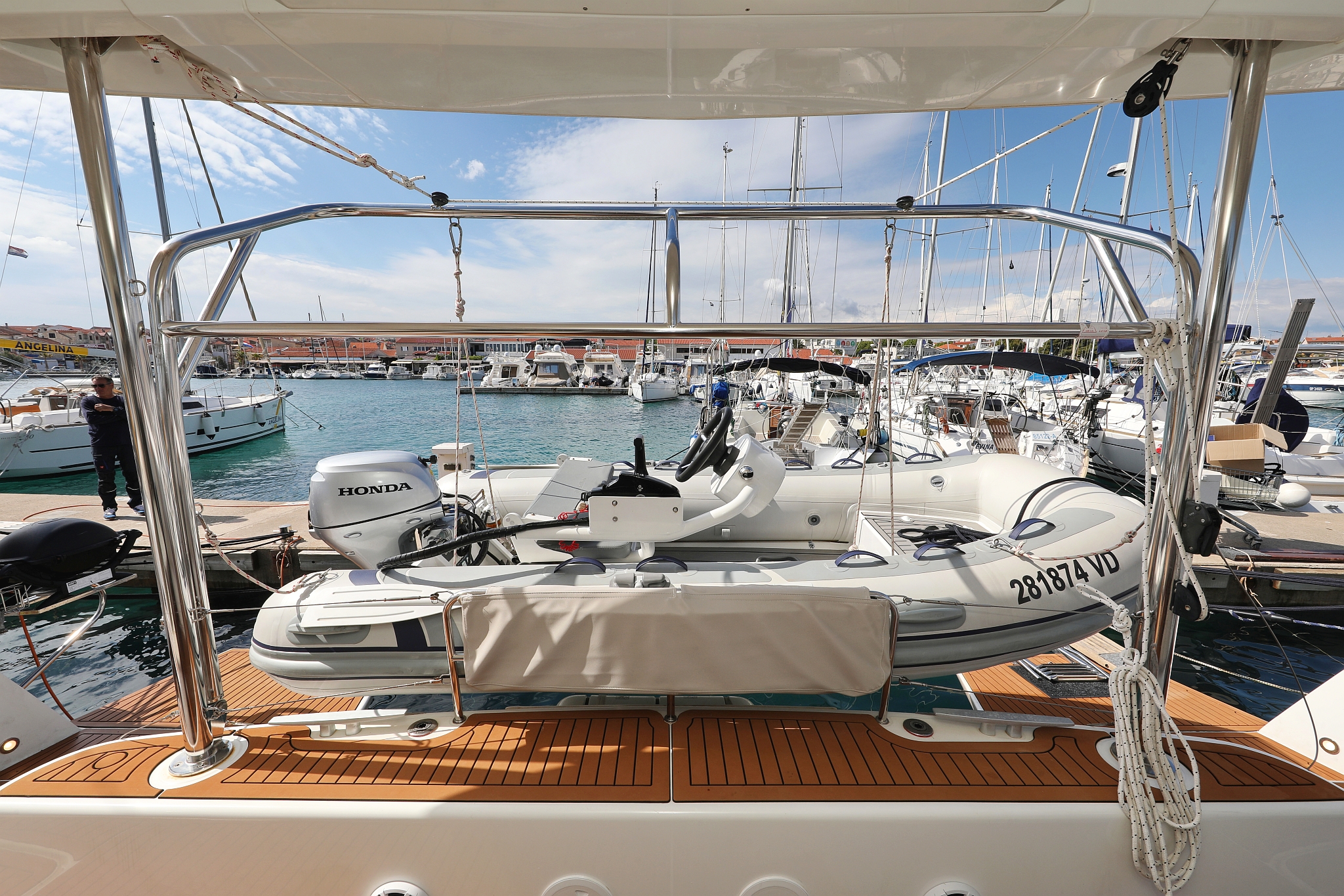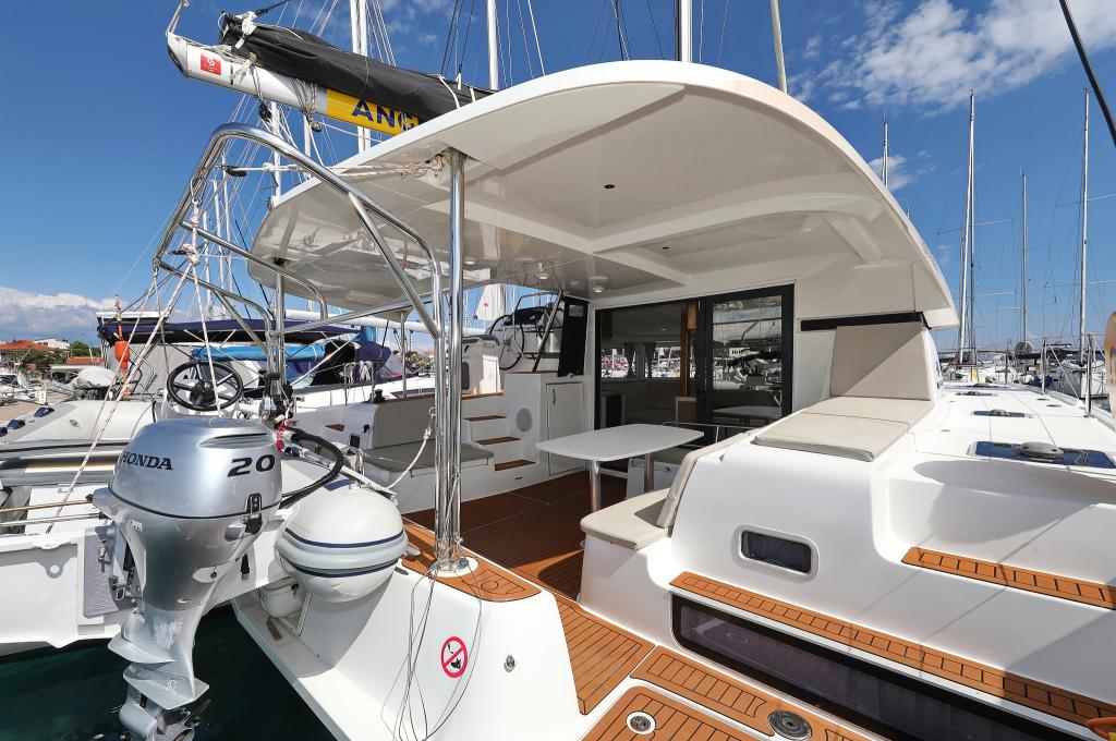 Anker mit Kette, Bootshaken, Cockpitdusche, Cockpitkühlschrank, Cockpitlautsprecher, Cockpitpolster, Cockpittisch, elektr. Ankerwinsch, elektr. Winsch, Fender, Festmacherleinen, Gangway, Grill, Hardtop, Solaranlage, Sonnendeck, Teak im Cockpit, Unterwasserbeleuchtung, Wasserschlauch, Windex, Winschen |