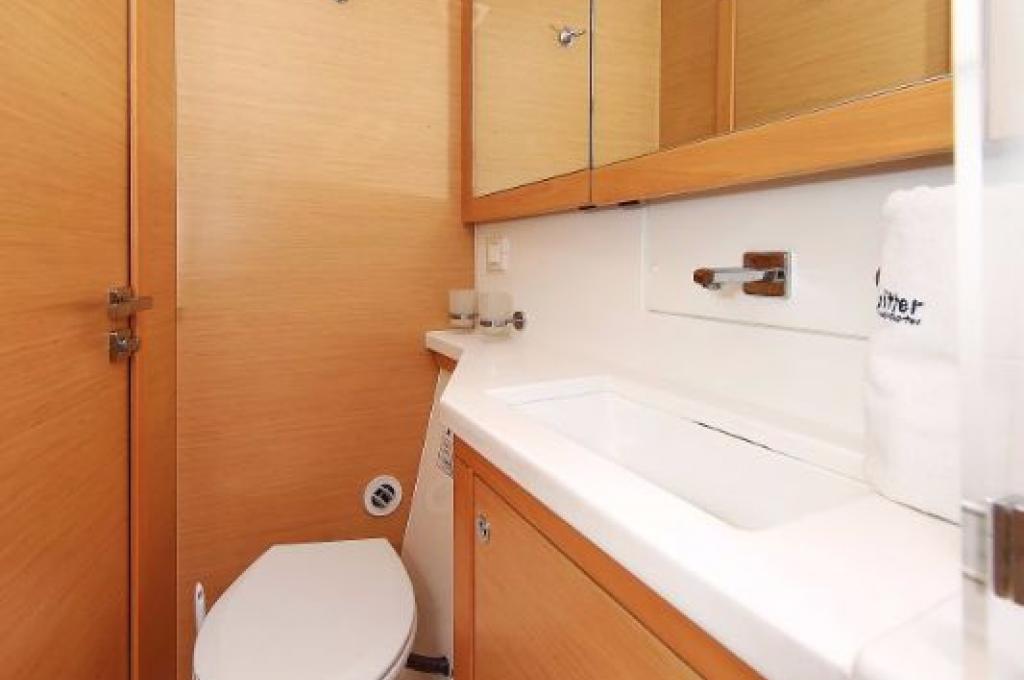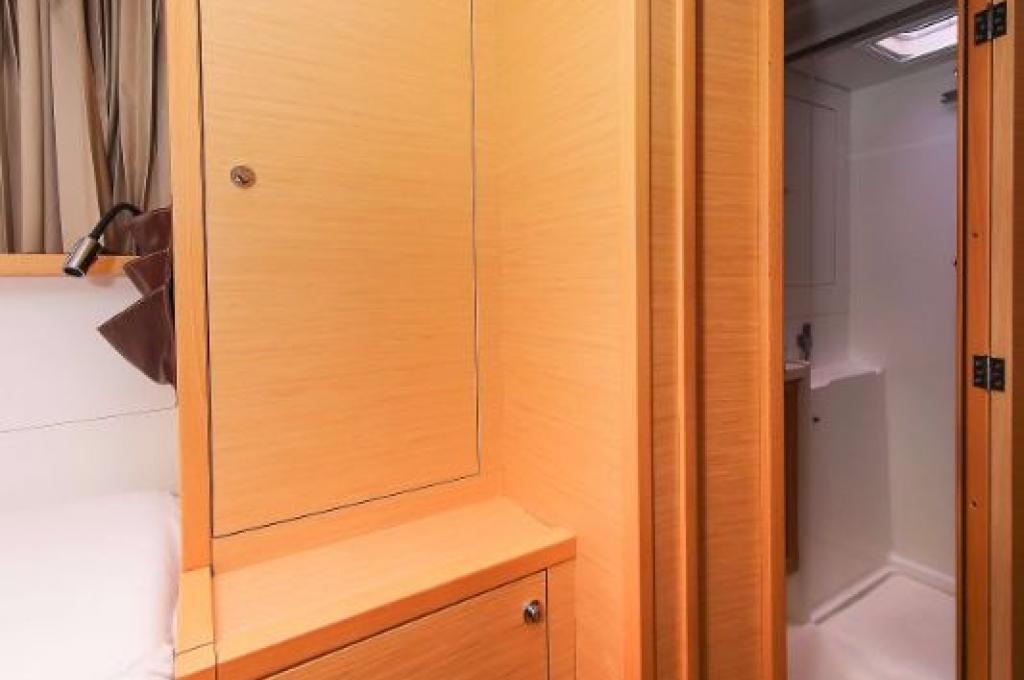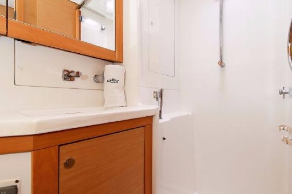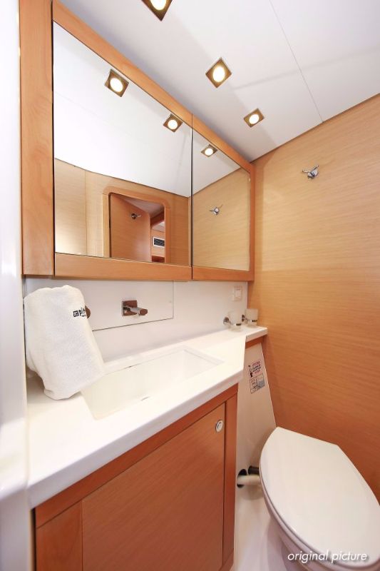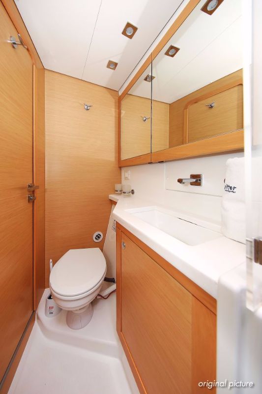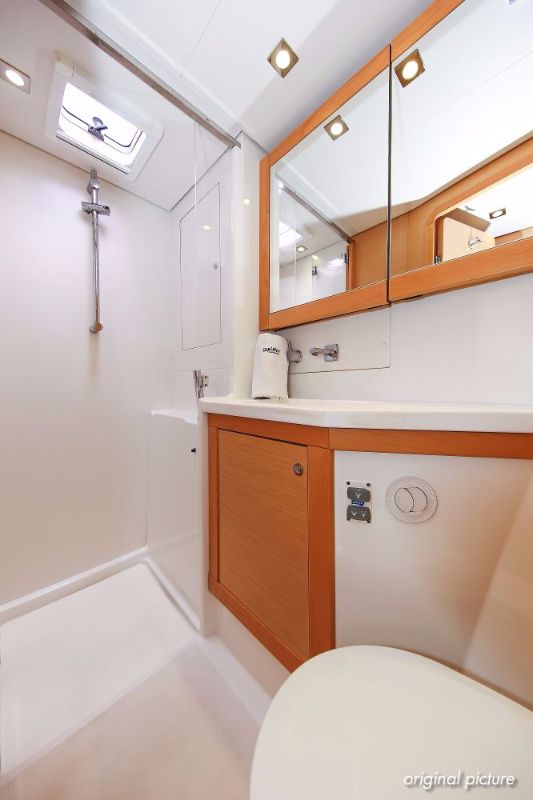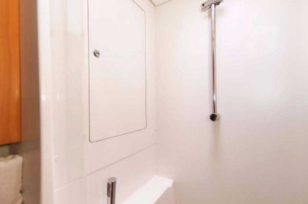 | Inside | 2. Kühlschrank, Borduhr, Dusche, Eisbox, Generator, Geschirrspüler, Heizung, Inverter 12V/220V, Kaffeemaschine, Klimaanlage (ohne Landstrombedarf), Kühlschrank, Ladegerät, Luftpumpe für Beiboot, Mikrowelle, Pantryausstattung, Radio mit CD/USB/MP3/Aux-In/Bluetooth, Salontisch absenkbar, Ventilatoren in Kabinen, Warmwasser, WC (elektr.) |