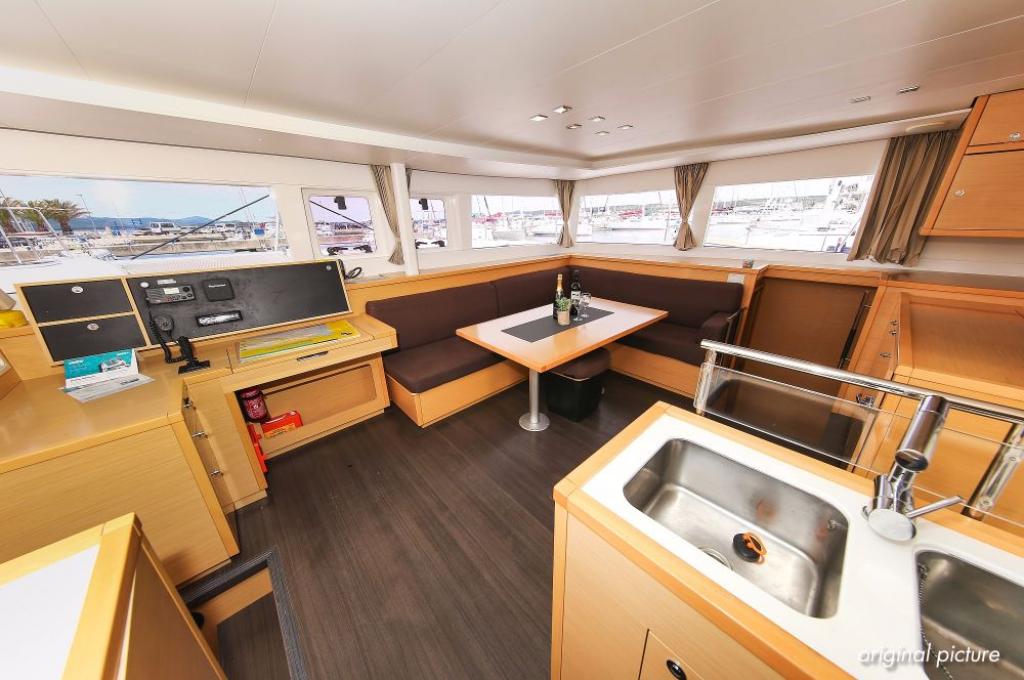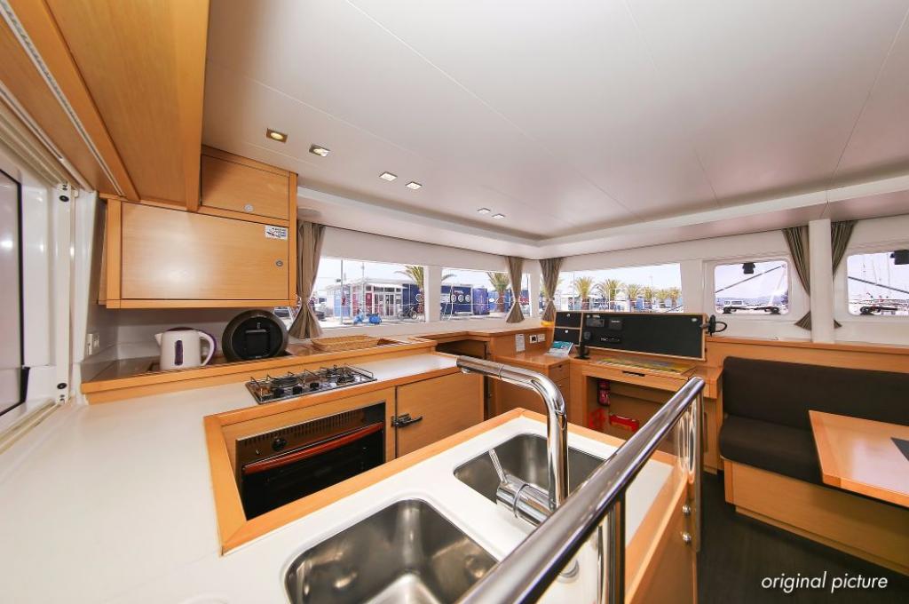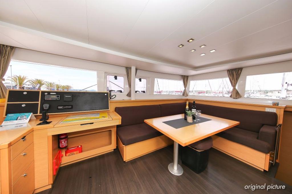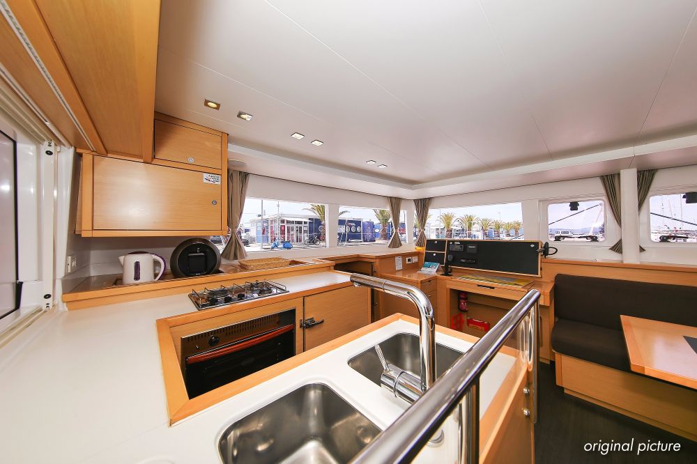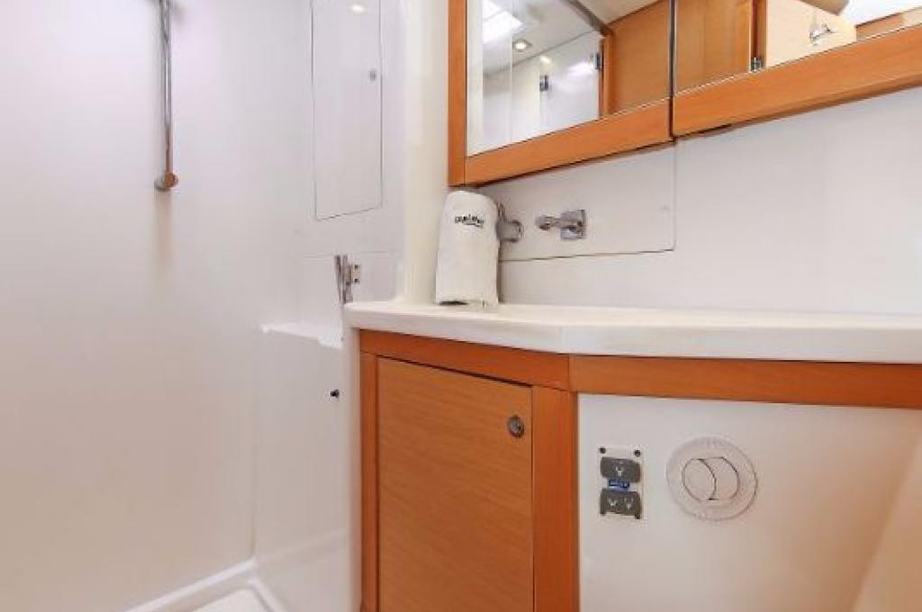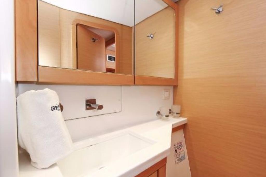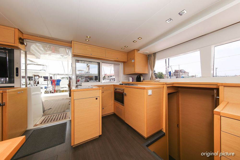 | Inside | 2. Kühlschrank, Borduhr, Dusche, Eisbox, Generator, Geschirrspüler, Heizung, Inverter 12V/220V, Kaffeemaschine, Klimaanlage (ohne Landstrombedarf), Kühlschrank, Ladegerät, Luftpumpe für Beiboot, Mikrowelle, Pantryausstattung, Radio mit CD/USB/MP3/Aux-In/Bluetooth, Salontisch absenkbar, Ventilatoren in Kabinen, Warmwasser, WC (elektr.) |