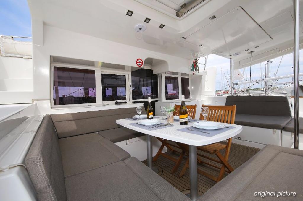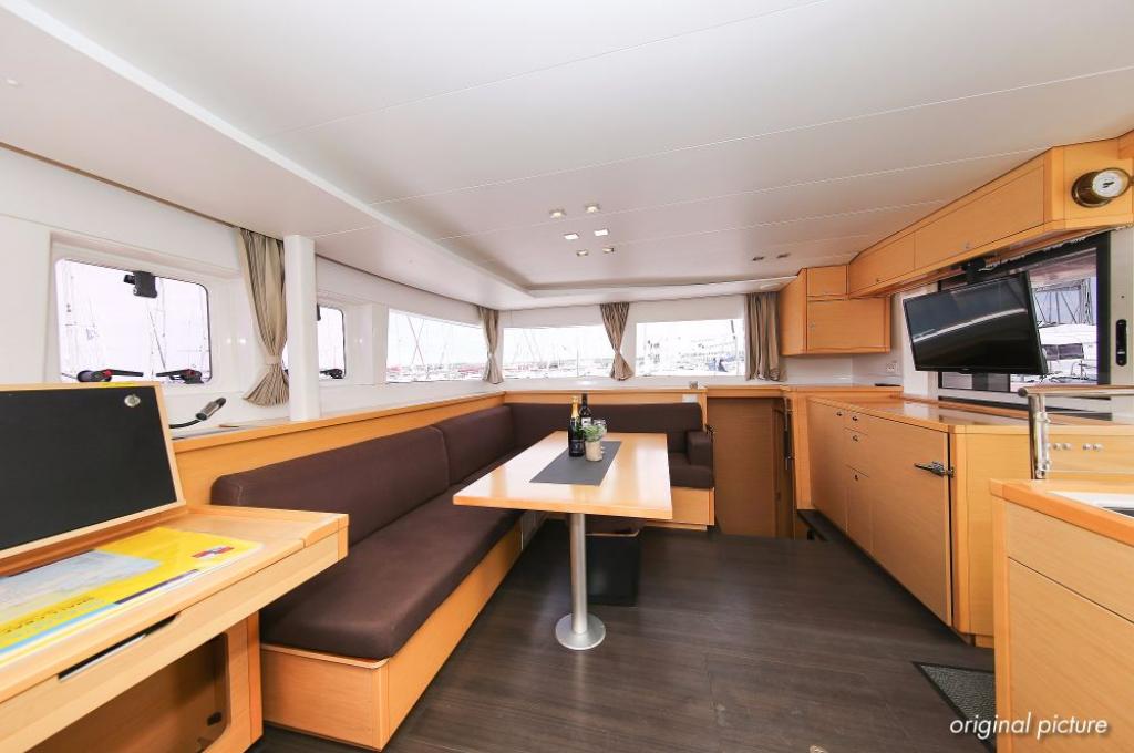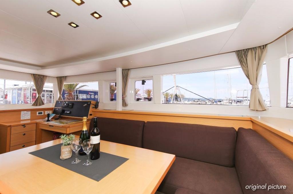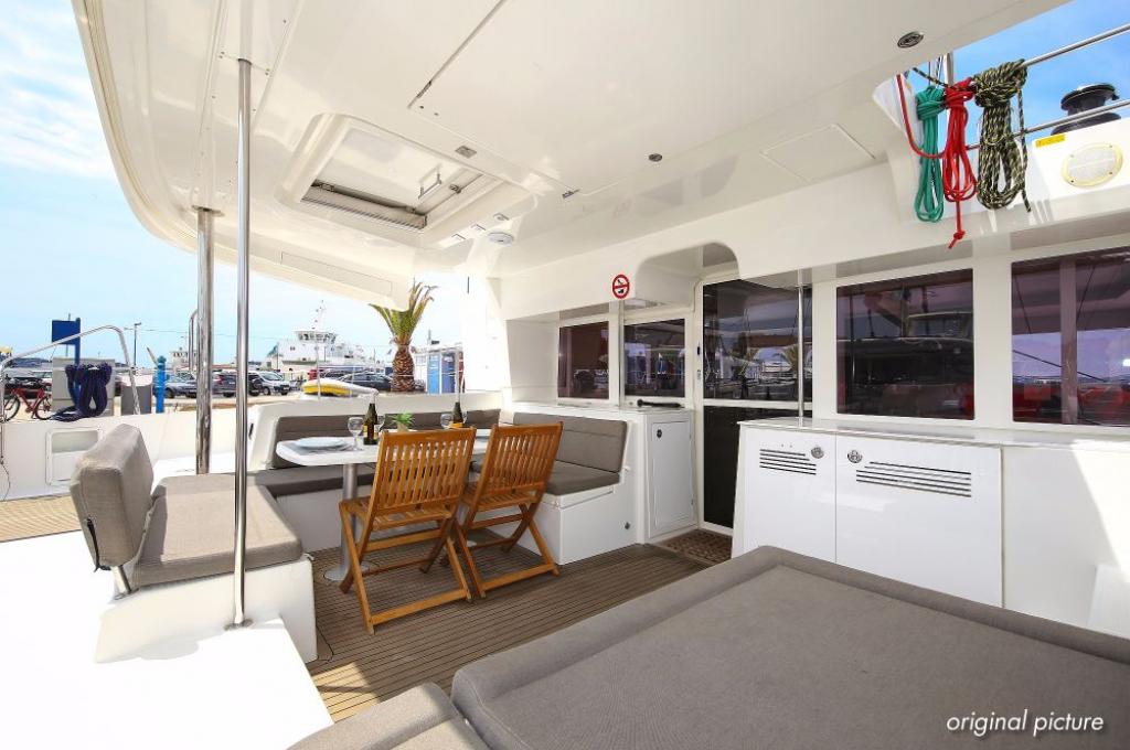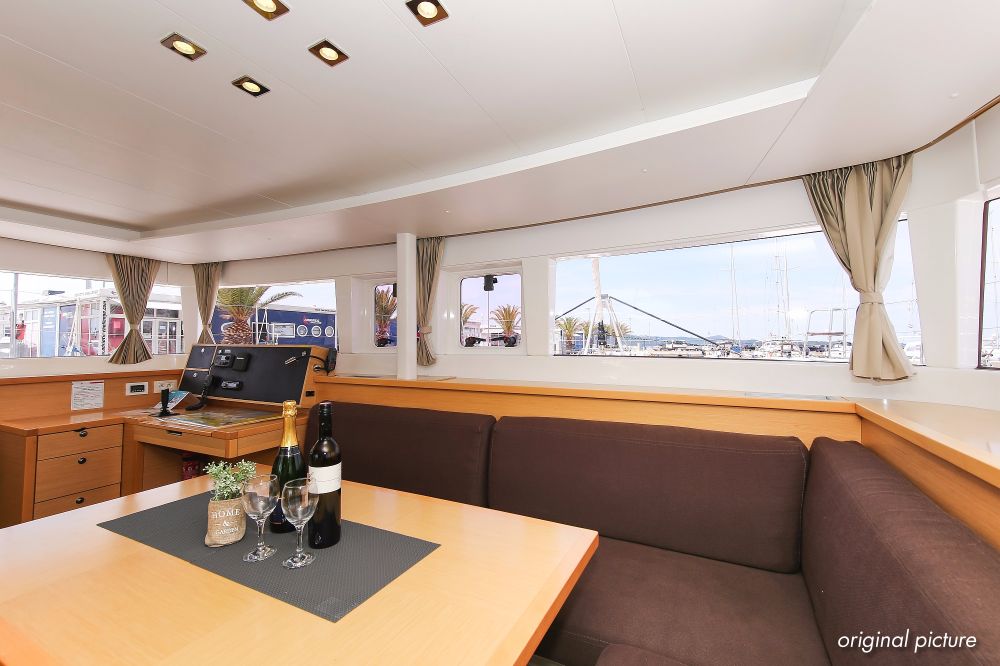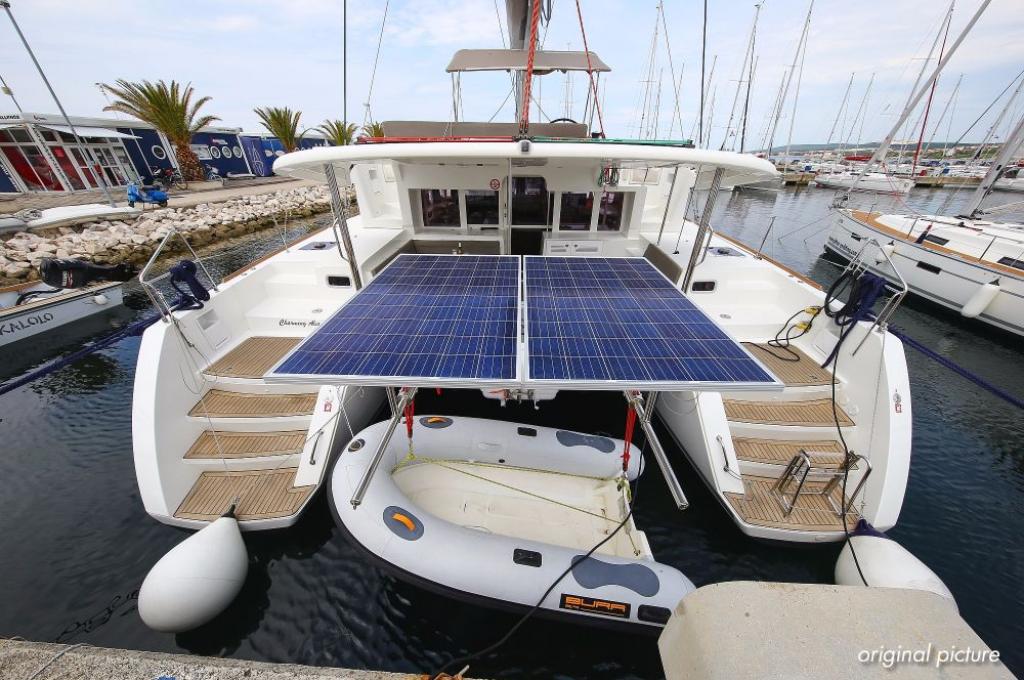 | Inside | 2. Kühlschrank, Borduhr, Dusche, Eisbox, Generator, Geschirrspüler, Heizung, Inverter 12V/220V, Kaffeemaschine, Klimaanlage (ohne Landstrombedarf), Kühlschrank, Ladegerät, Luftpumpe für Beiboot, Mikrowelle, Pantryausstattung, Radio mit CD/USB/MP3/Aux-In/Bluetooth, Salontisch absenkbar, Ventilatoren in Kabinen, Warmwasser, WC (elektr.) |