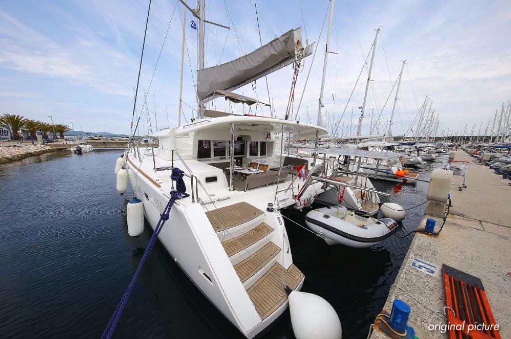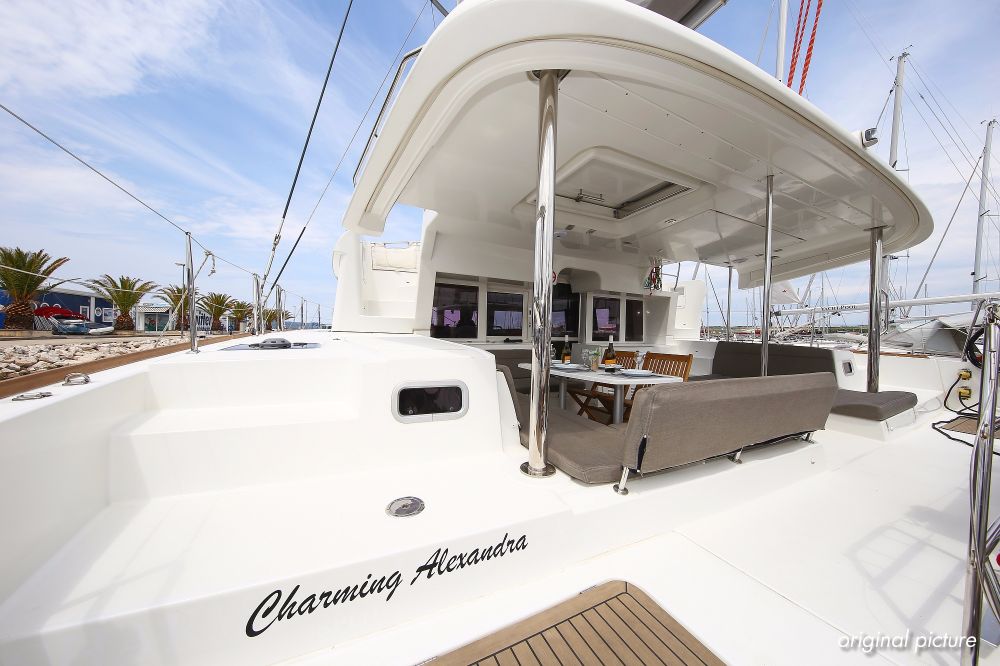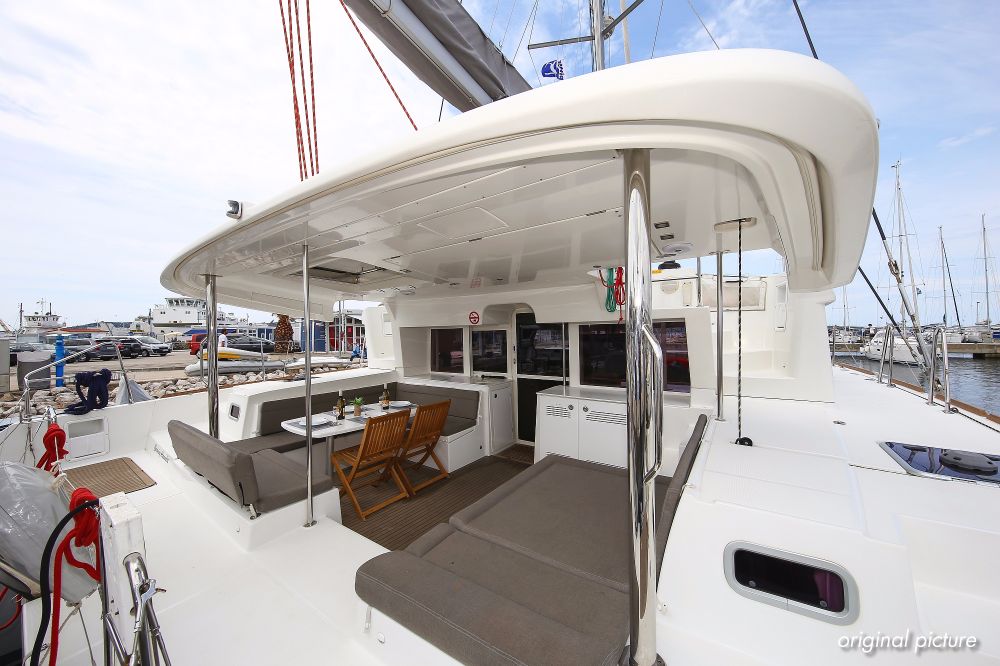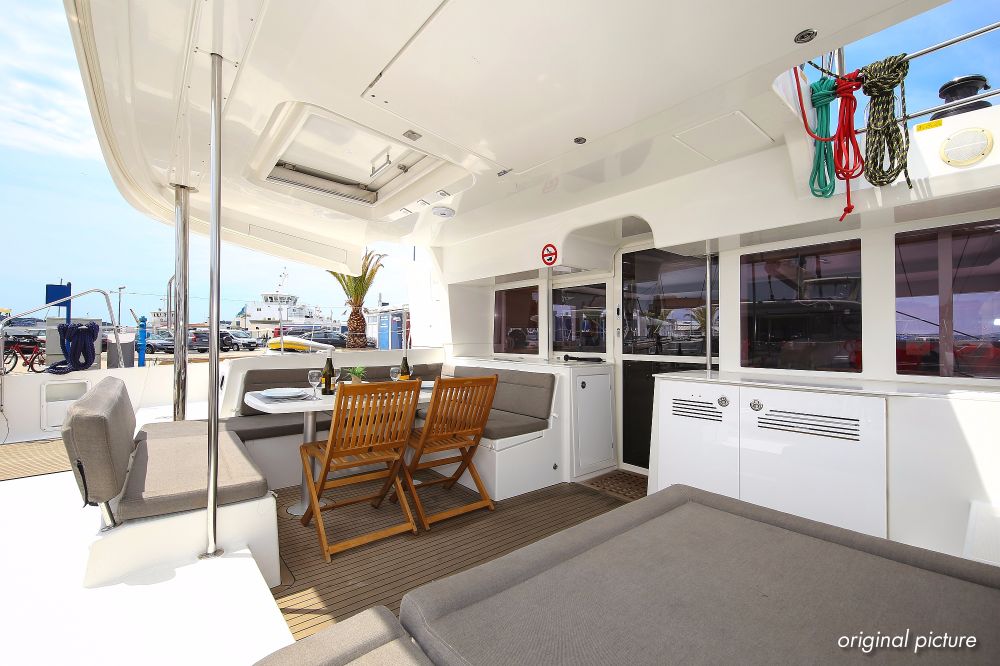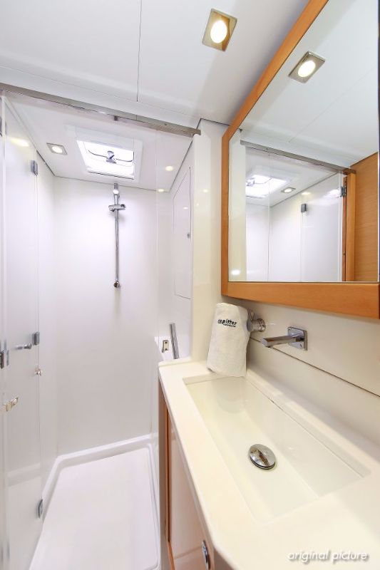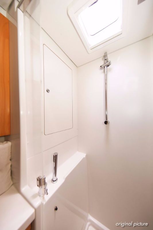 | Outside | 220 V-Landanschluss, Anker mit Kette, Ankerwinsch, Badeplattform, Biminitop, Bootshaken, Cockpitdusche, Cockpitlautsprecher, Cockpitpolster, Cockpittisch, Davits, Dieselkanister , elektr. Ankerwinsch, elektr. Genuawinsch, elektr. Winsch, Fender, Festmacherleinen, Gangway, Kuchenbude, Kugelfender, Kunststoff-Eimer (Pütz), Solaranlage, Sprayhood, Teak im Cockpit, Wantenschneider, Wasserkanister , Wasserschlauch, Windex |