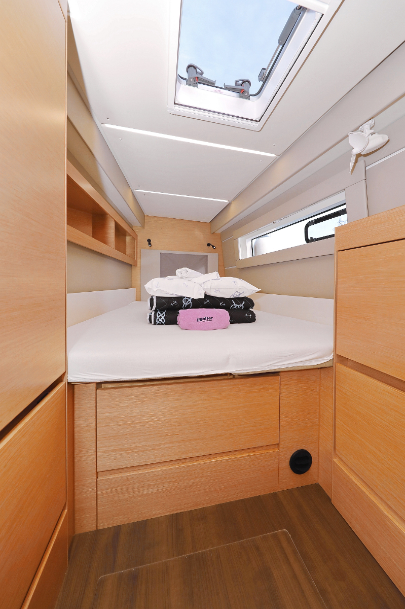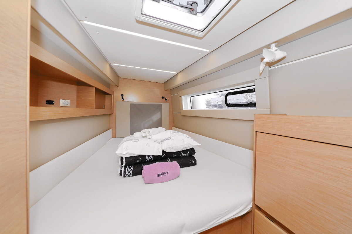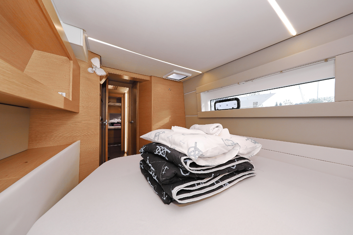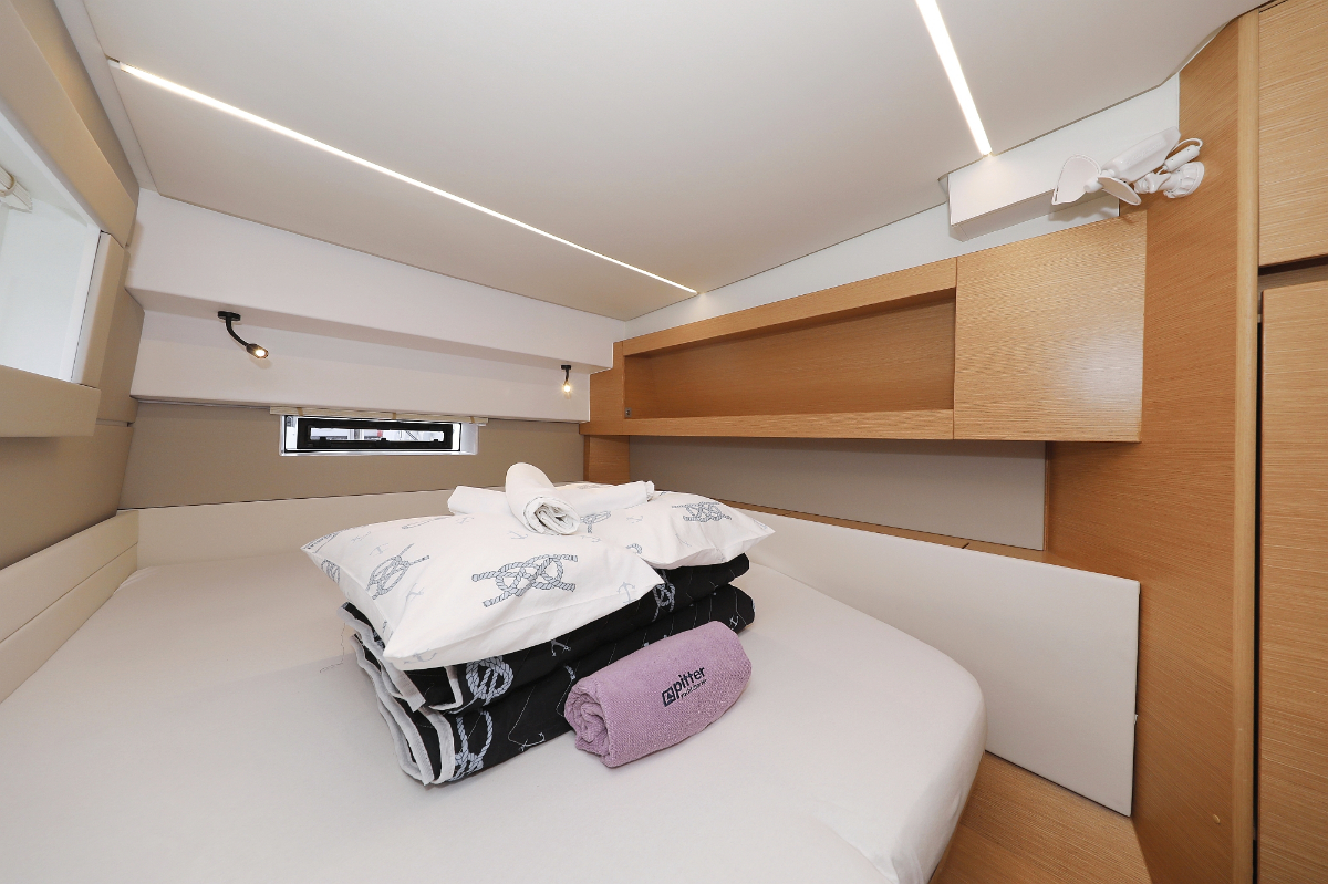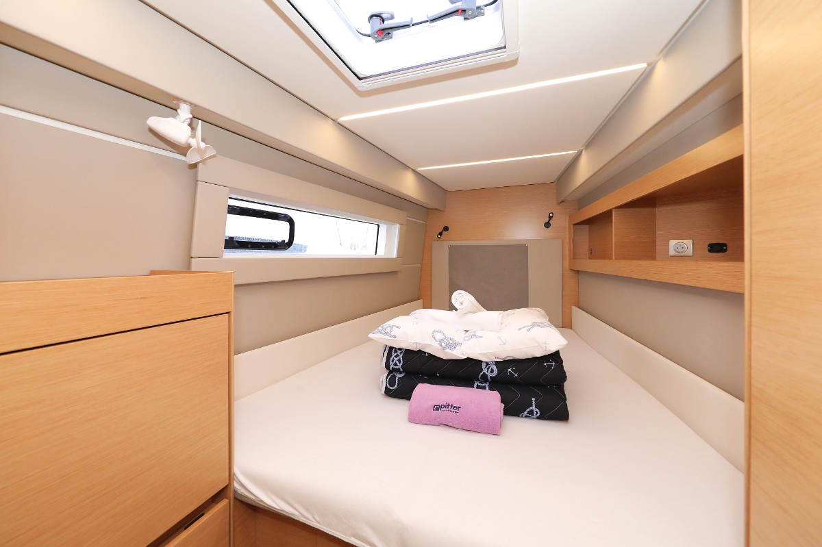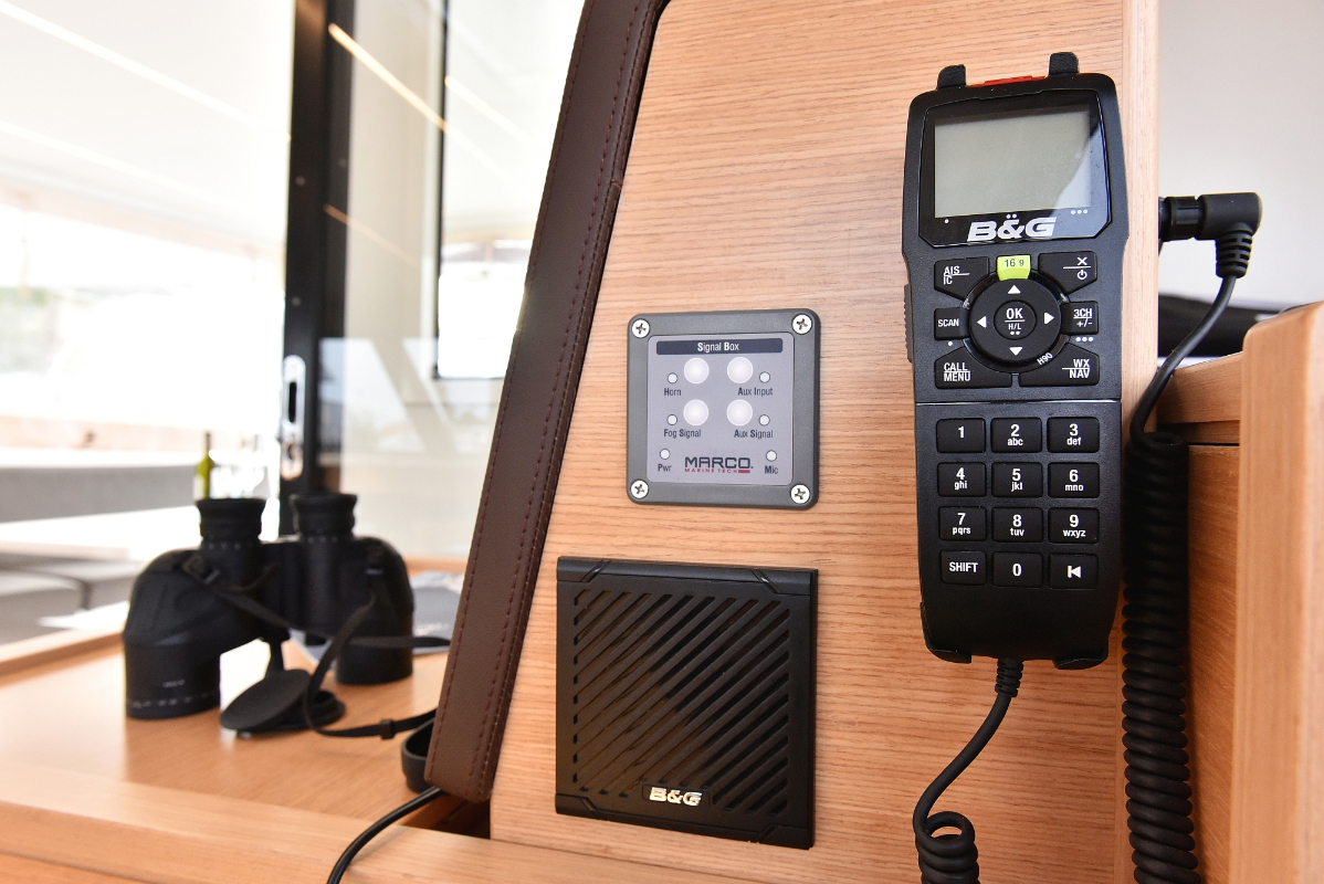 2. Kühlschrank, Borduhr, Dusche, FUSION Sound System, Heizung, Inverter 12V/220V, Kühlschrank, Ladegerät, Luftpumpe für Beiboot, Pantryausstattung, Radio mit USB und Bluetooth, Ventilatoren in Salon und Kabinen, Warmwasser |
