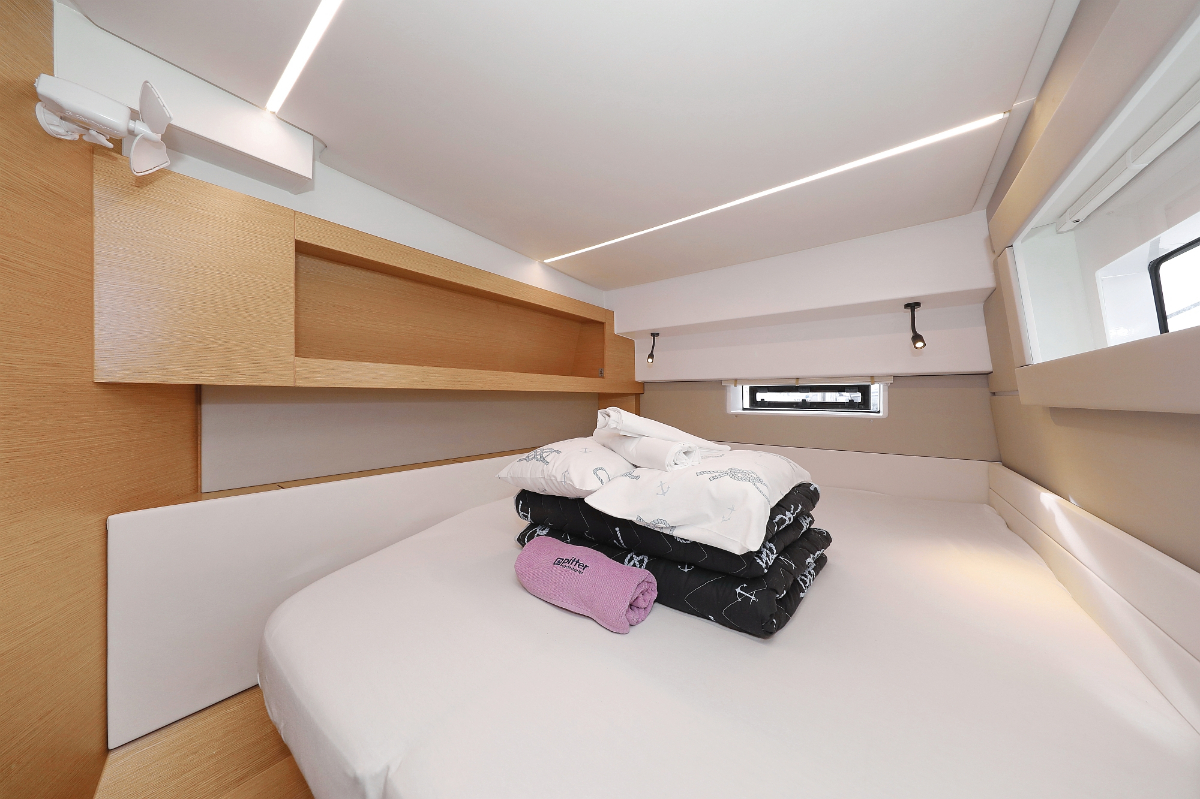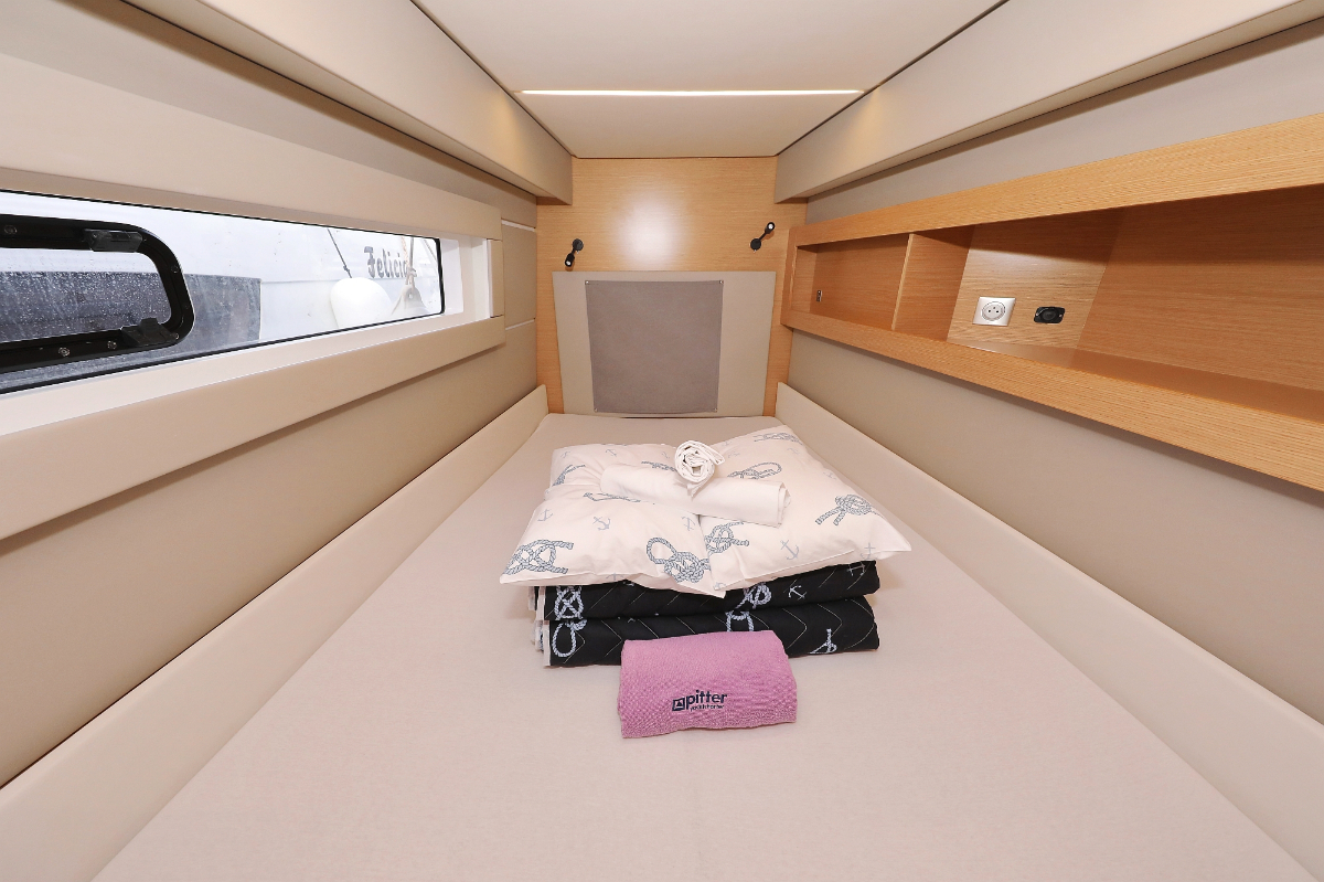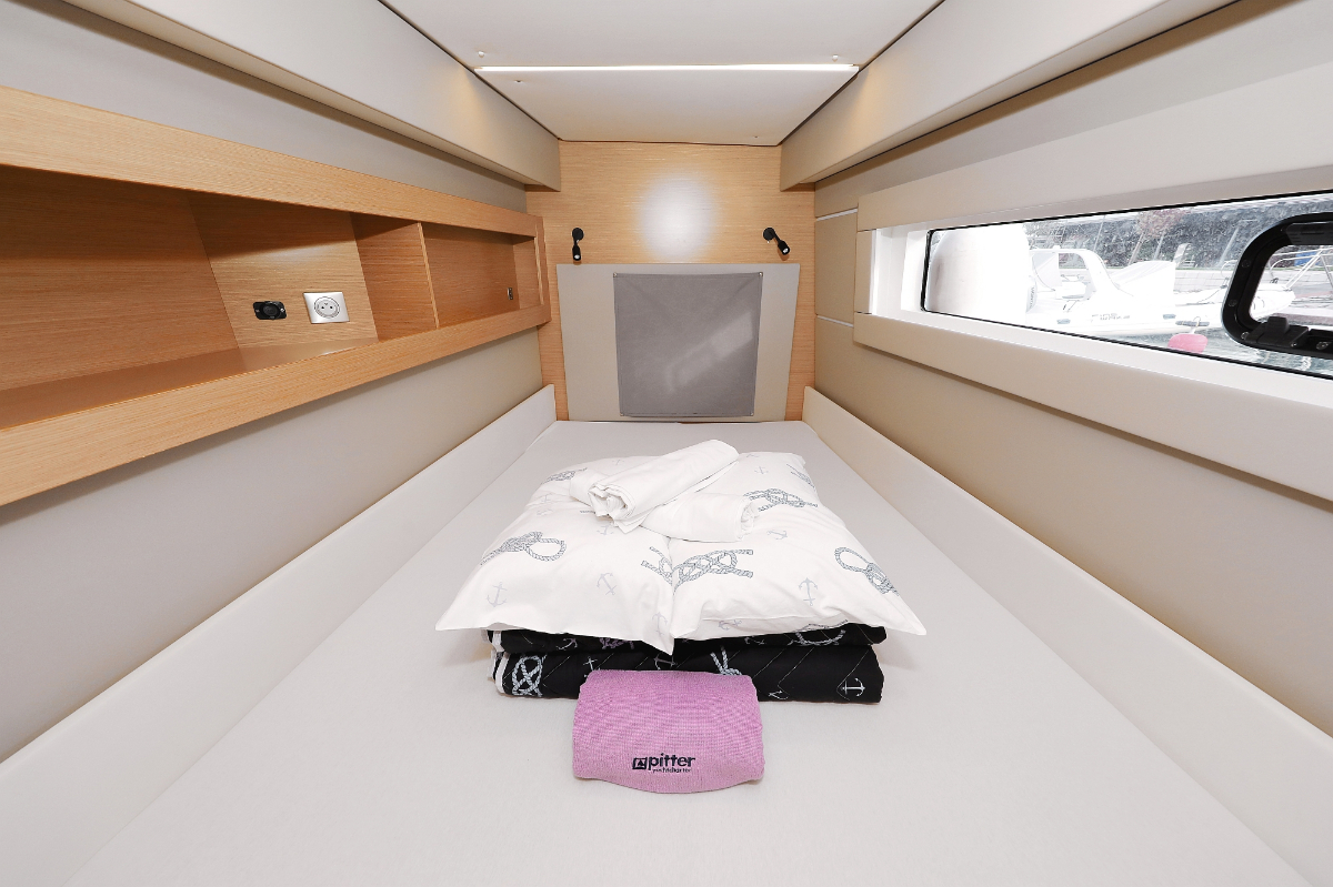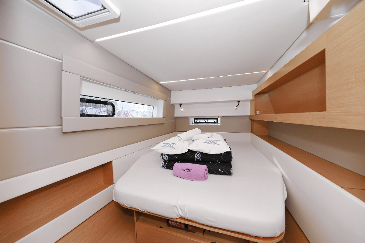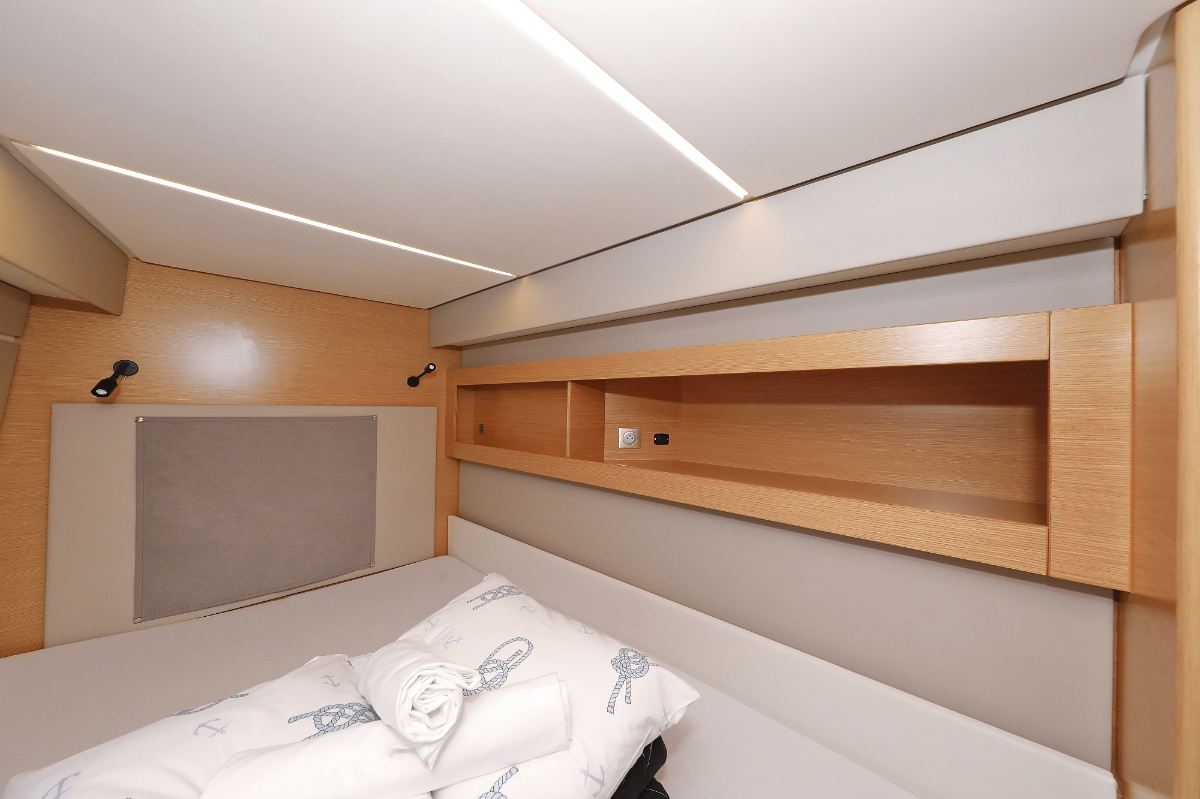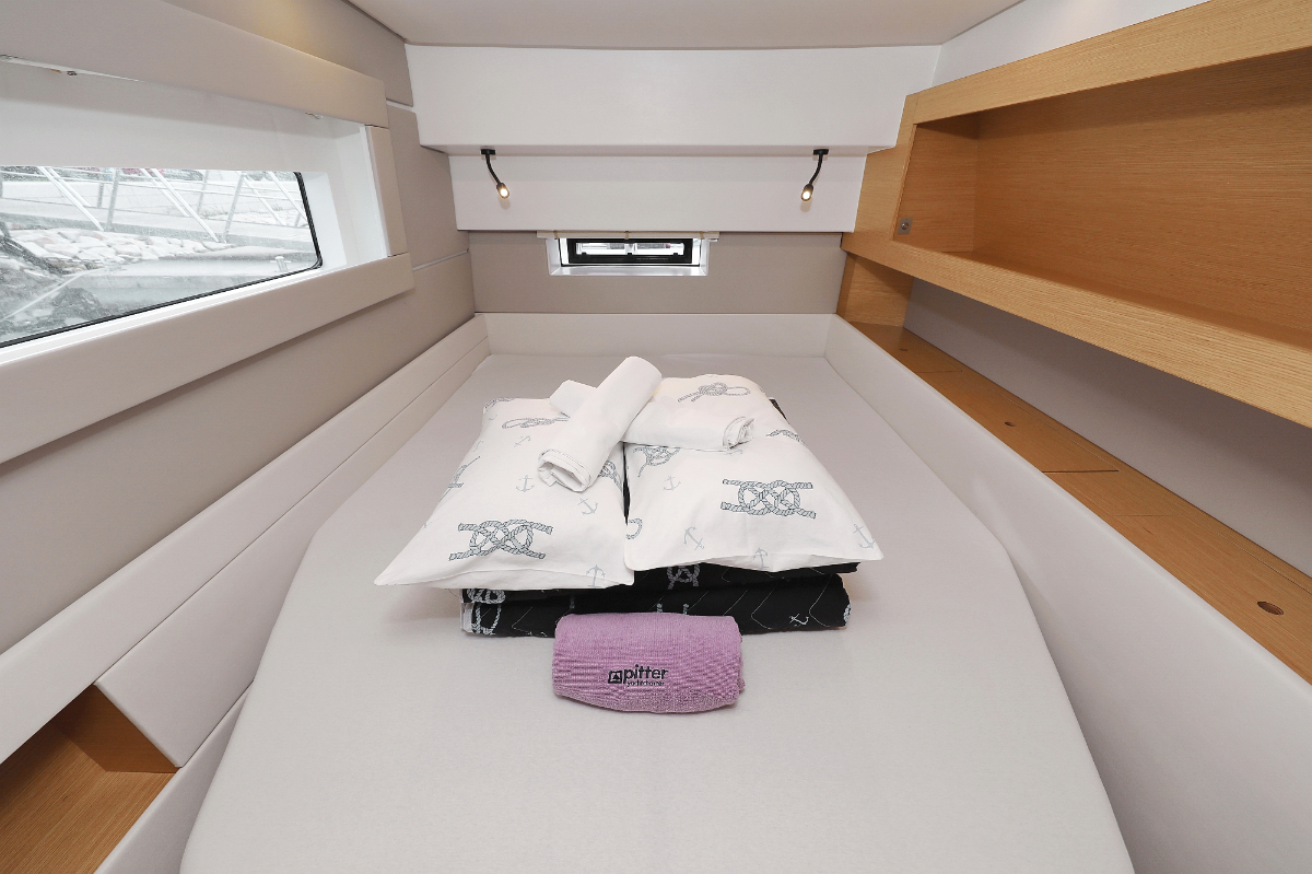 2. Kühlschrank, Borduhr, Dusche, FUSION Sound System, Heizung, Inverter 12V/220V, Kühlschrank, Ladegerät, Luftpumpe für Beiboot, Pantryausstattung, Radio mit USB und Bluetooth, Ventilatoren in Salon und Kabinen, Warmwasser |