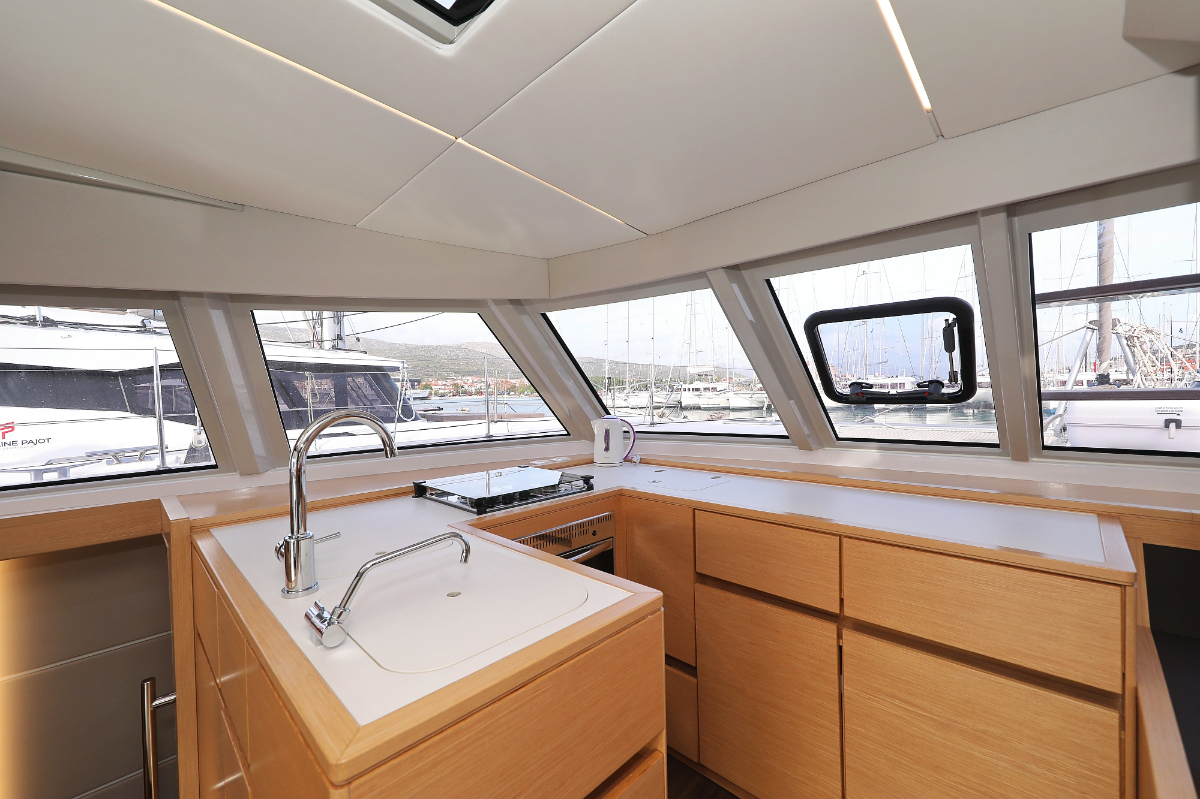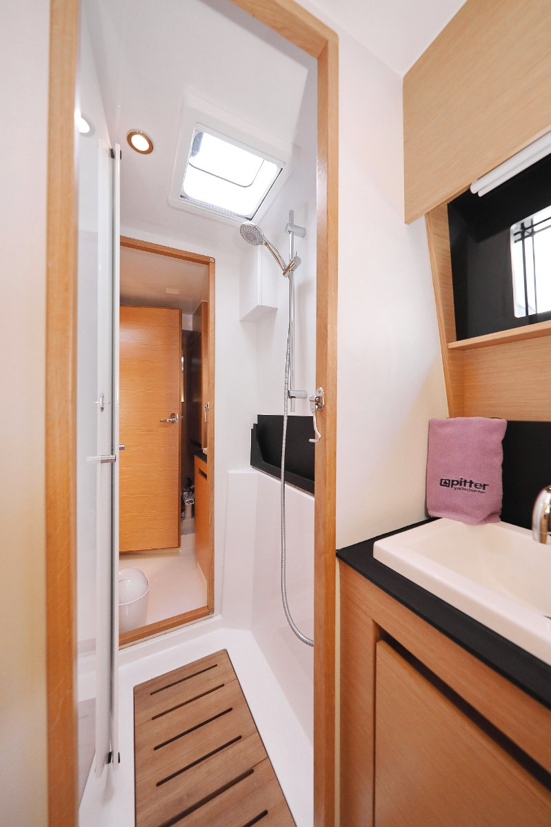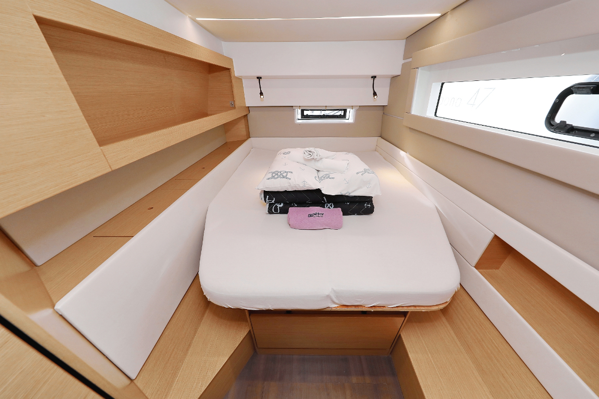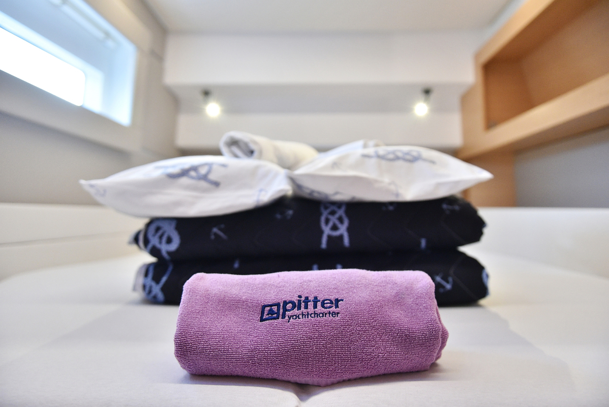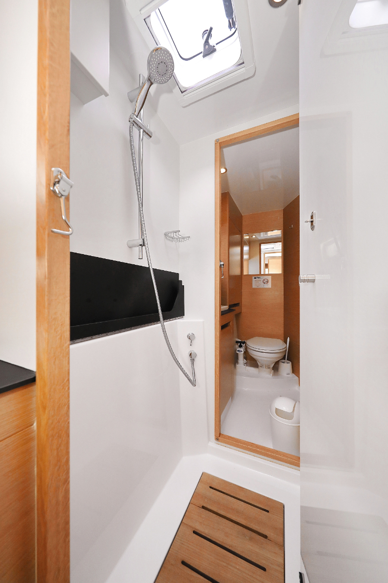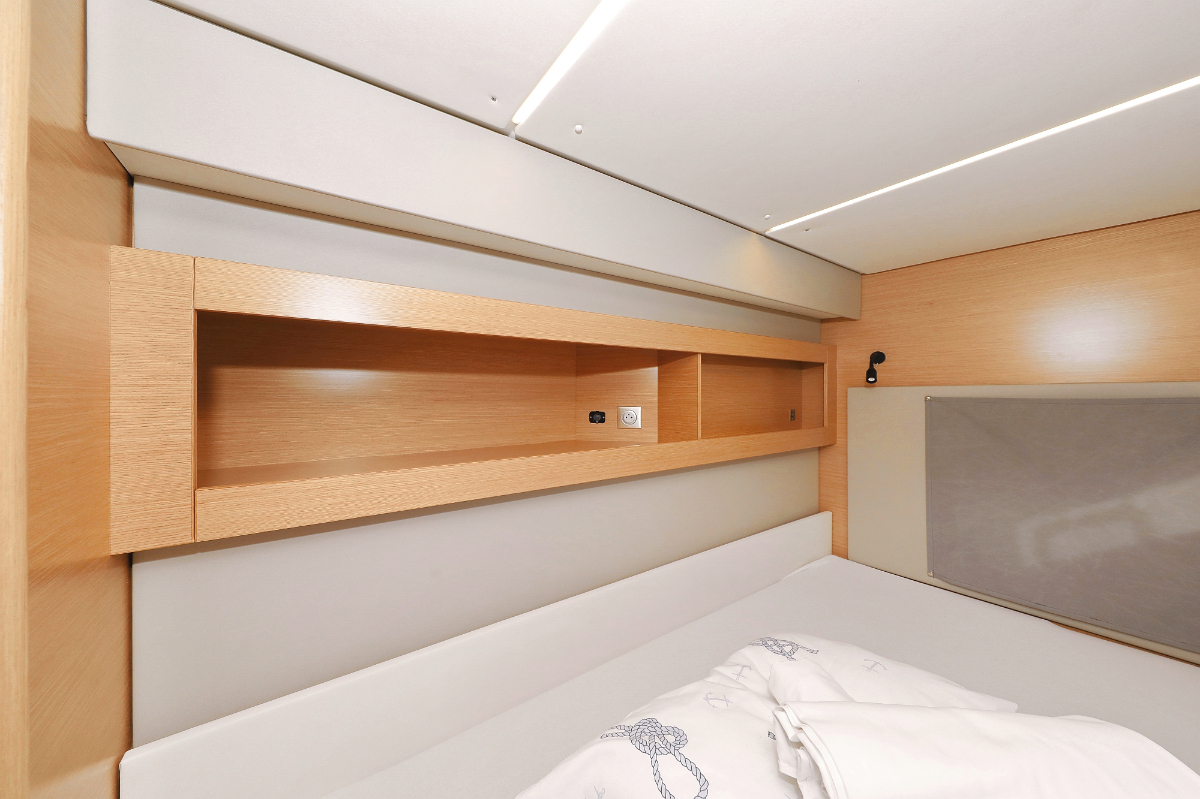 2. Kühlschrank, Borduhr, Dusche, FUSION Sound System, Heizung, Inverter 12V/220V, Kühlschrank, Ladegerät, Luftpumpe für Beiboot, Pantryausstattung, Radio mit USB und Bluetooth, Ventilatoren in Salon und Kabinen, Warmwasser |