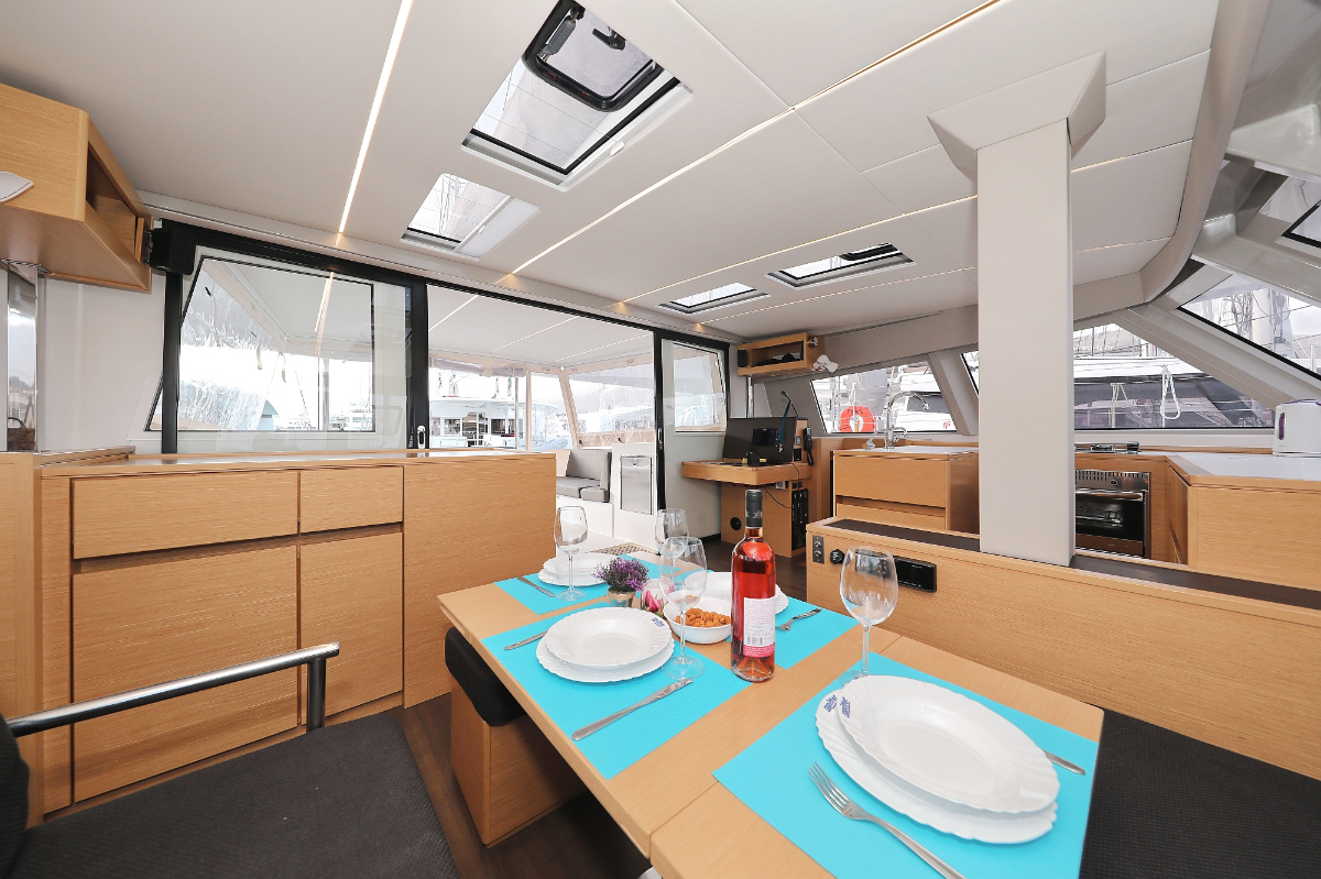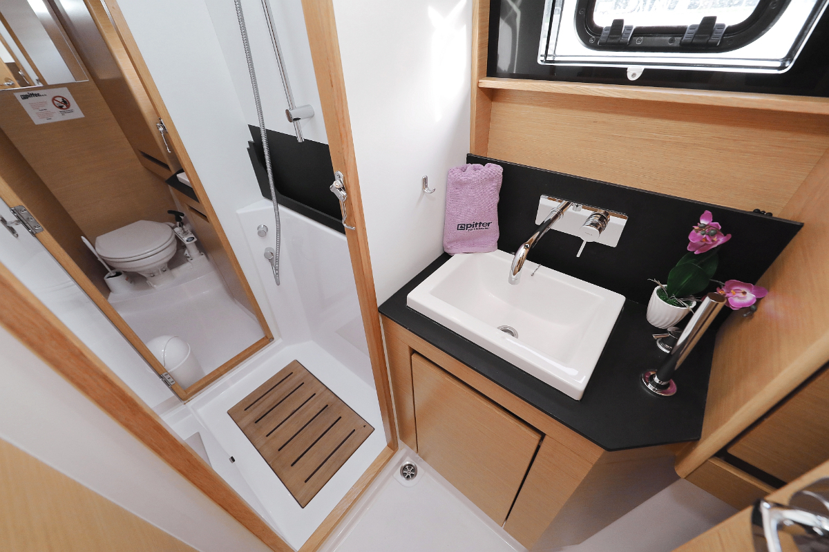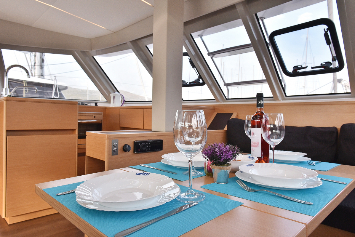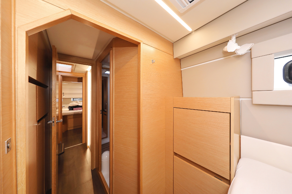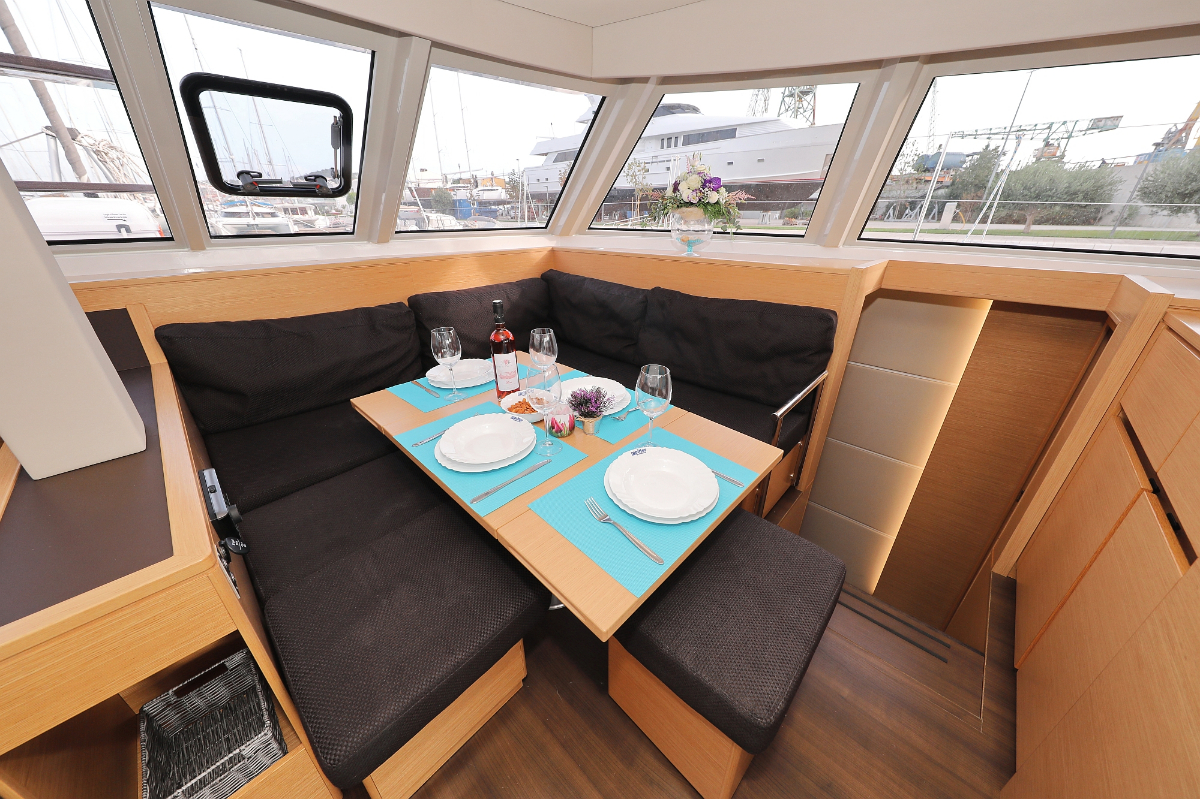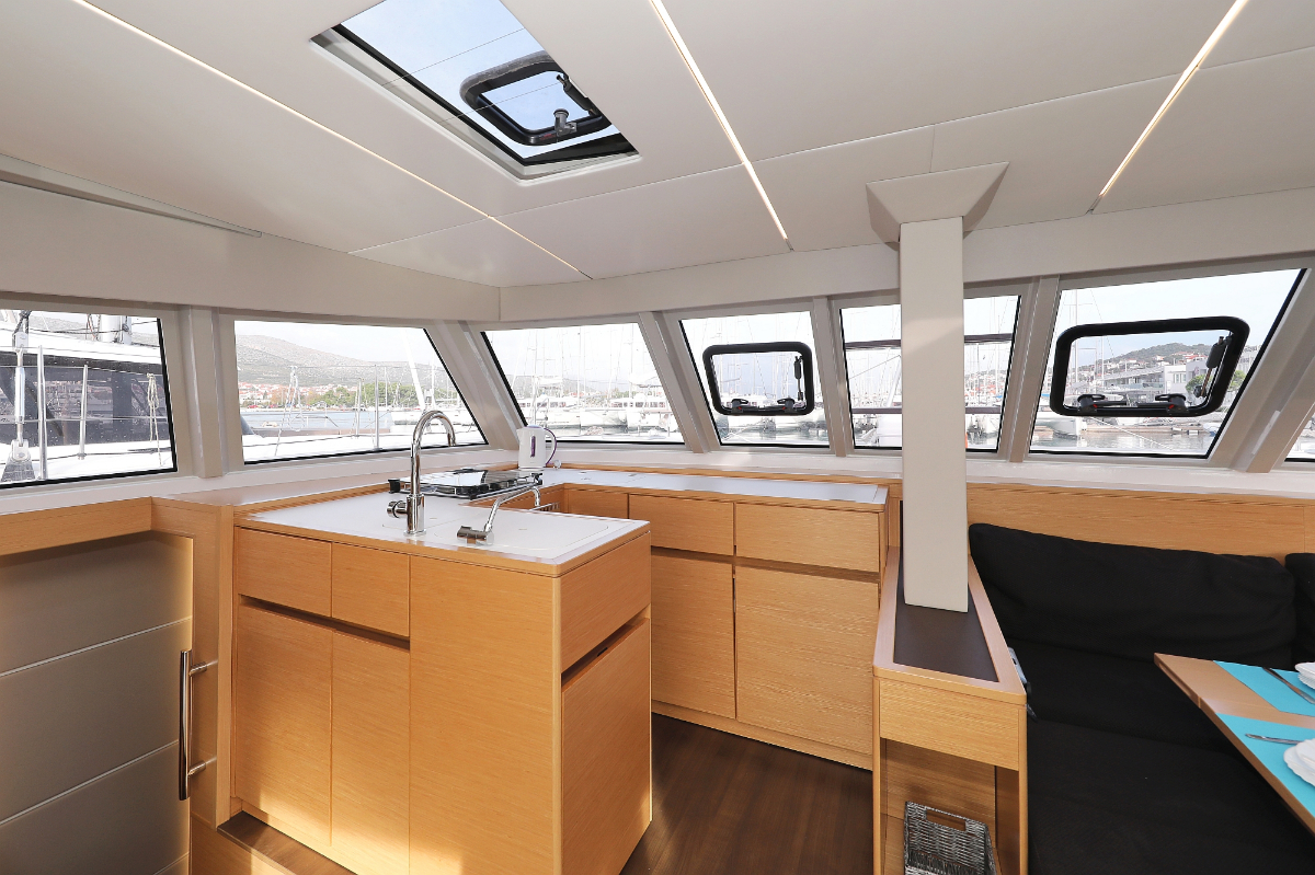 2. Kühlschrank, Borduhr, Dusche, FUSION Sound System, Heizung, Inverter 12V/220V, Kühlschrank, Ladegerät, Luftpumpe für Beiboot, Pantryausstattung, Radio mit USB und Bluetooth, Ventilatoren in Salon und Kabinen, Warmwasser |